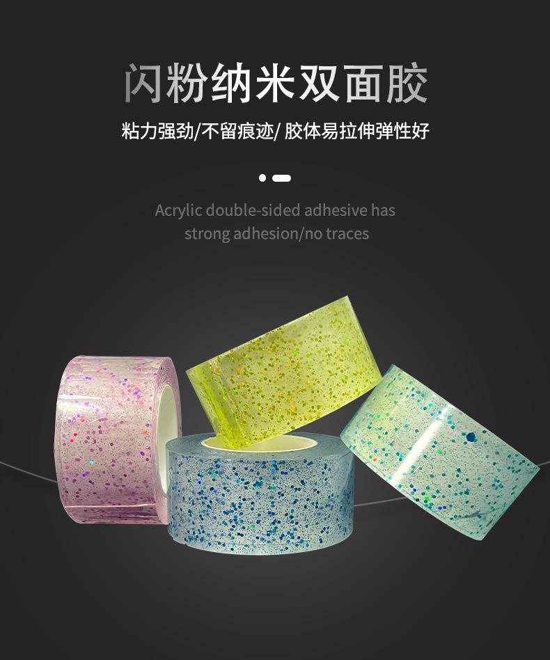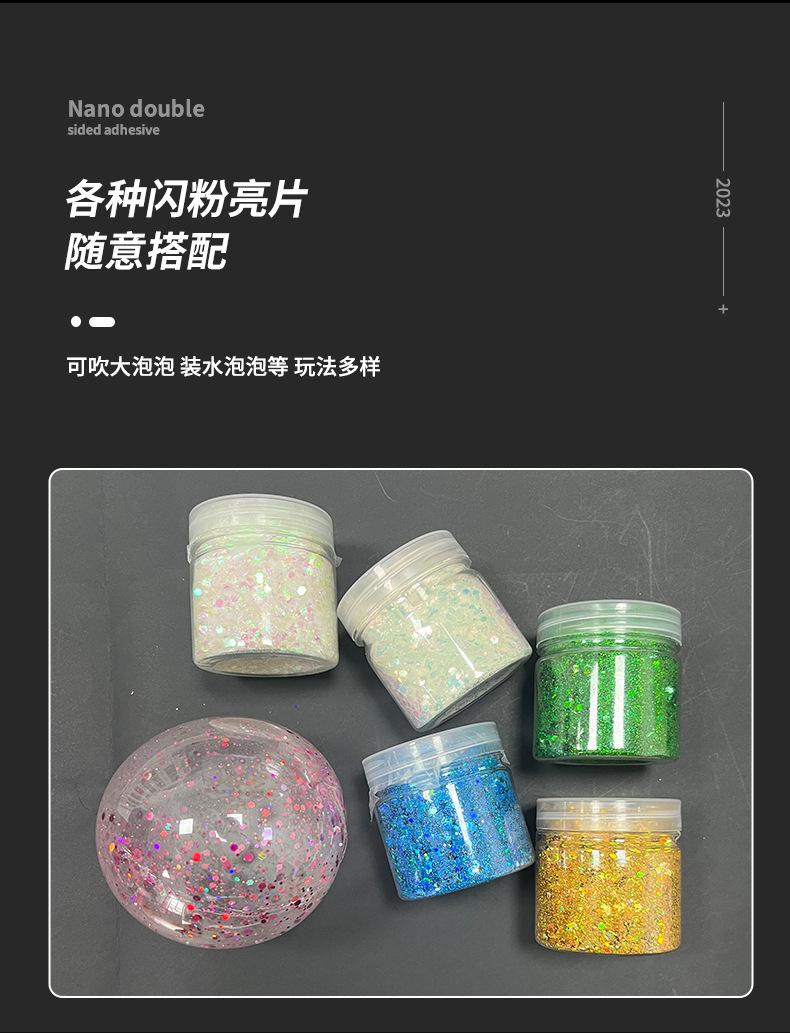 Pegamento Nano con Brillo de Alta Viscosidad Juguete Squishy DIY Soplado de Burbujas Alivio del Estrés Pegamento Mágico Adhesivo Fuerte Lentejuela Cinta Adhesiva de Doble Cara