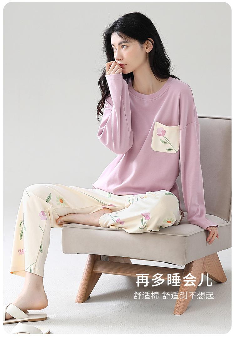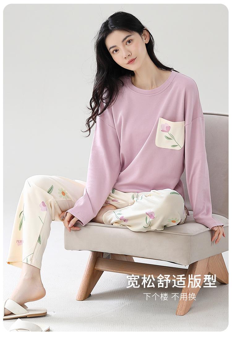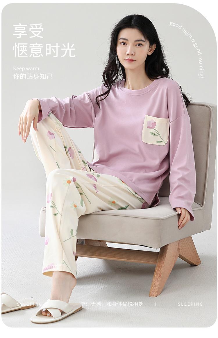Pijamas de mujer de primavera y otoño, jersey de algodón de manga larga, holgado, de talla grande, nuevo traje de algodón para mujer para otoño e invierno, ropa de casa