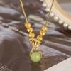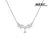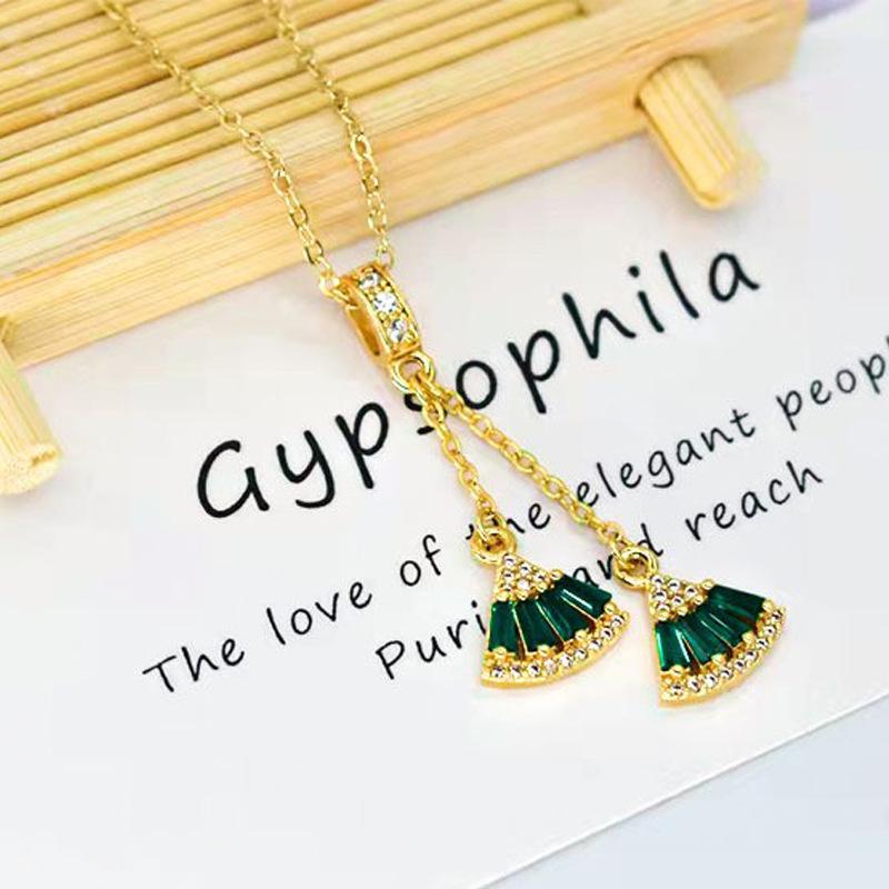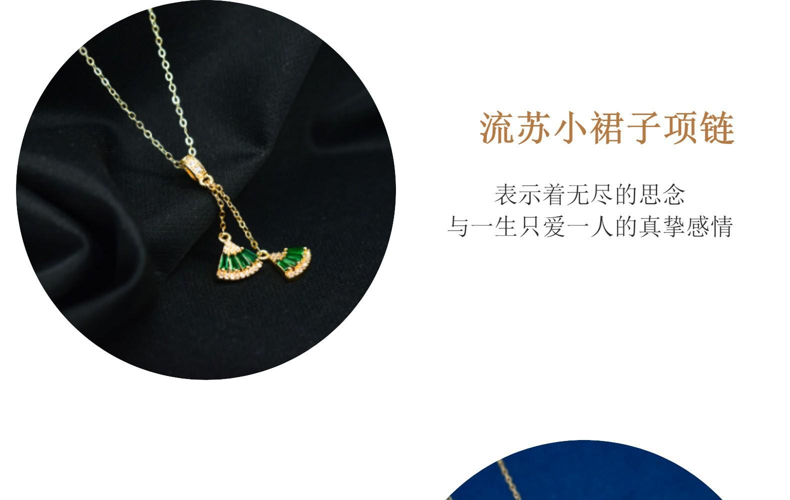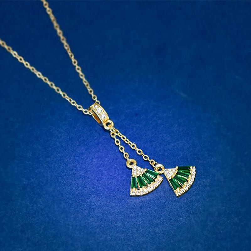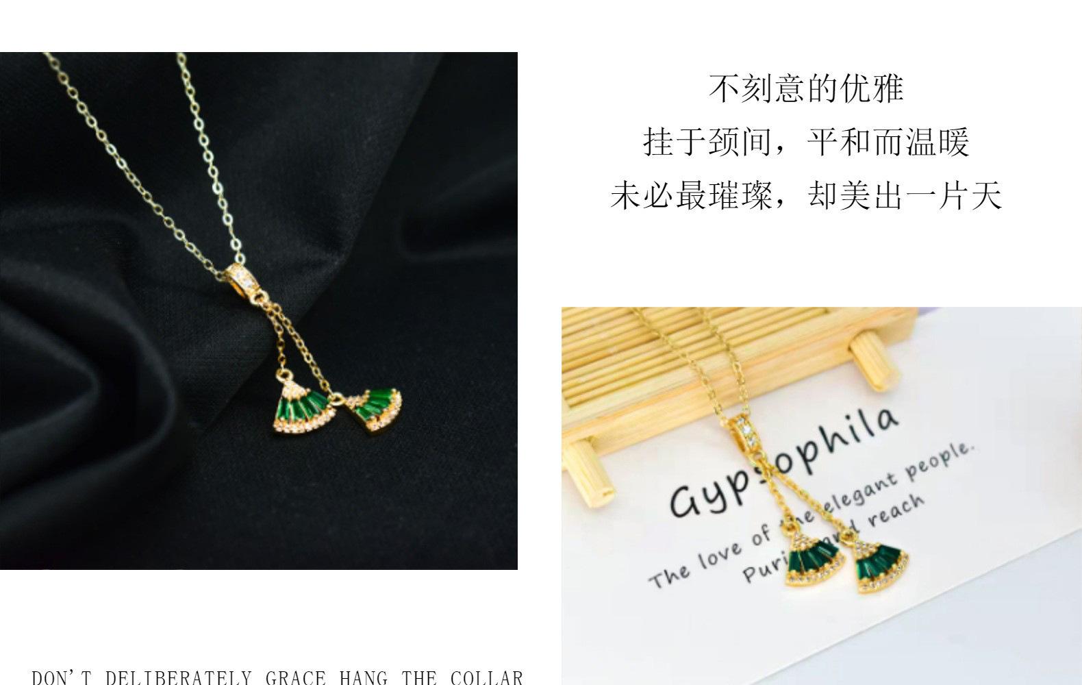 Collar de falda pequeña con borlas verdes para mujer, colgante de abanico de alta gama con microincrustaciones, cadena de clavícula de acero de titanio sin color, primera joyería