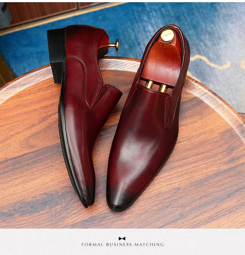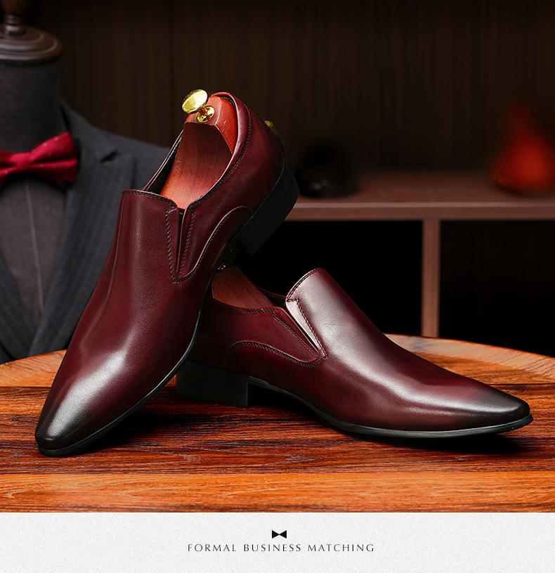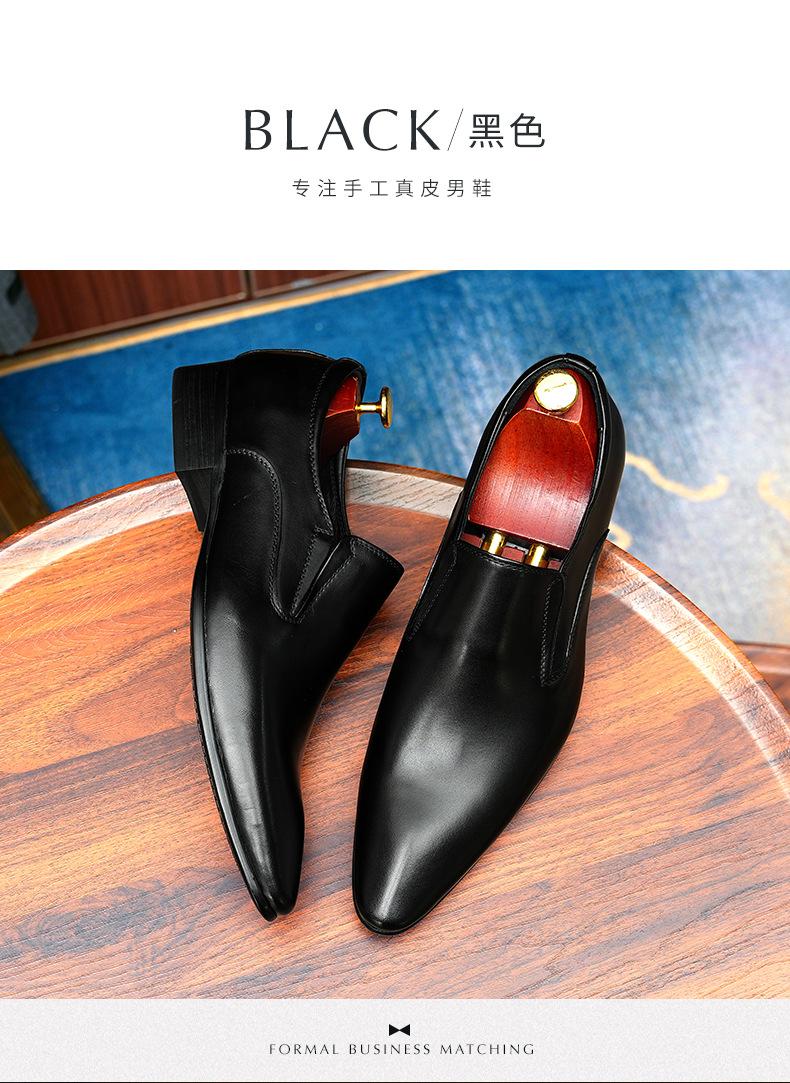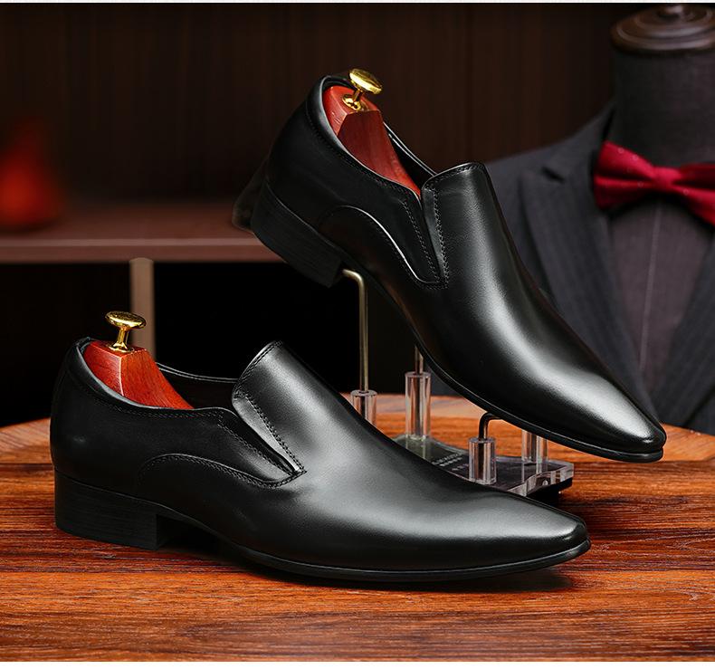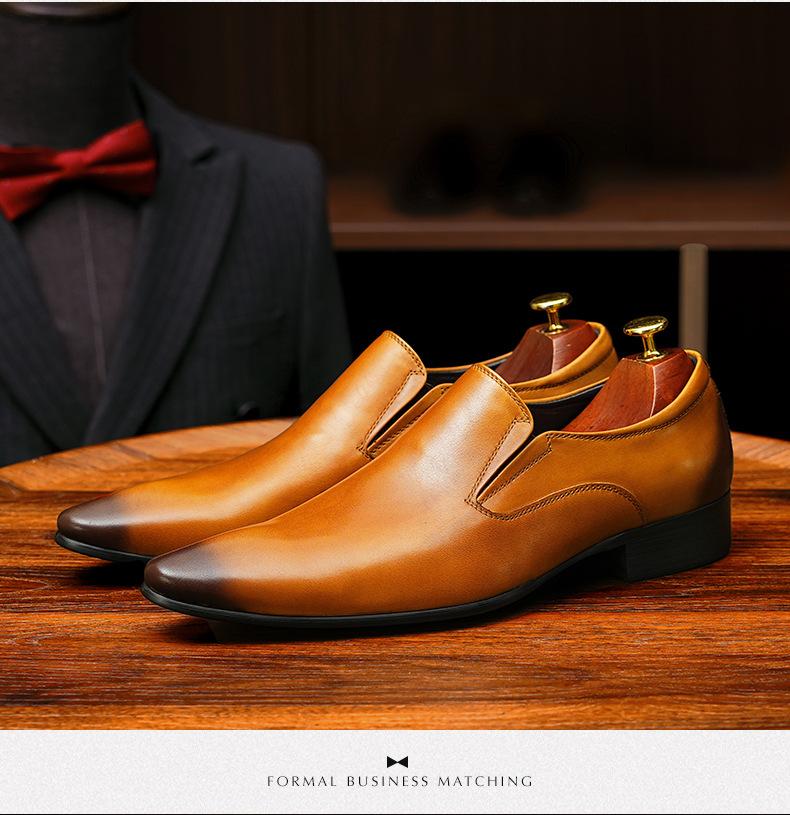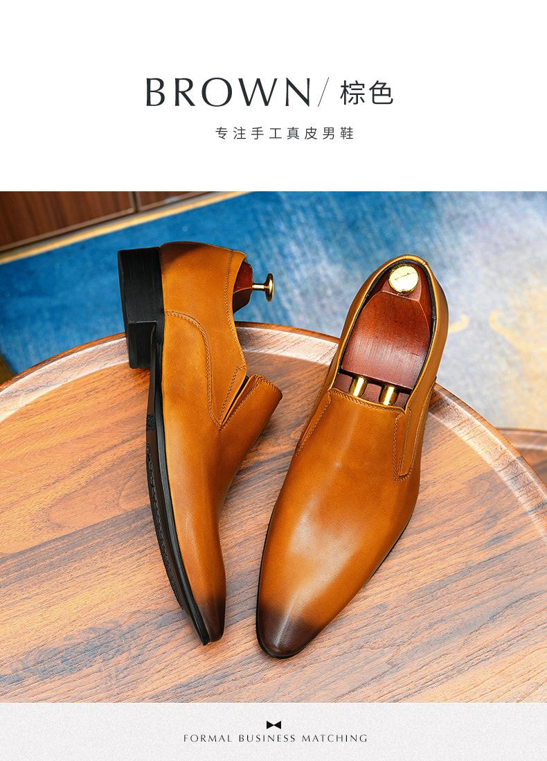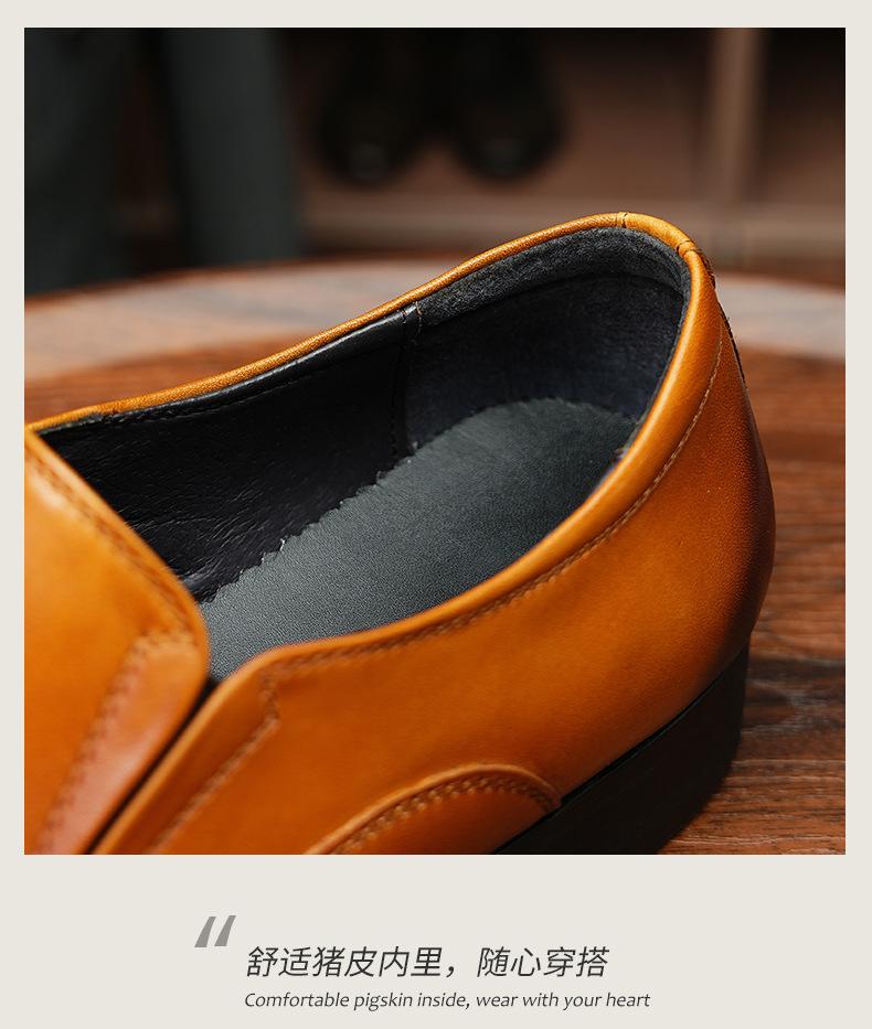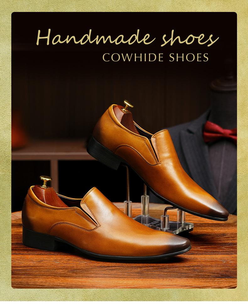 Zapatos de cuero slip-on de piel de vaca de primera capa para hombre, de cuero, casual de negocios, puntiagudos, slip-on, estilo británico, formales, para ir al trabajo