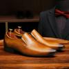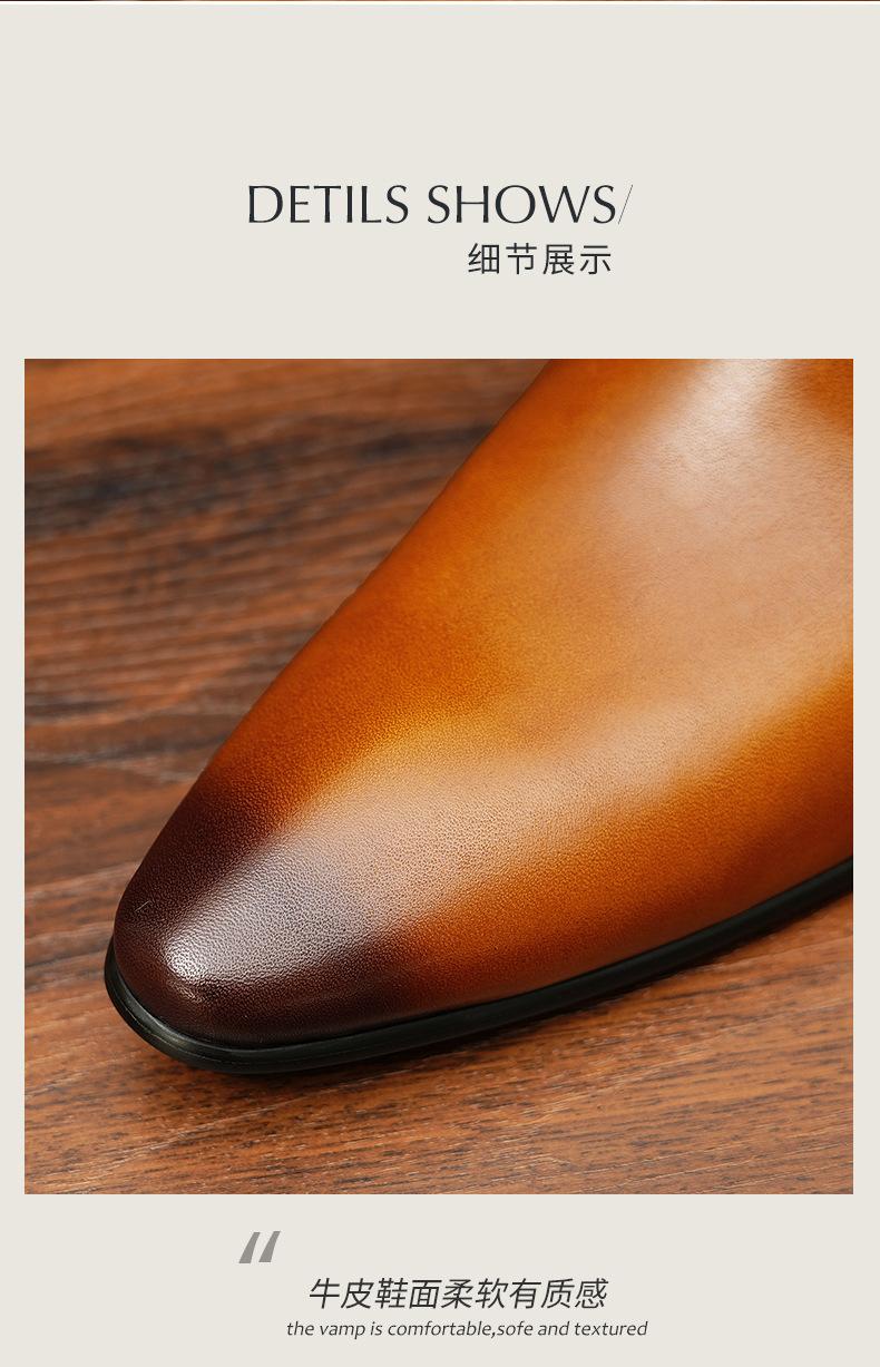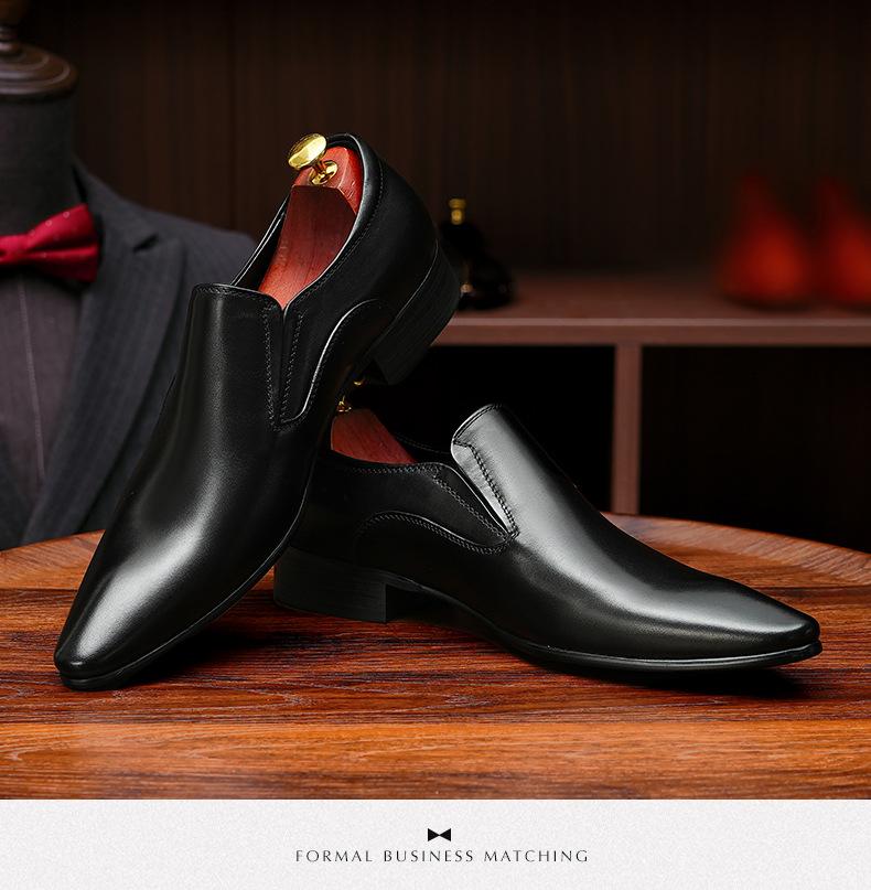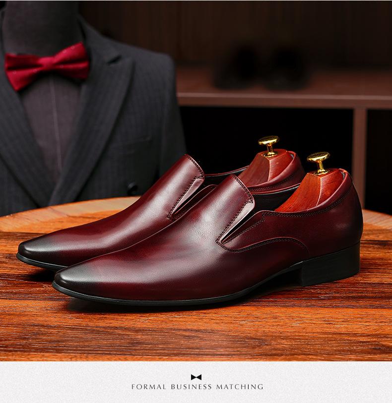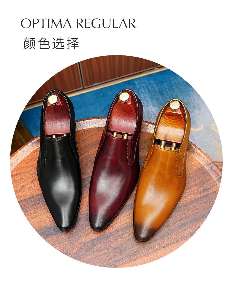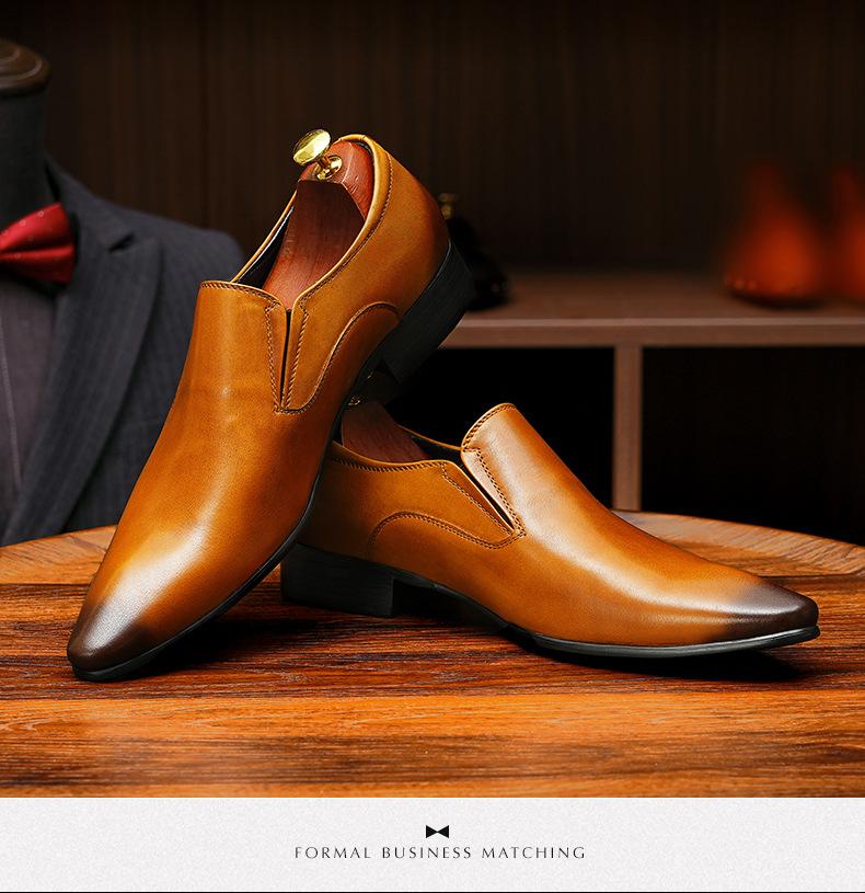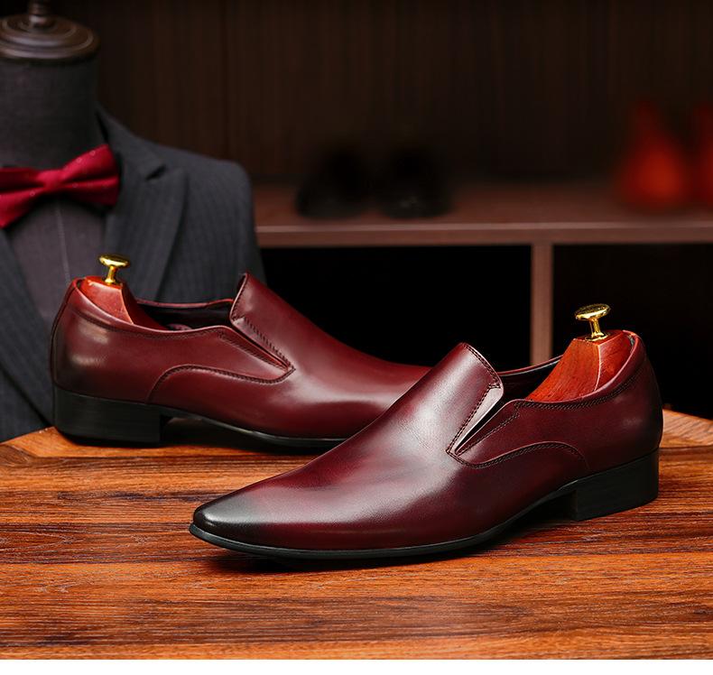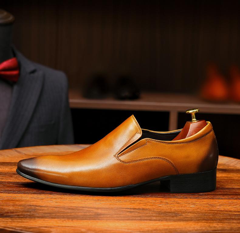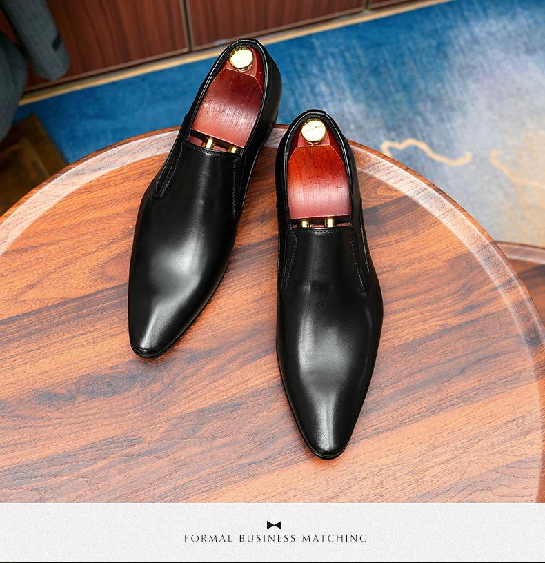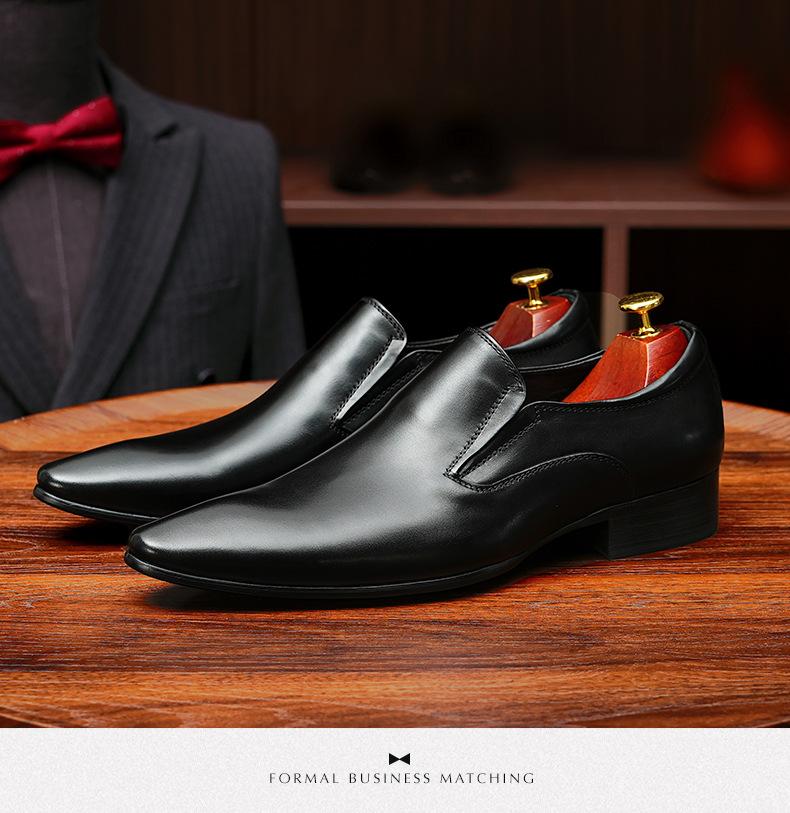 Zapatos de cuero slip-on de piel de vaca de primera capa para hombre, de cuero, casual de negocios, puntiagudos, slip-on, estilo británico, formales, para ir al trabajo