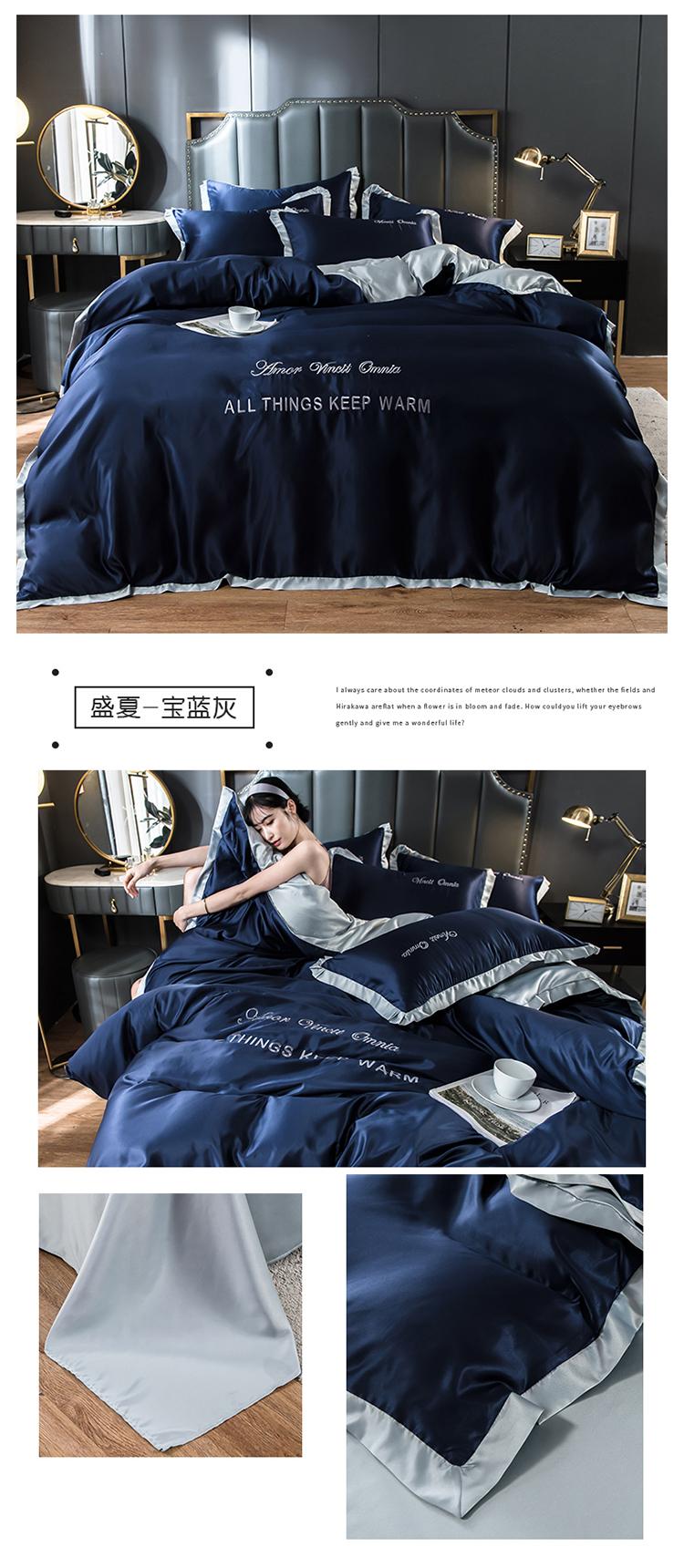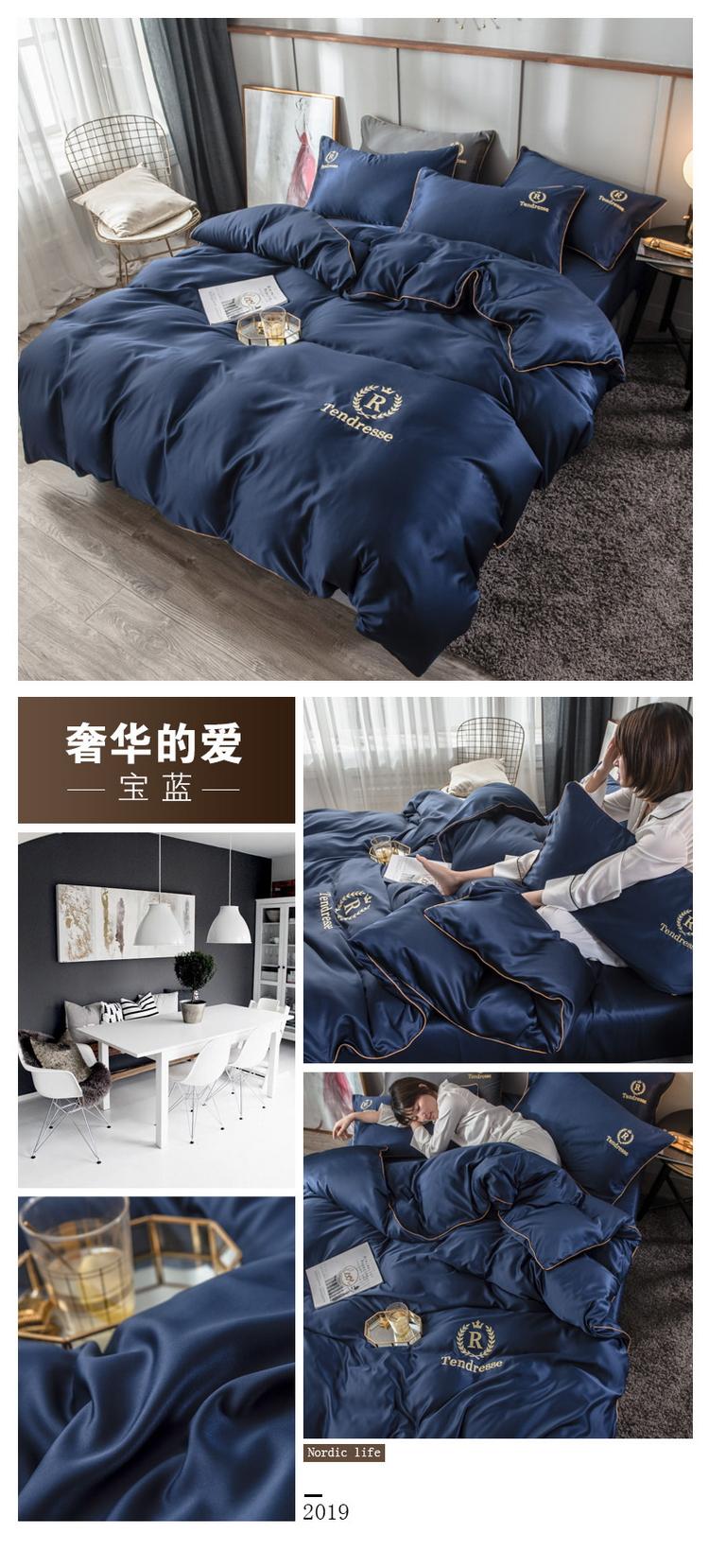 Compra Juego de cuatro piezas de seda lavable Seda de hielo Estilo europeo Bordado Desnudo Funda nórdica para dormir Sábana Ropa de cama Una pieza Venta al por mayor Estilo para todas las estaciones al por mayor en Joom.pro