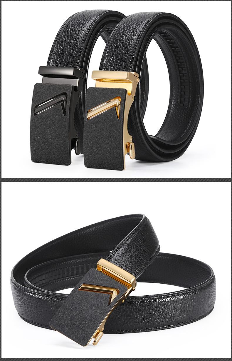 Cinturón de hombre de dos capas de piel de vaca con hebilla automática, cinturón de negocios para el ocio, cinturón con letras Joker, fabricantes al por mayor para hombres