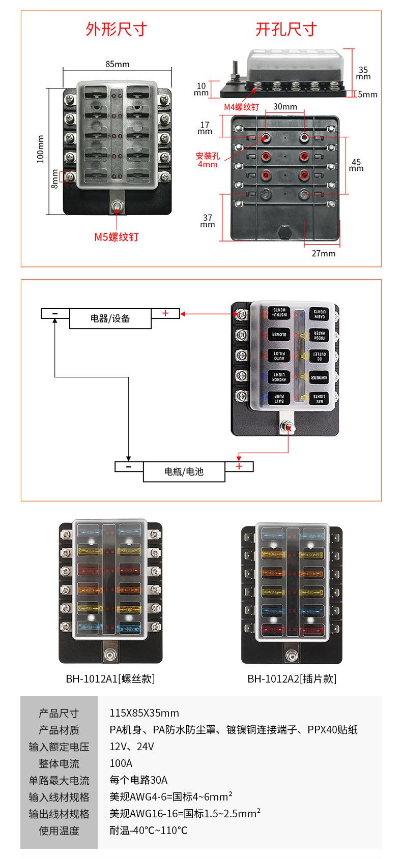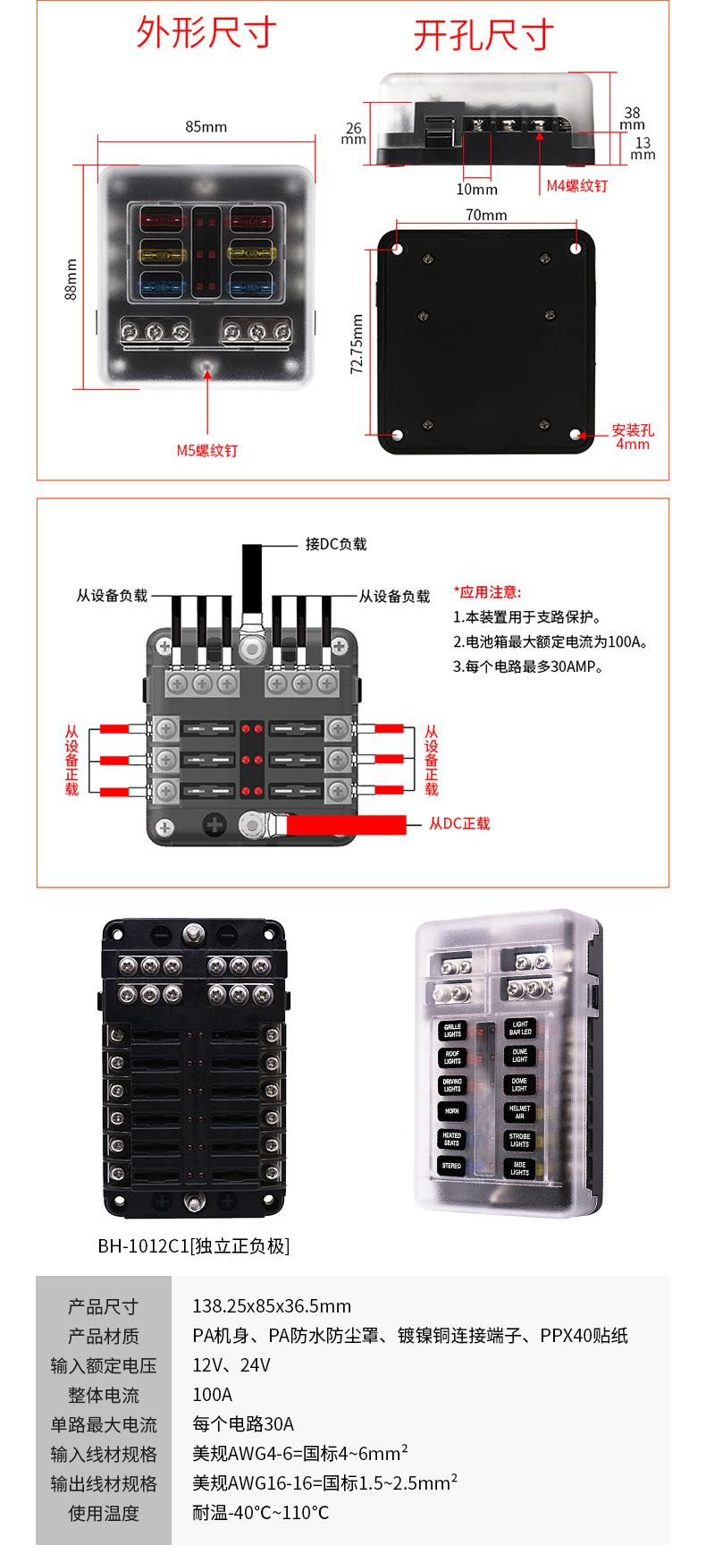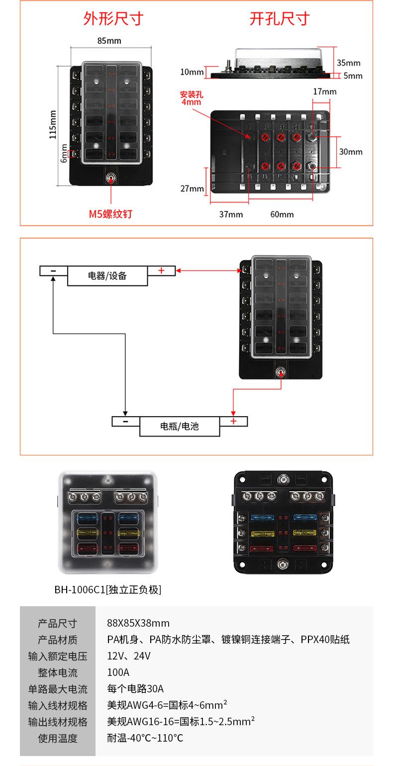 Independent positive and negative 6-way fuse box, Independent positive and negative 12-way fuse box, [Screw co...
