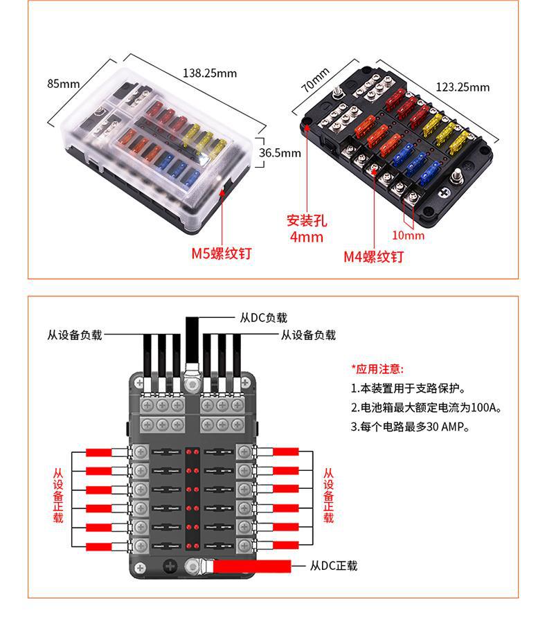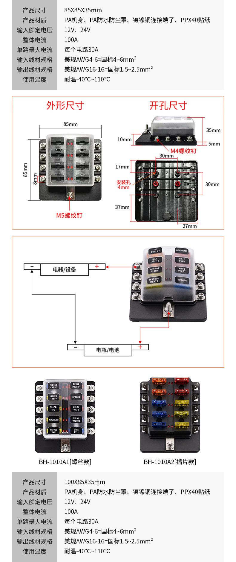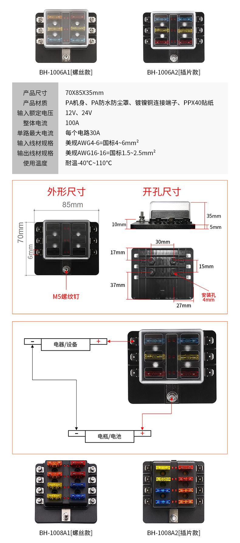 Independent positive and negative 6-way fuse box, Independent positive and negative 12-way fuse box, [Screw co...