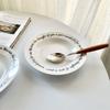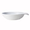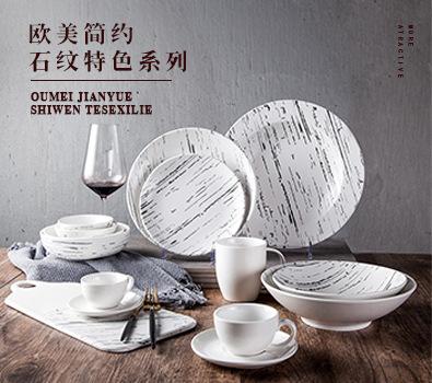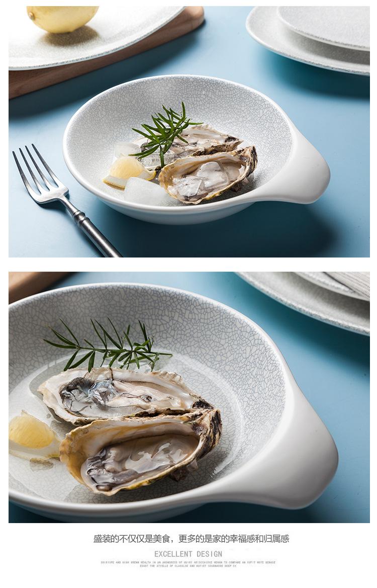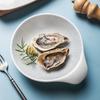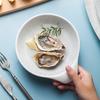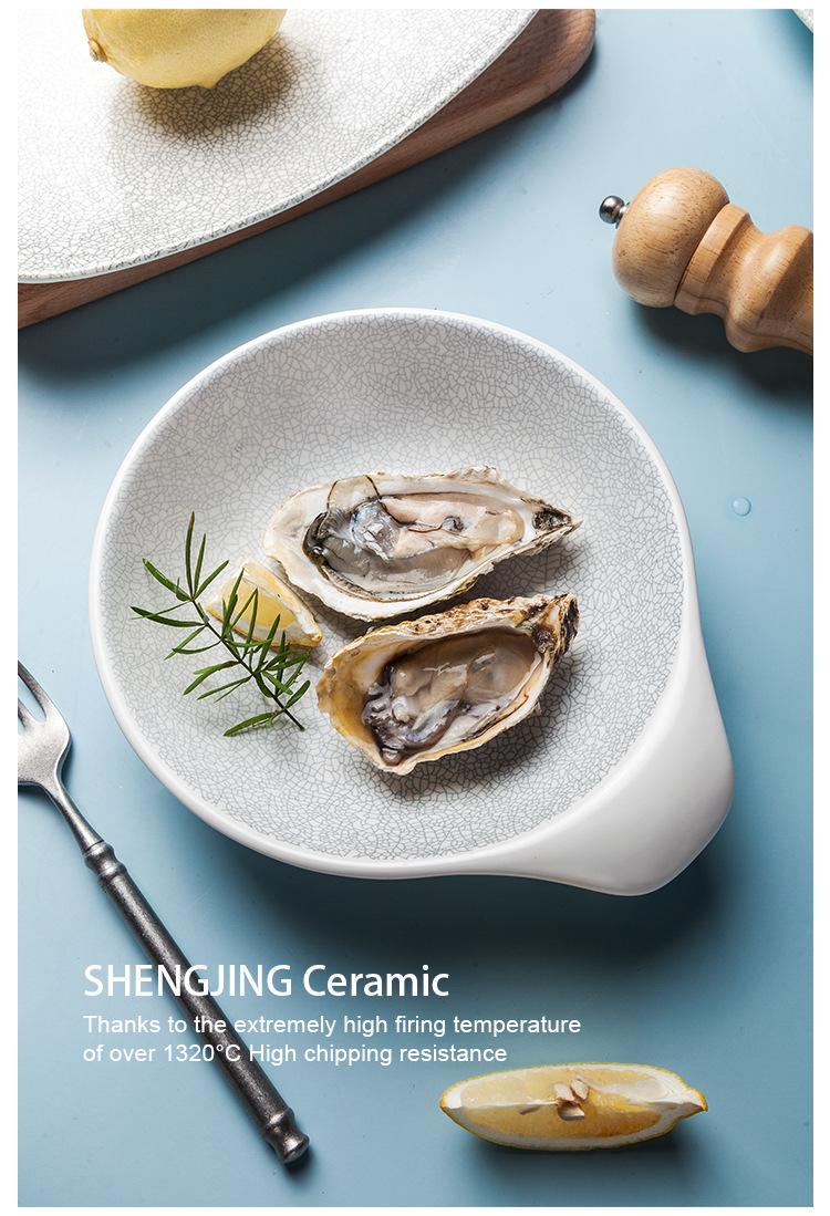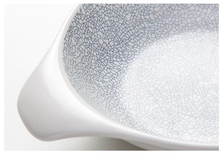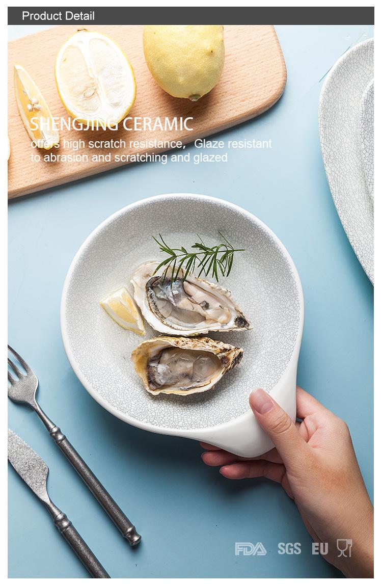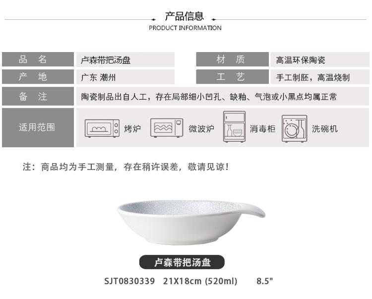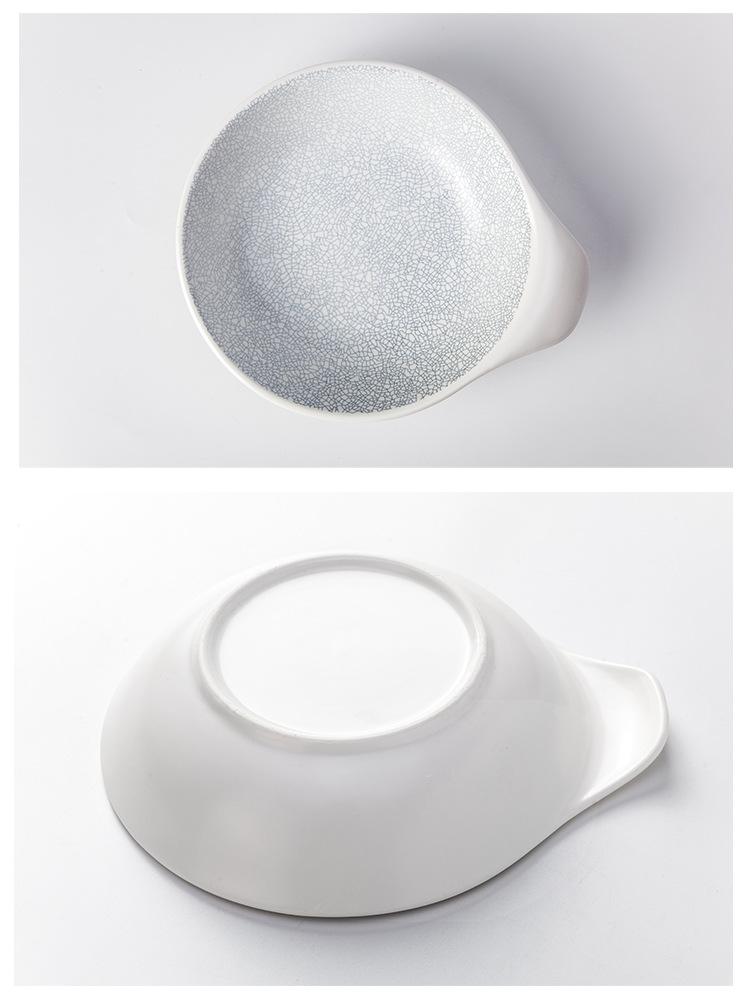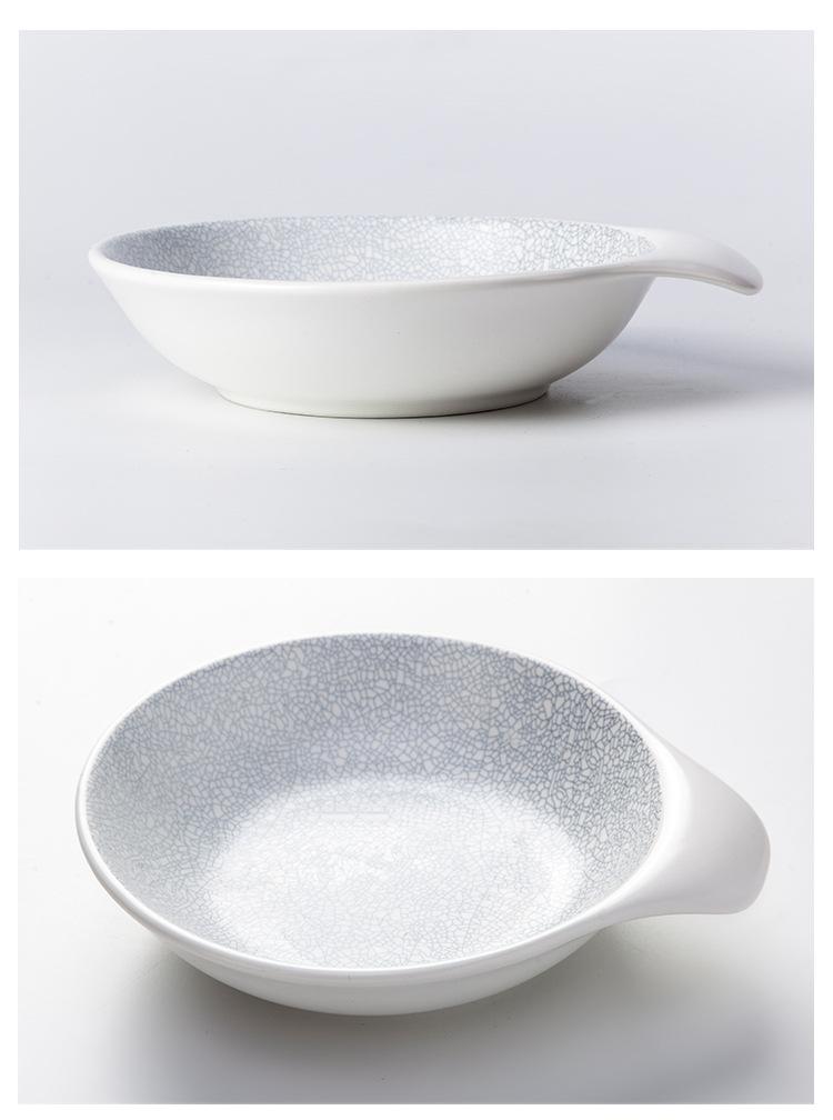 Plato de sopa de cerámica con asa, estilo nórdico, con rayas blancas mate y una sola oreja, para restaurante de hotel o restaurante.