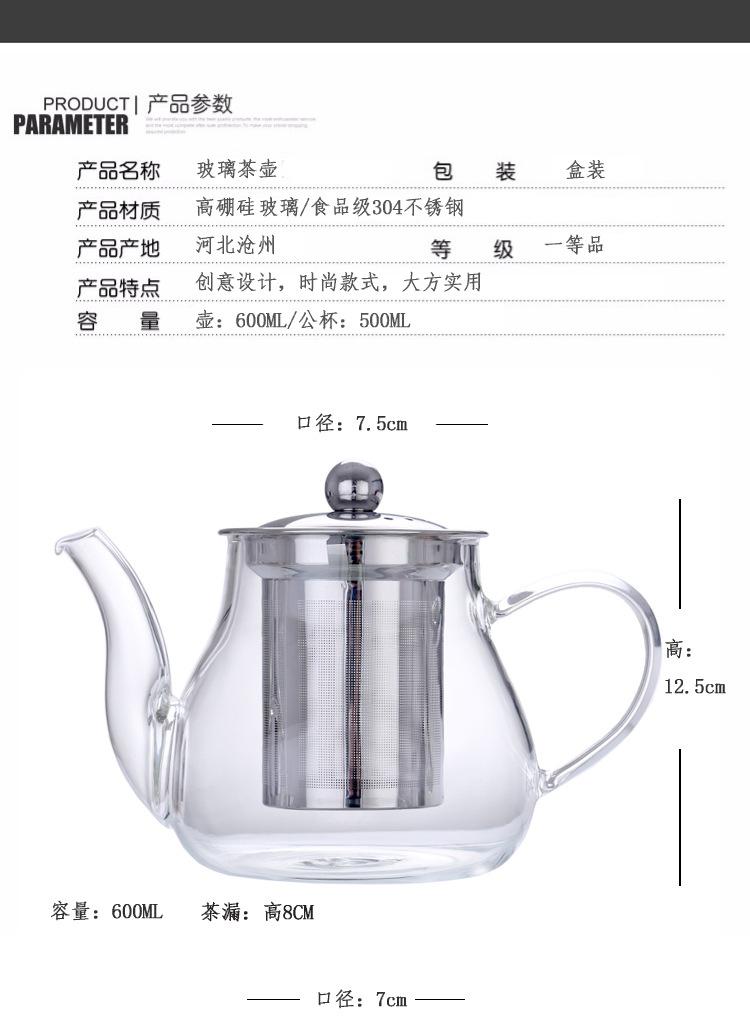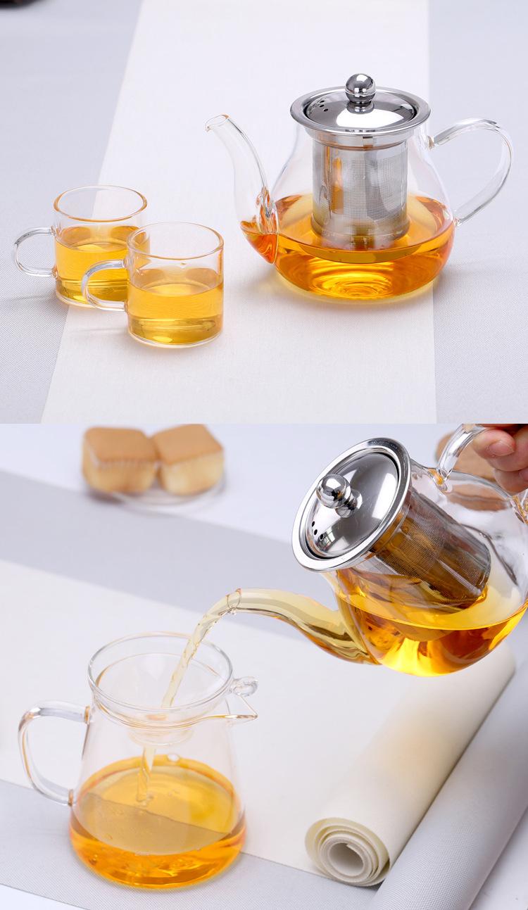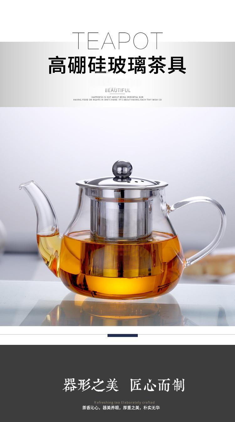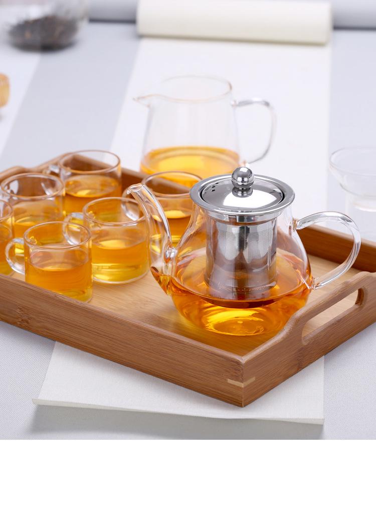 Tetera de vidrio resistente al calor de borosilicato de alta calidad, filtro de acero inoxidable, juego de té kung fu transparente para el hogar, espesada, venta al por mayor