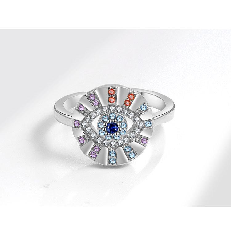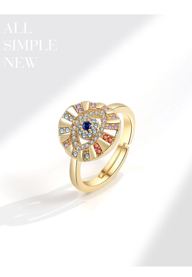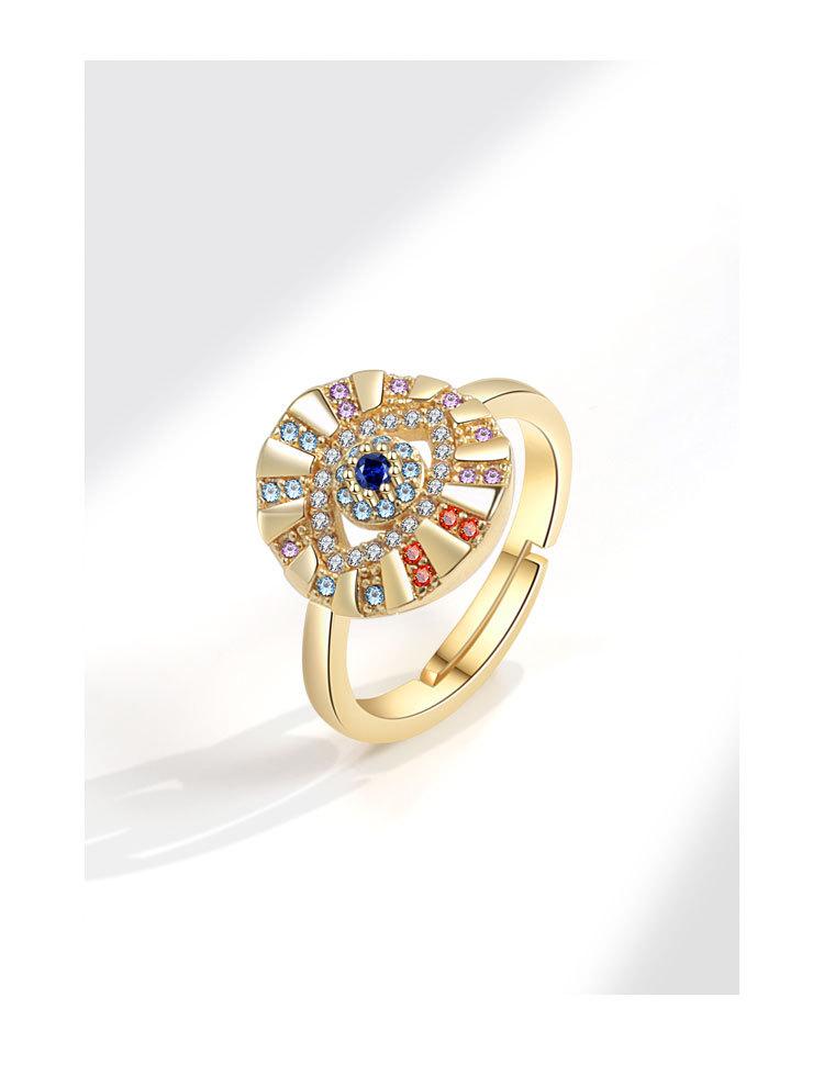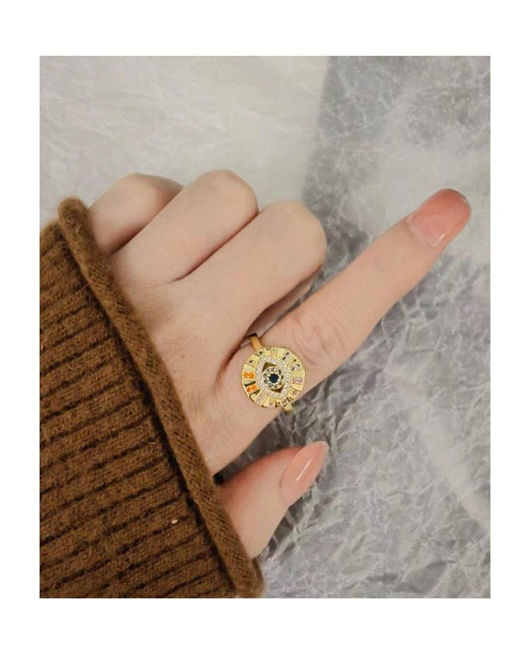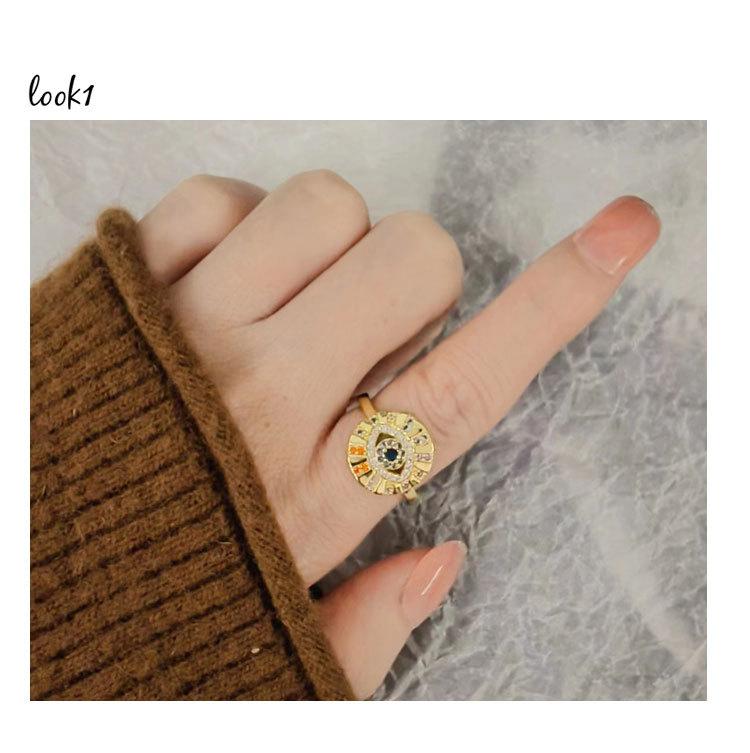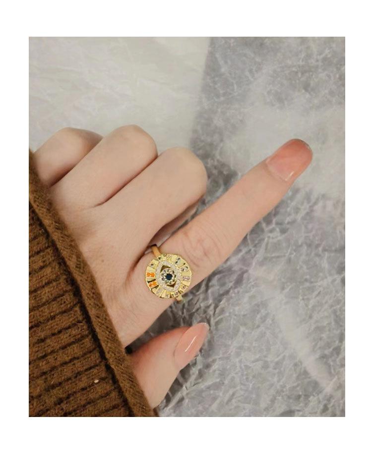 Deseo nueva joyería de moda chapada en cobre color oro real con incrustaciones de circonita anillo de ojo del diablo anillo retro personalizado
