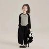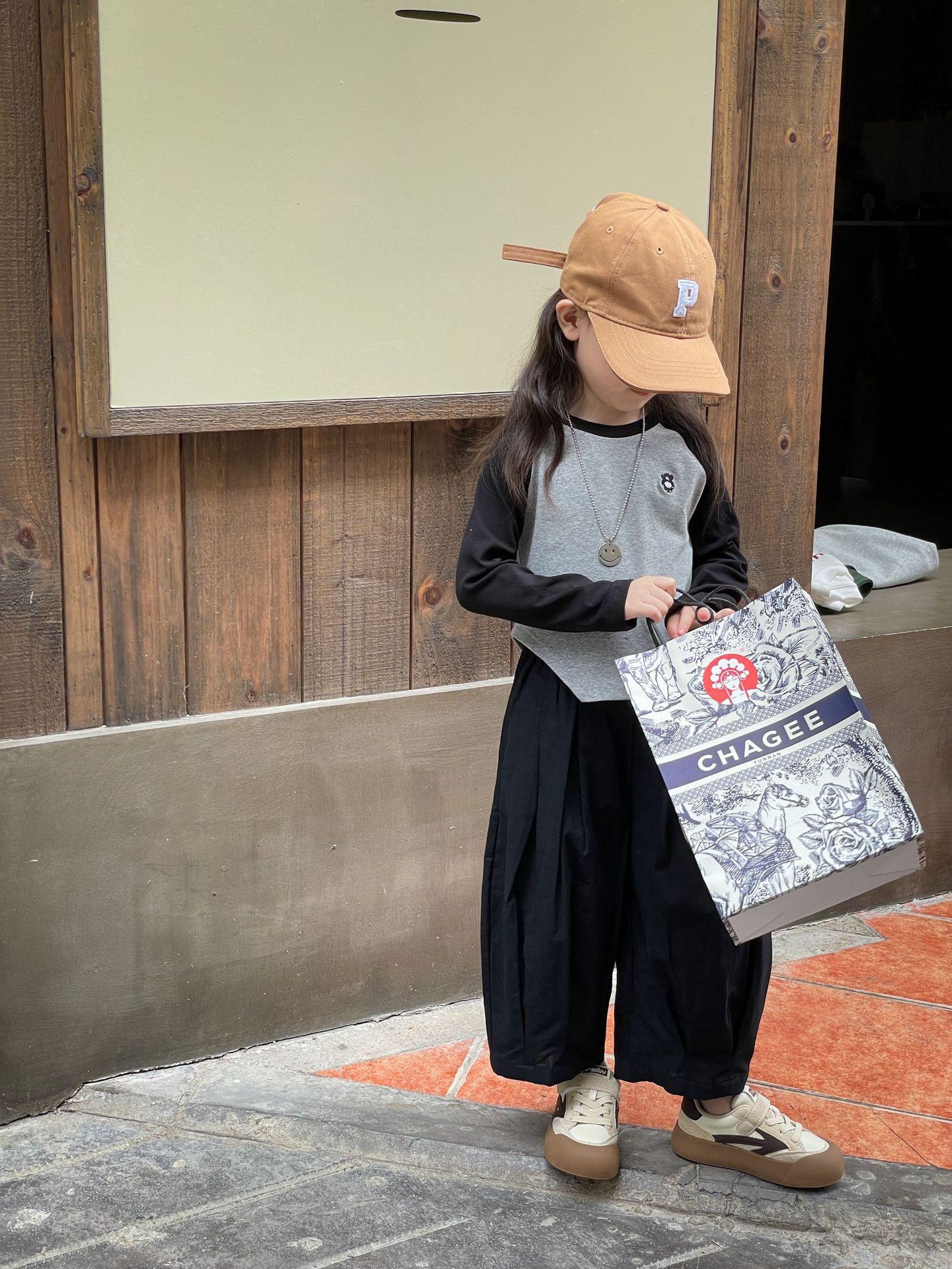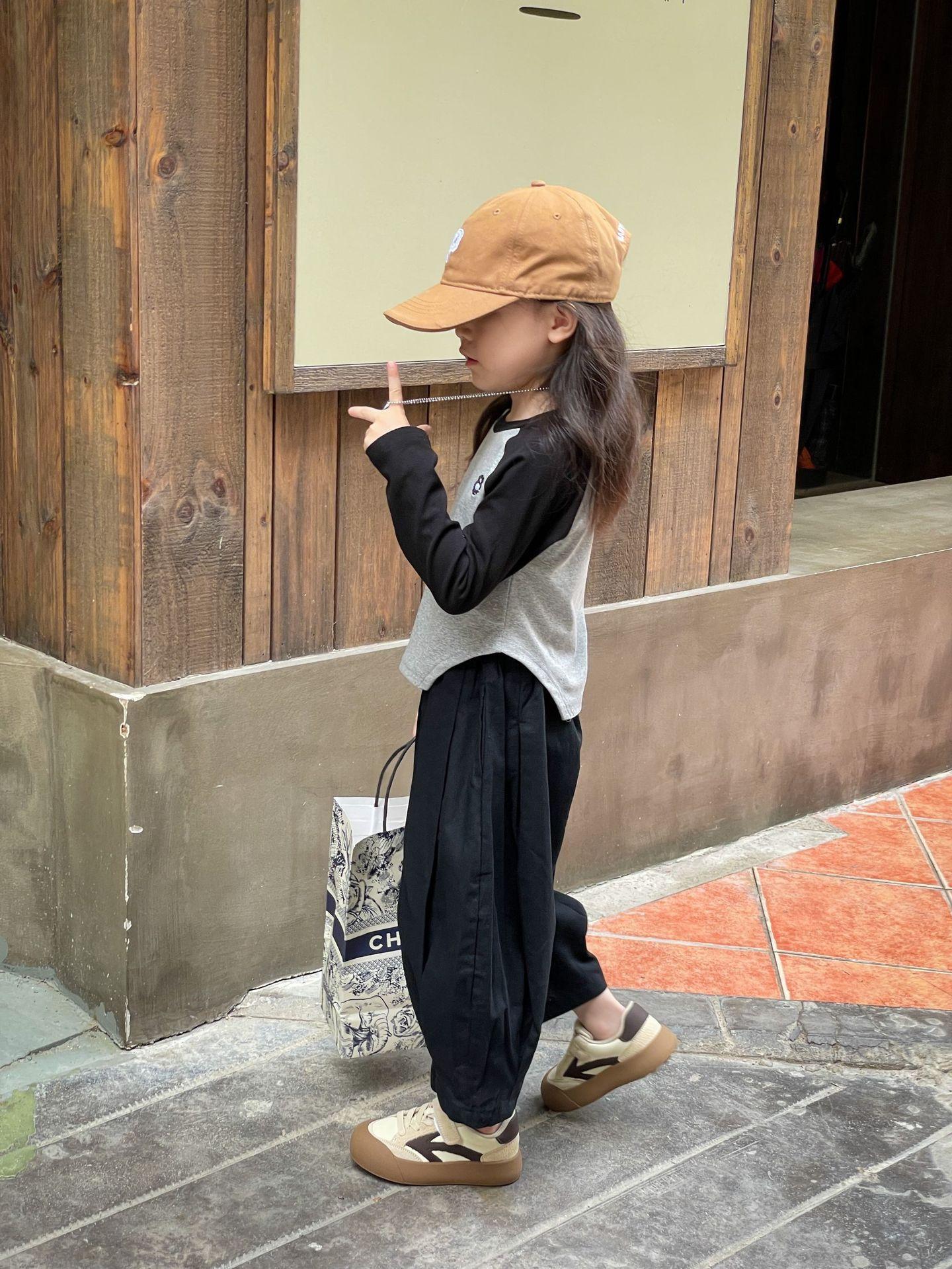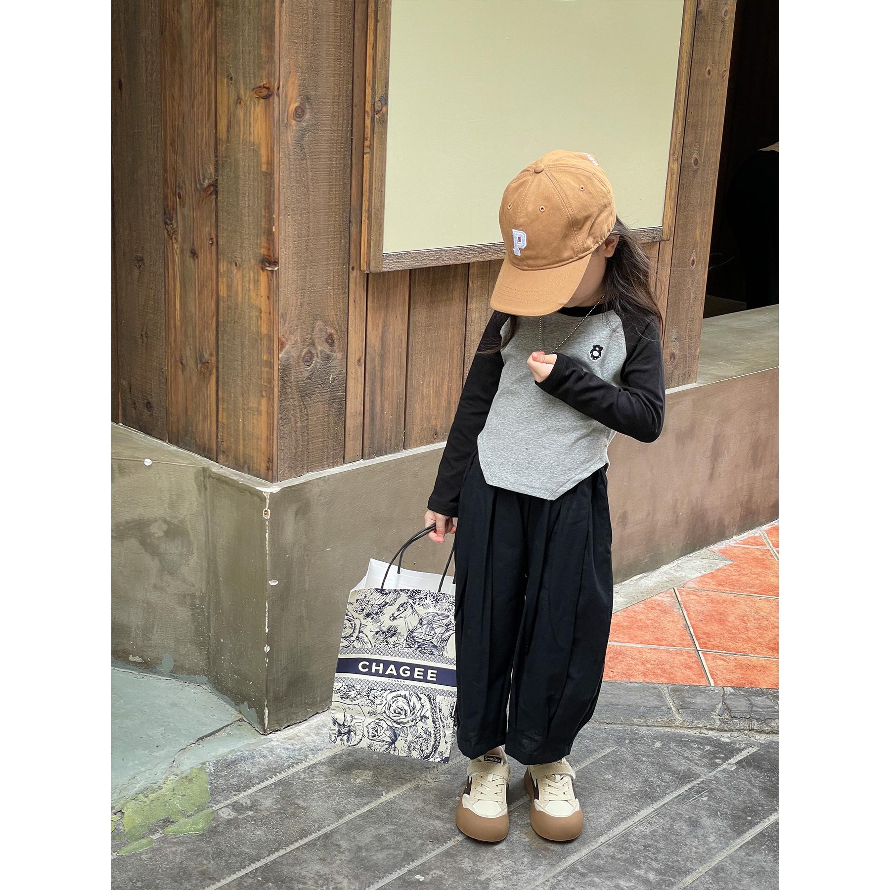 Traje de Primavera y Otoño para Niñas Estilo Occidental para Bebé Niños Personalizado Trendy Marca Coreana Bloque de Color Raglán Irregular Camiseta Pantalones de Pierna Ancha