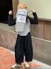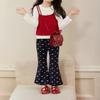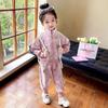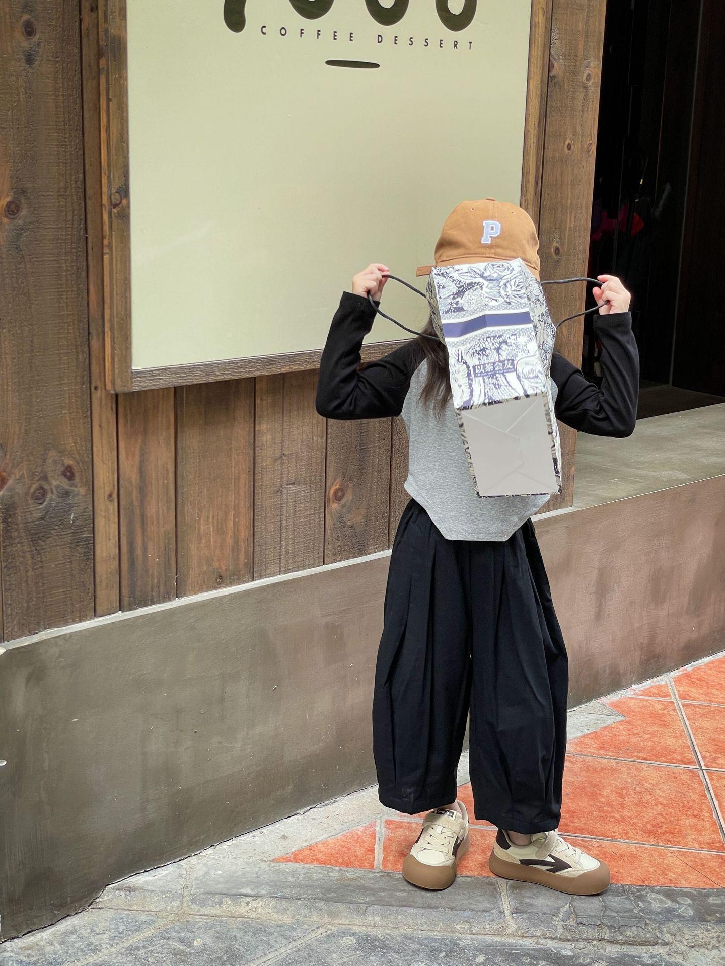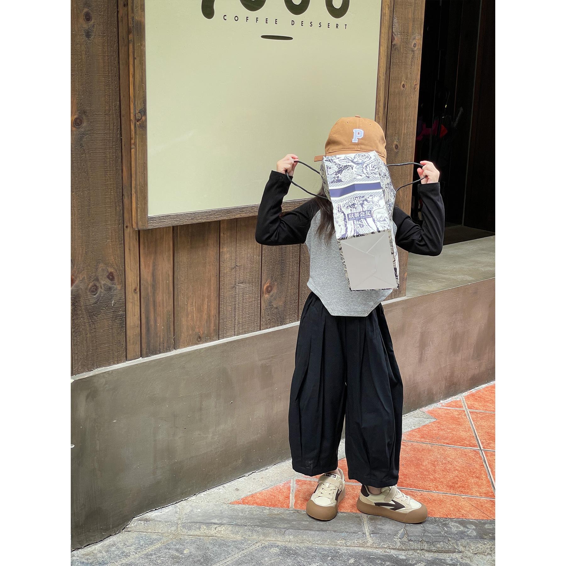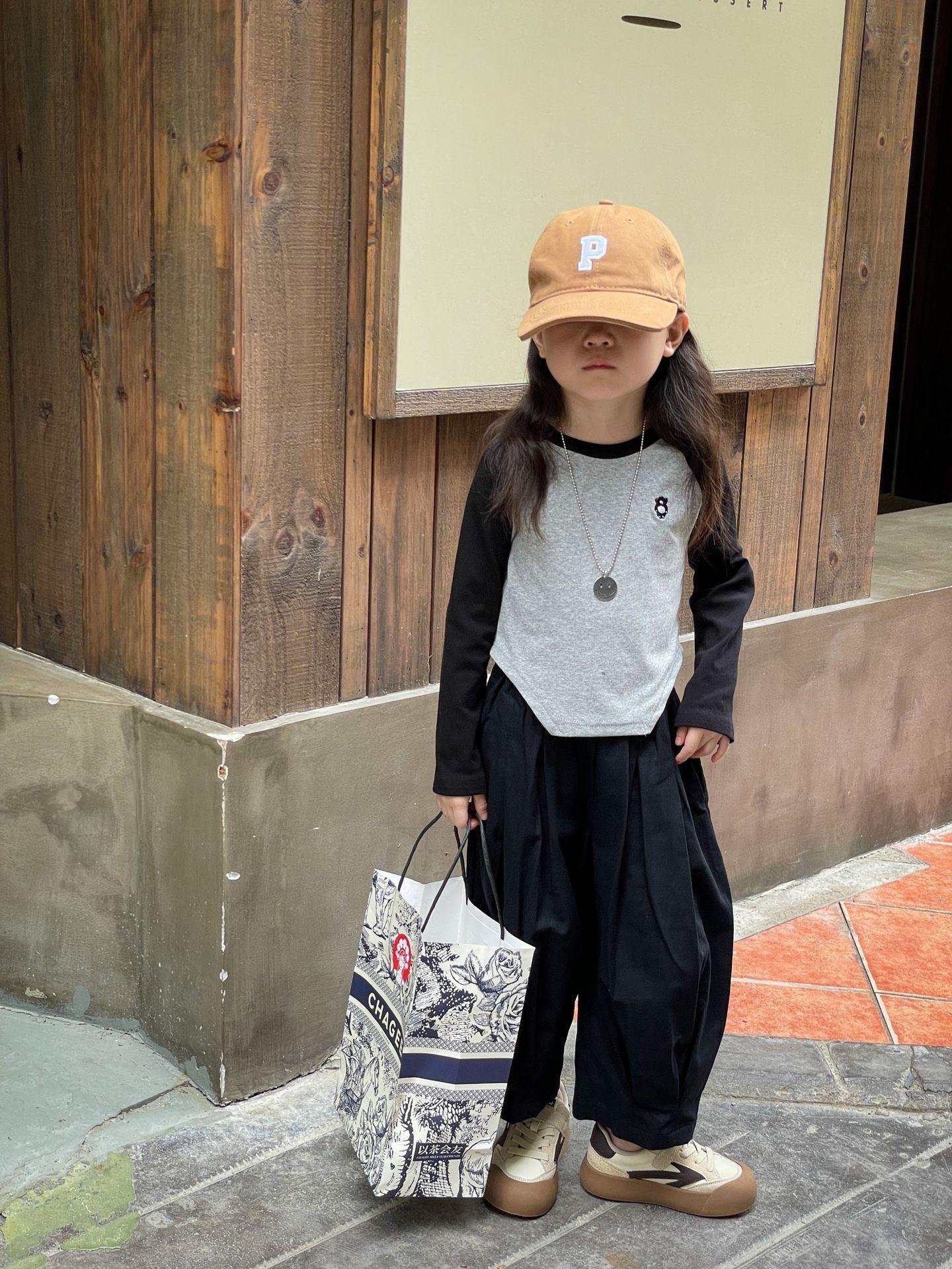 Traje de Primavera y Otoño para Niñas Estilo Occidental para Bebé Niños Personalizado Trendy Marca Coreana Bloque de Color Raglán Irregular Camiseta Pantalones de Pierna Ancha