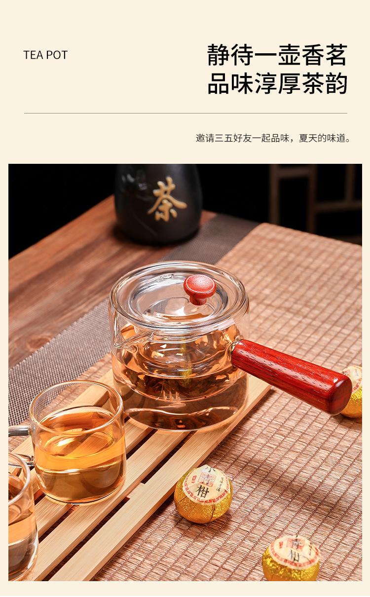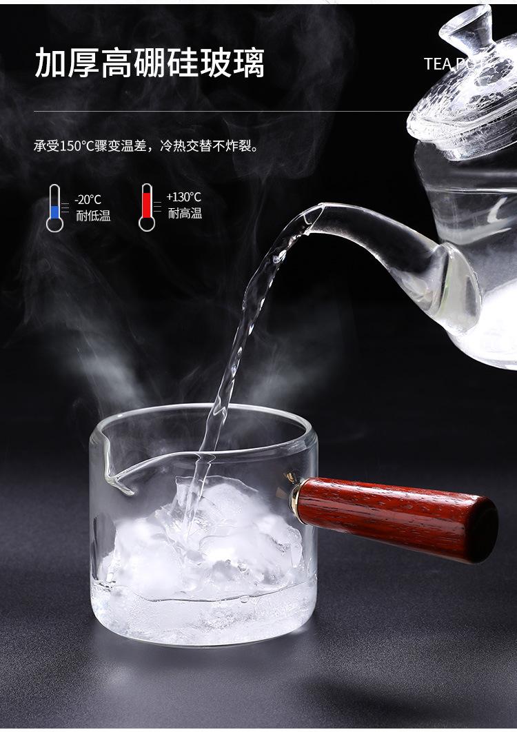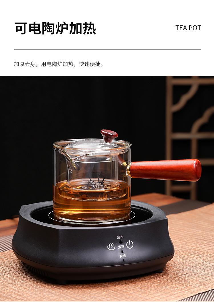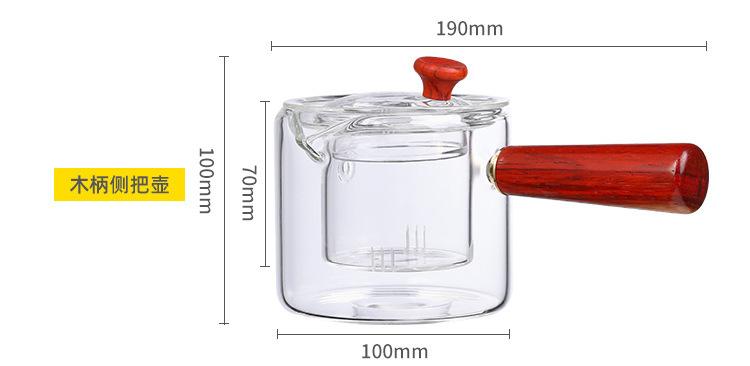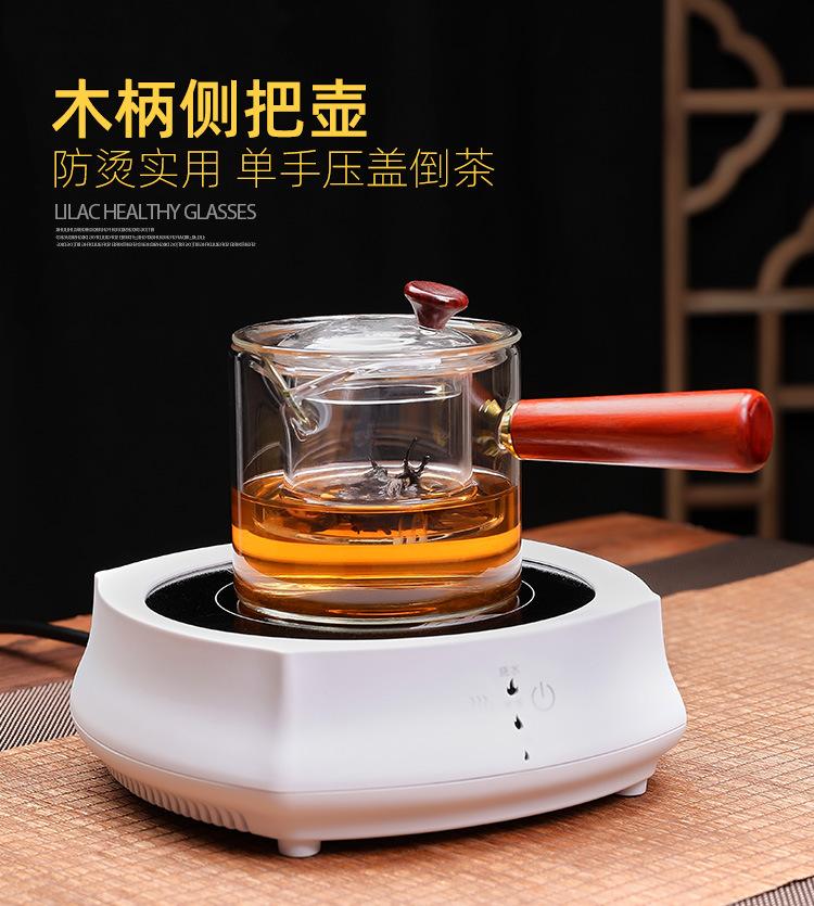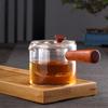 Tetera de vidrio de borosilicato con asa lateral, resistente al calor, para estufa, tetera especial para hervir té, tetera de oficina con asa de madera