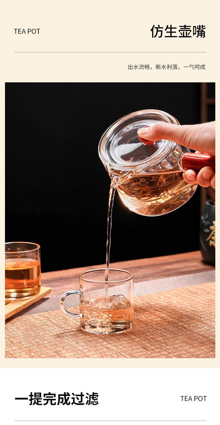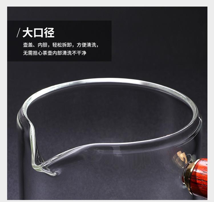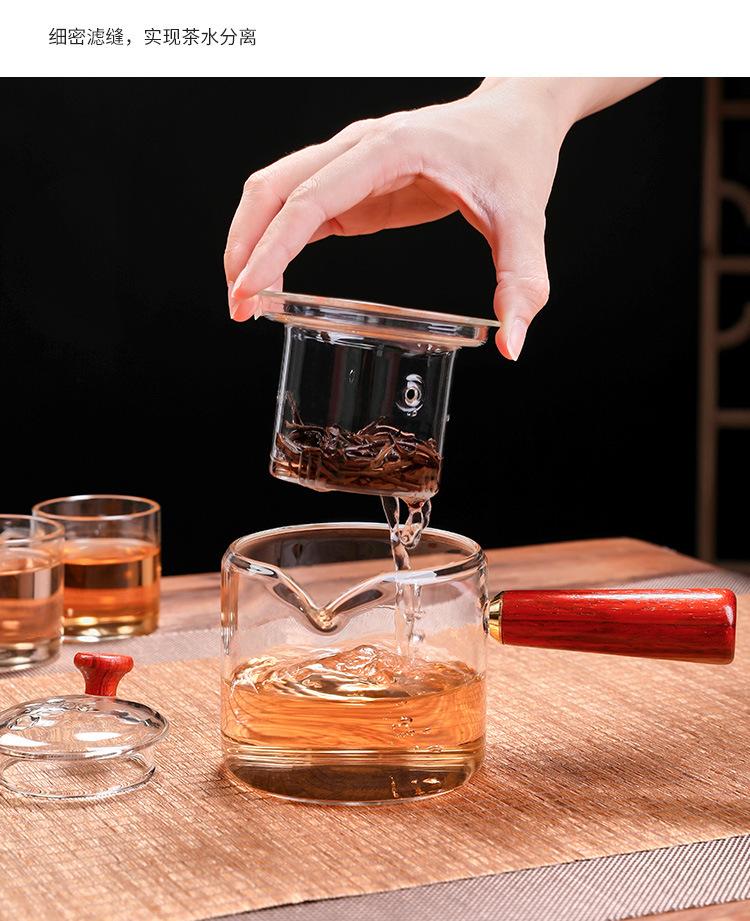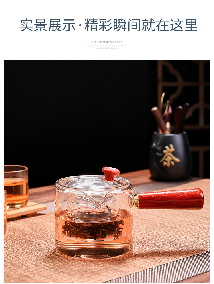 Tetera de vidrio de borosilicato con asa lateral, resistente al calor, para estufa, tetera especial para hervir té, tetera de oficina con asa de madera