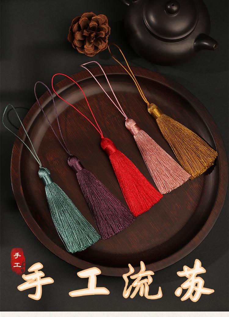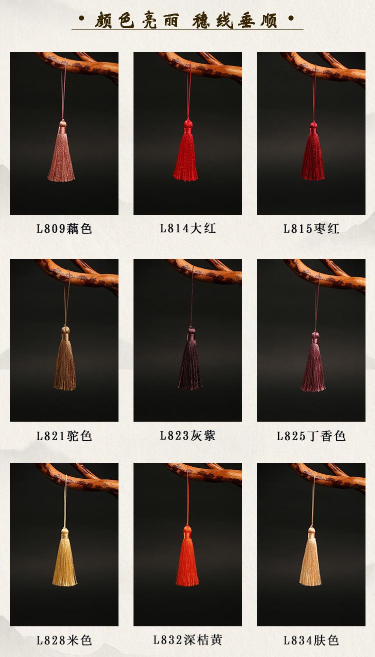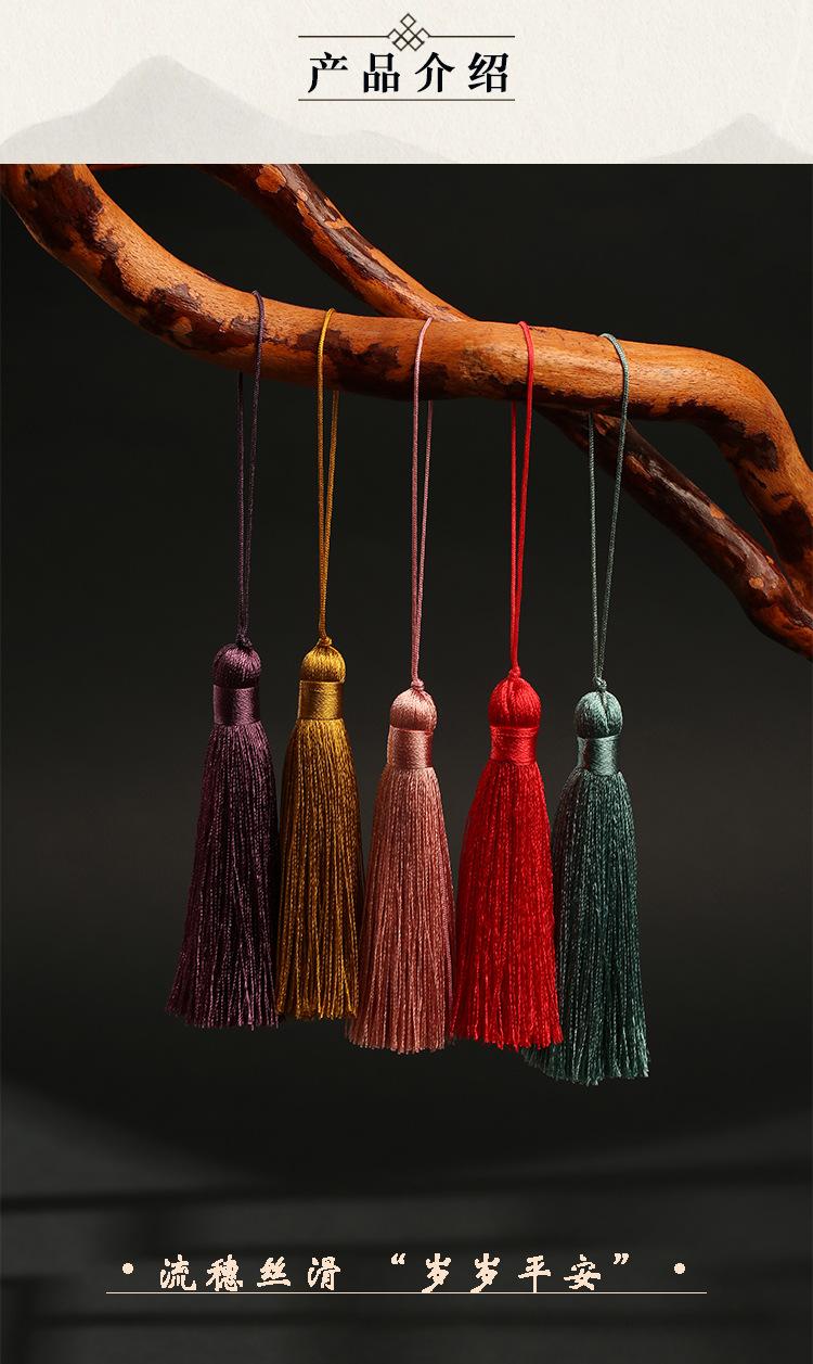 Marcapáginas con borlas de nailon de alto brillo con nudo de dragón, seda de hielo, colgante, nuevo bolso con púas para abanico, colgante, 30 colores elegantes, teñido que no se decolora
