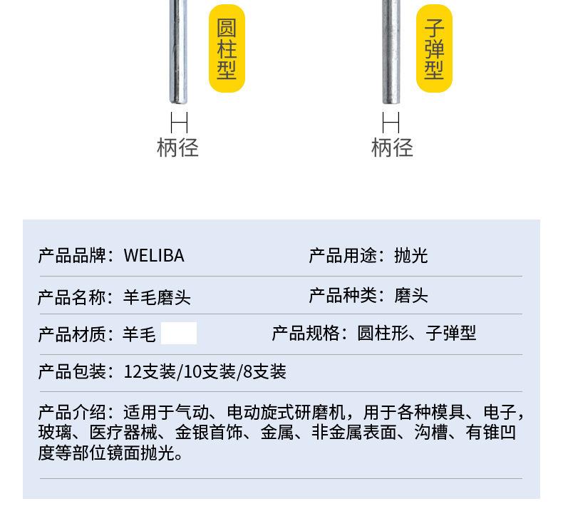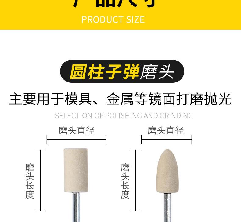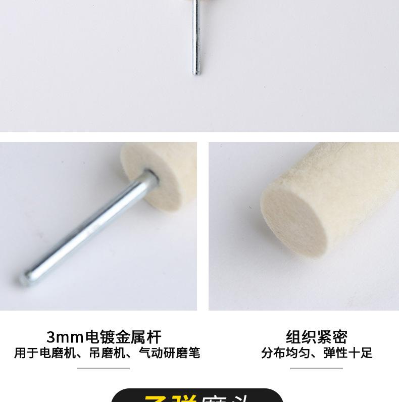 Cabezal de pulido de lana al por mayor, rueda de pulido de lana, cabezal de pulido de fieltro, mango de cabezal de pulido de 3 mm