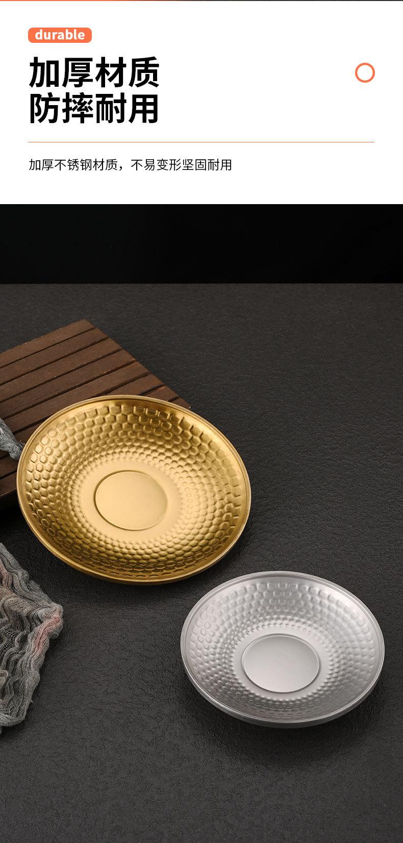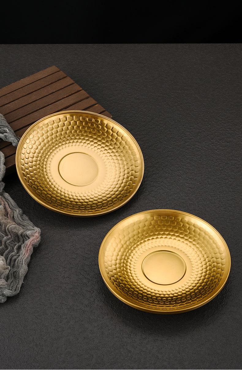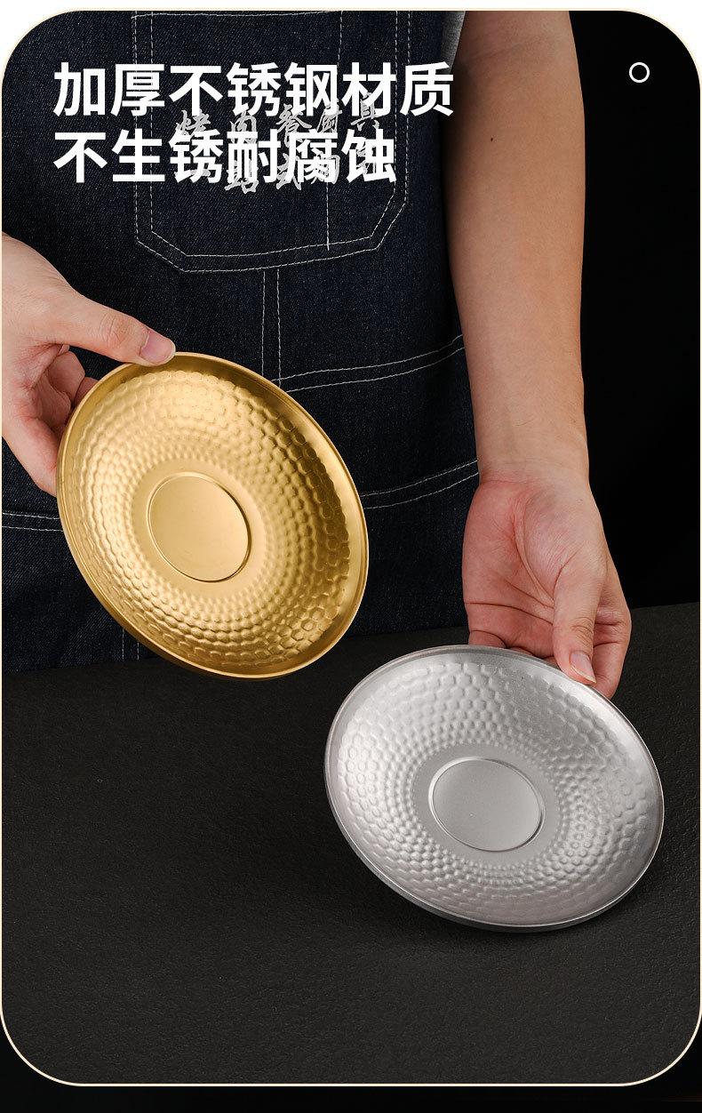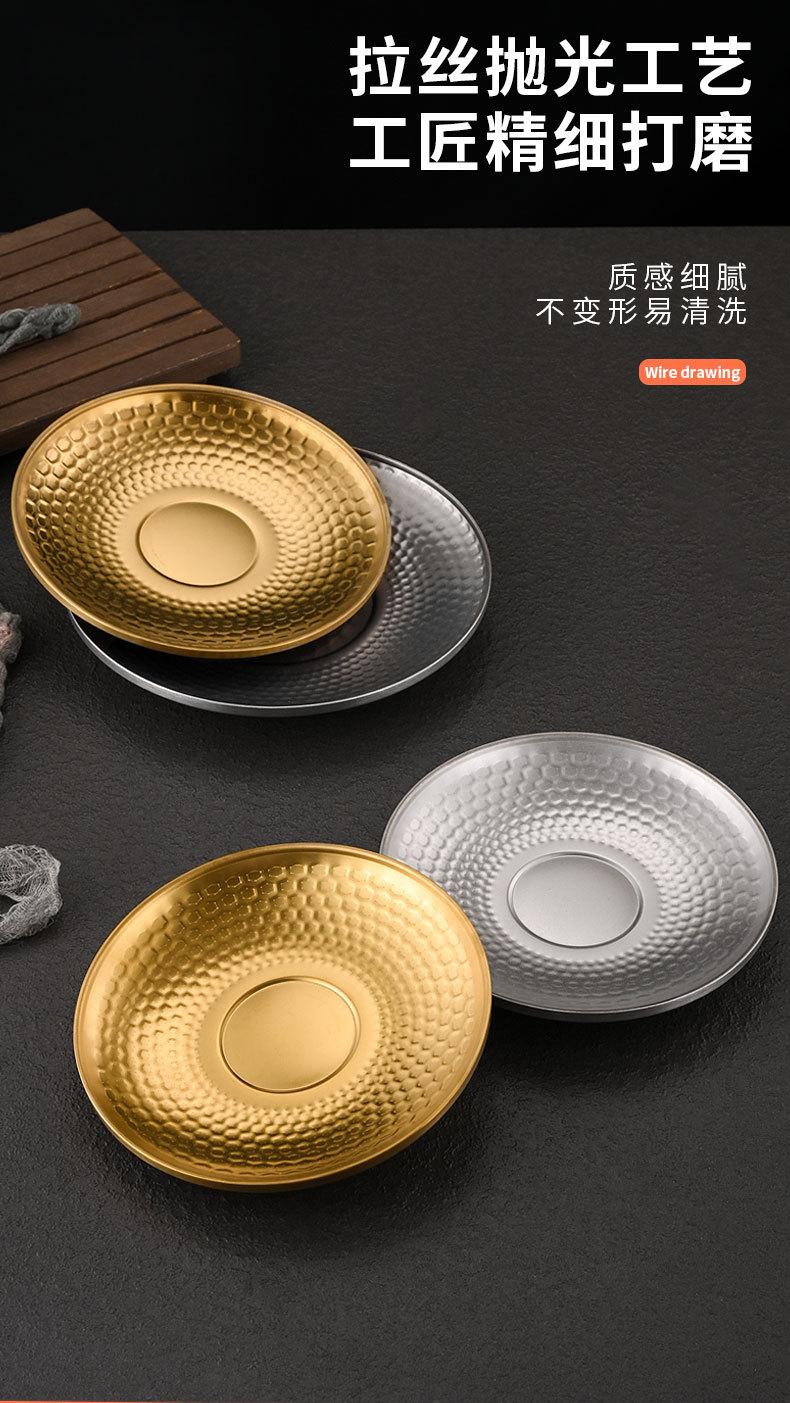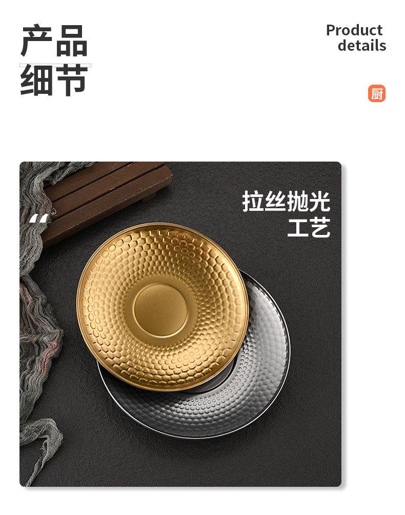 Suministro Directo de Plato Redondo Creativo Martillado de Acero Inoxidable 304 Comercial para Barbacoa Restaurante Dorado Plato Hondo para Snacks Postres Pastel