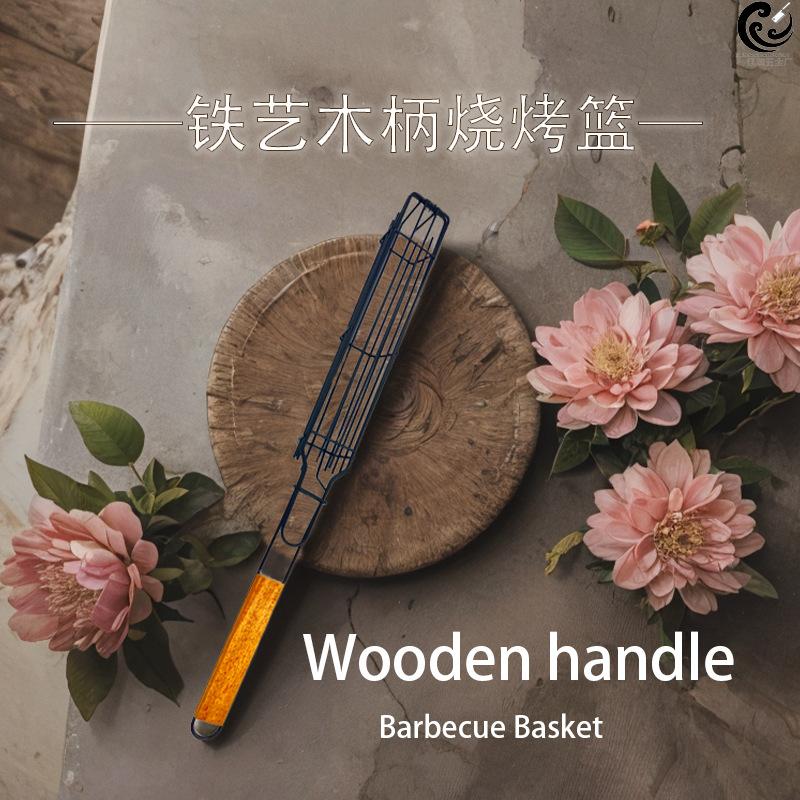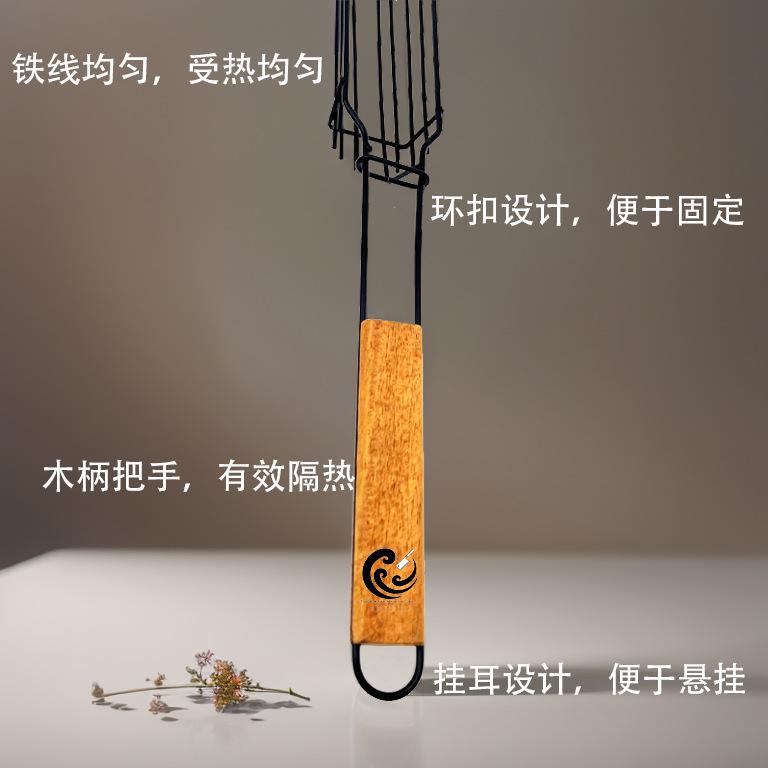 Cesta para Barbacoa con Mango de Madera Estilo Americano Cesta para Hot Dogs para Barbacoa Herramienta para Asar Salchichas Jaula Portátil para Uso en Exteriores a Prueba de Óxido