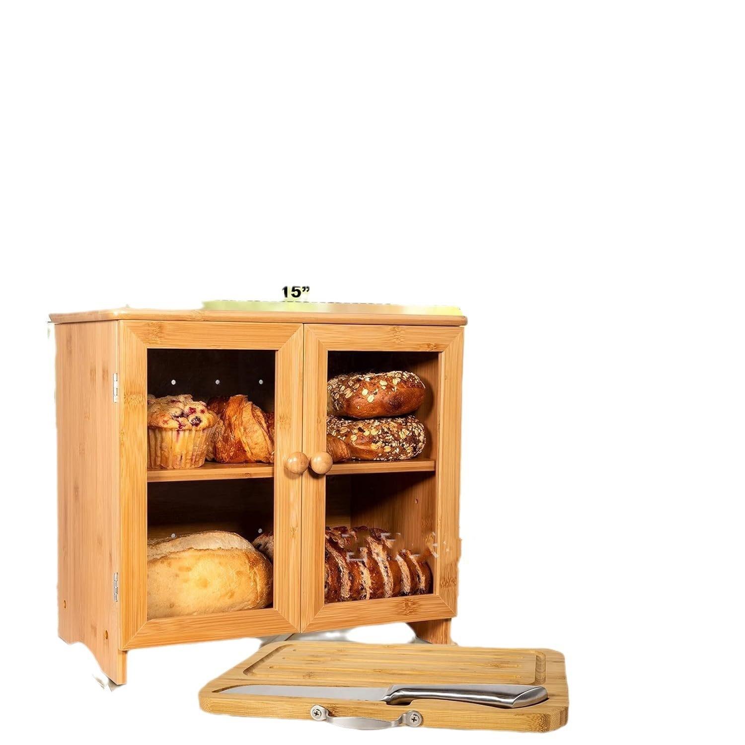 Panera de Bambú de Doble Capa Puerta de Gabinete Transparente Caja de Almacenamiento Multiusos para Cocina Gabinete de Almacenamiento de Pan y Snacks de Escritorio