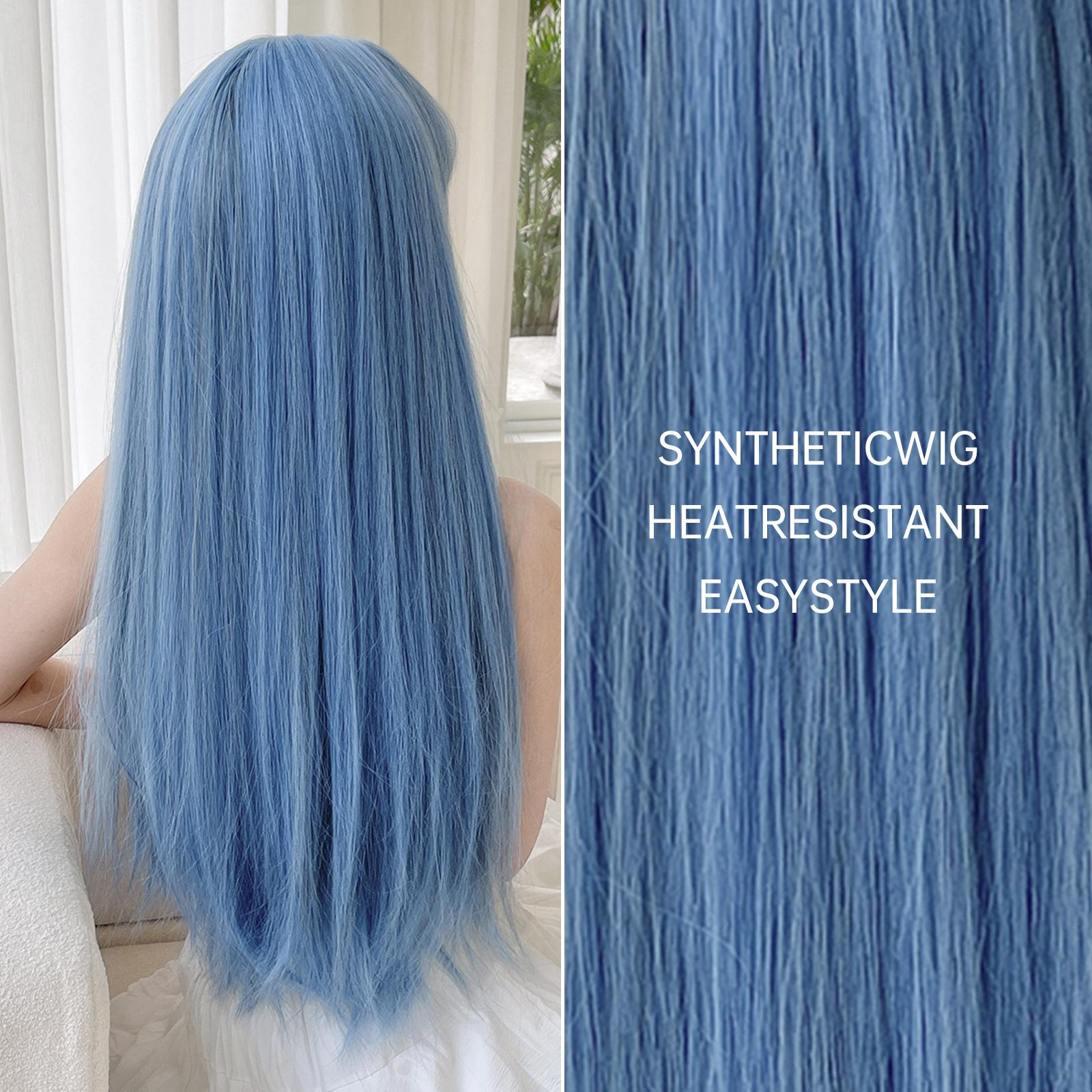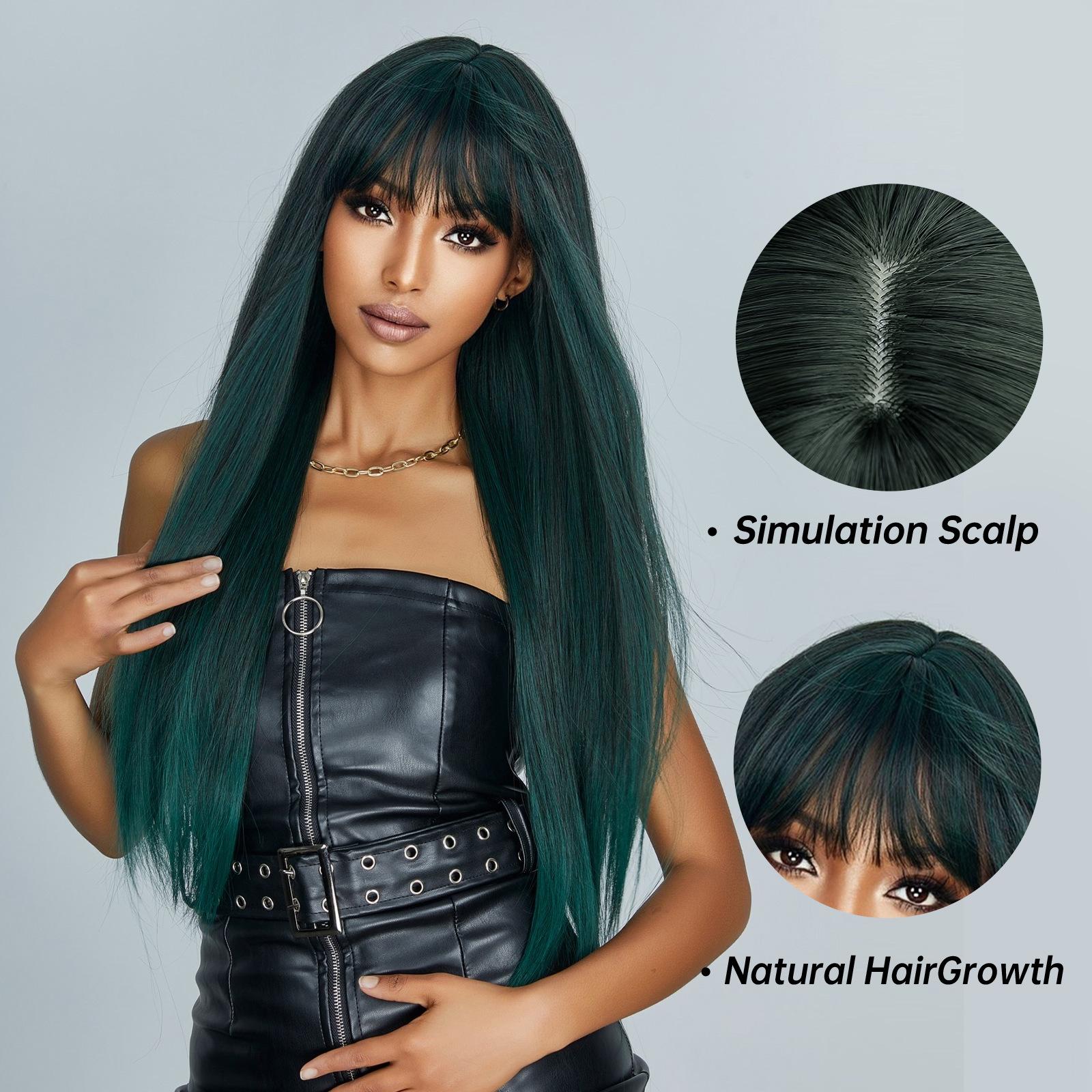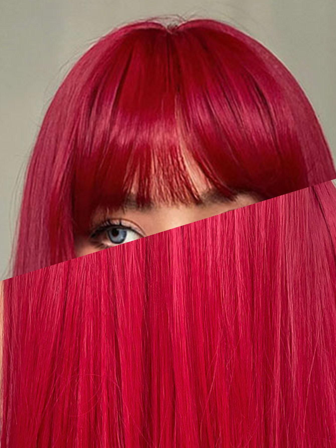 Pelucas al por mayor de fábrica de seda de alta temperatura realista natural con flequillo recto opcional multicolor, cabello largo y liso.