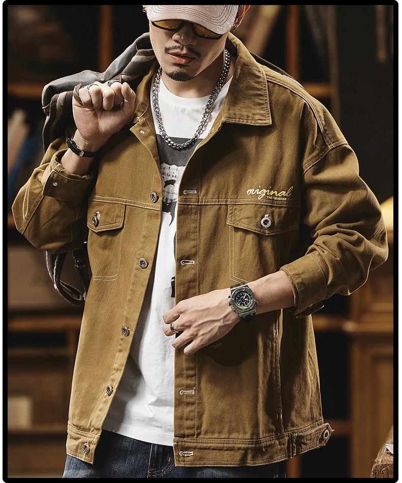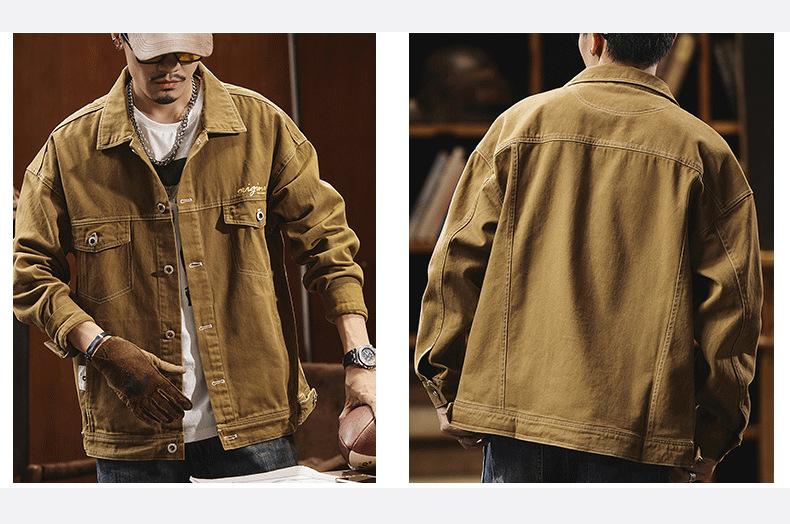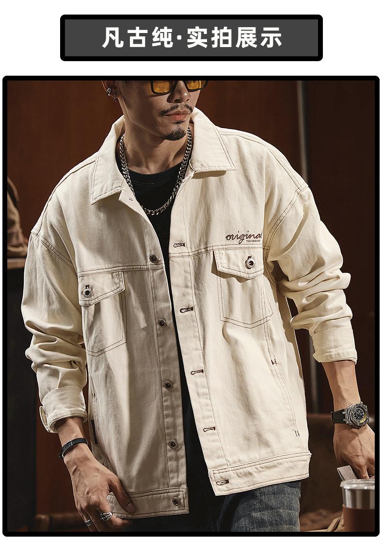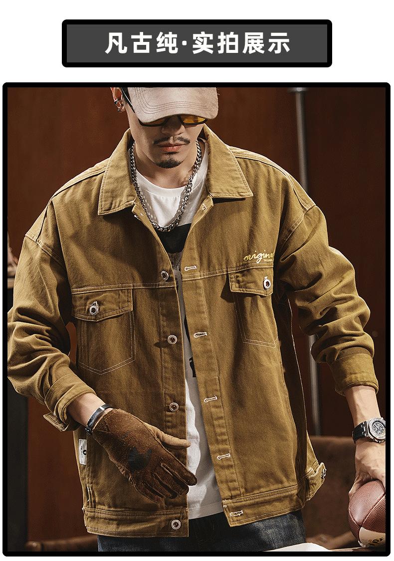 Chaqueta de trabajo de alta calidad para hombre, moda de primavera y otoño, marca, holgada, americana retro, con solapa, casual, guapa, de mezclilla Pu
