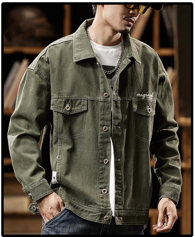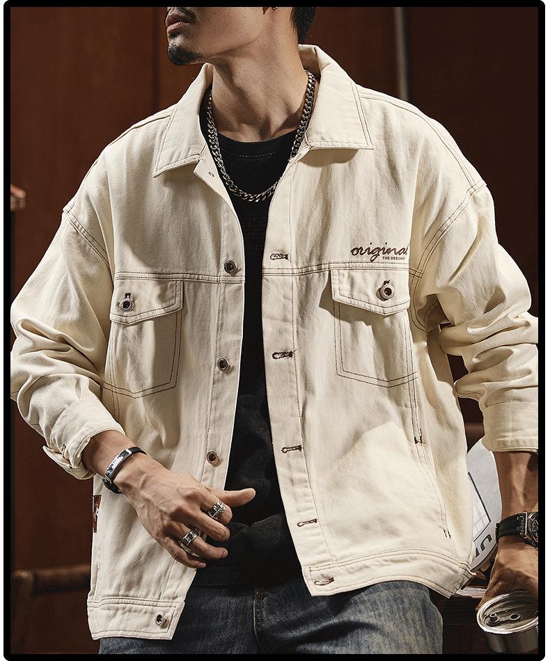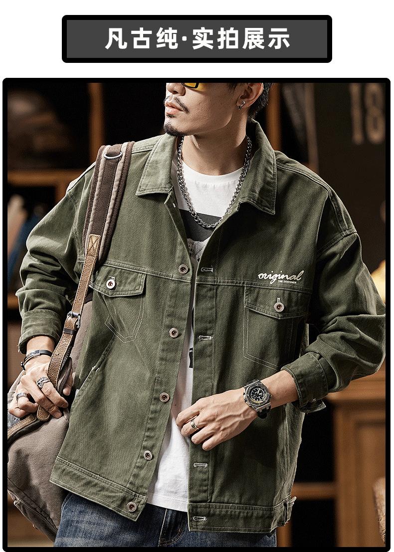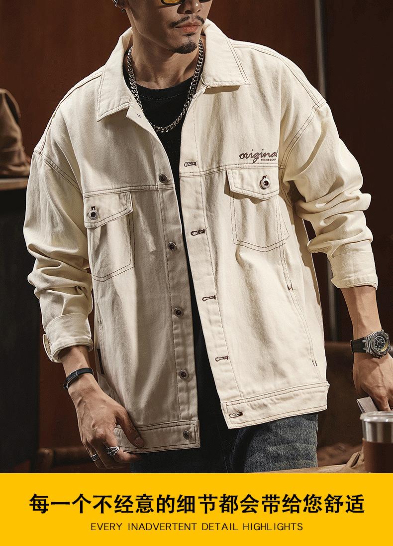 Chaqueta de trabajo de alta calidad para hombre, moda de primavera y otoño, marca, holgada, americana retro, con solapa, casual, guapa, de mezclilla Pu