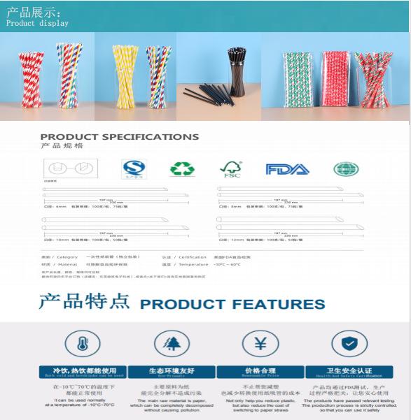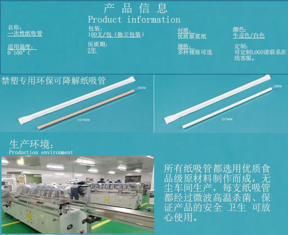 Pajita de papel desechable, 100 piezas, de grado alimenticio, protección del medio ambiente, pajita de papel degradable, blanca, 6 x 197 mm