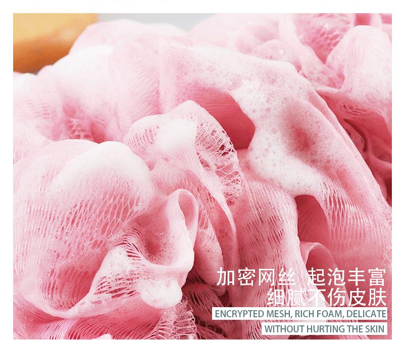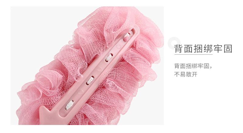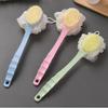 Cepillo de baño de plástico multifuncional al por mayor, cepillo de masaje de doble cara, utensilios de fregado con mango largo, bola de baño espumosa en la parte posterior.