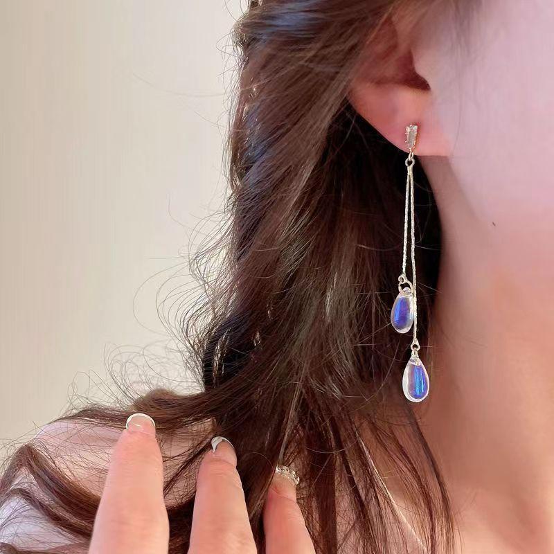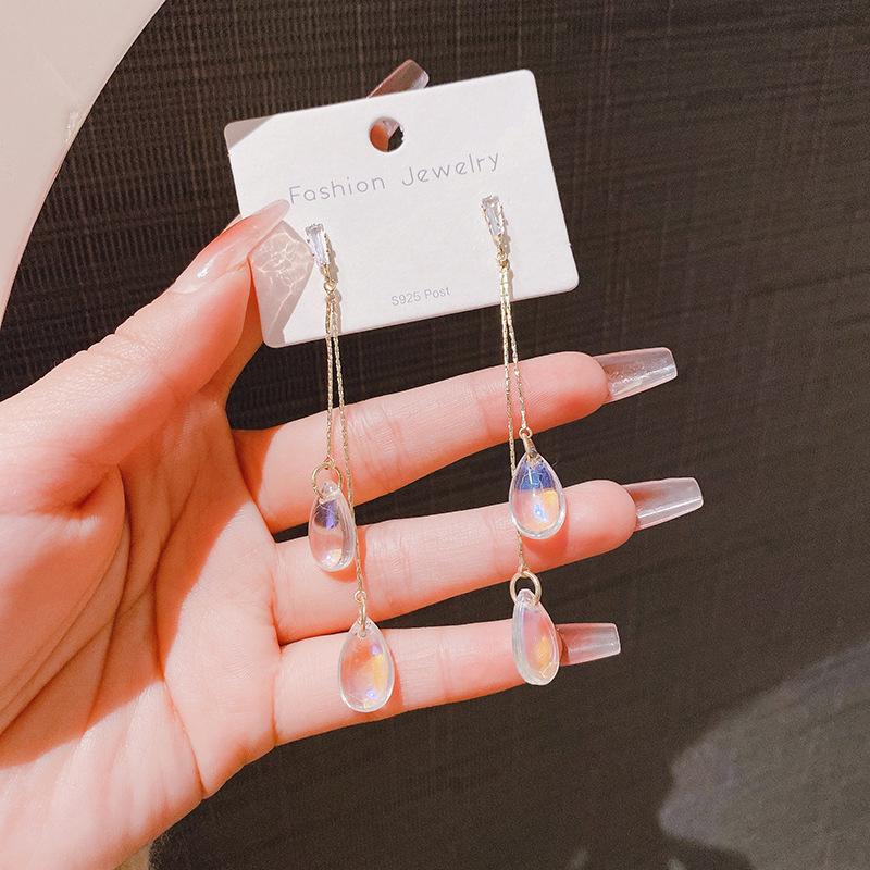 Compra Pendientes de borla con forma de gota de agua y circonita con aguja de plata, estilo coreano, sencillos y largos, a la moda, combinables con todo. al por mayor en Joom.pro