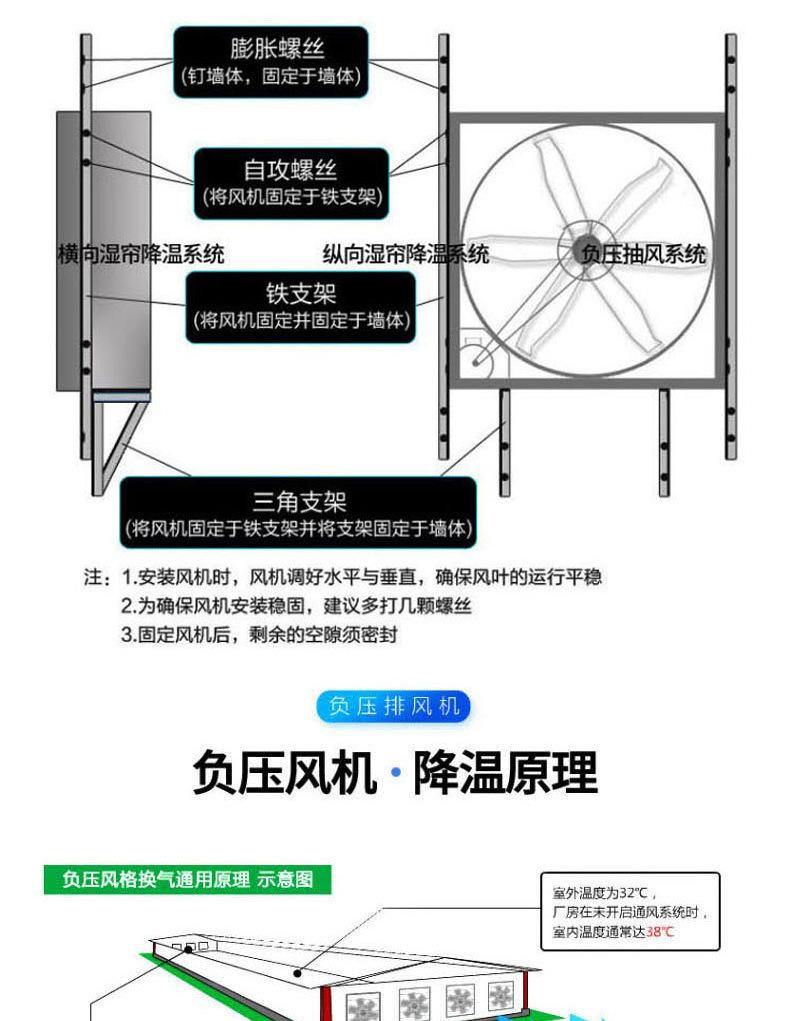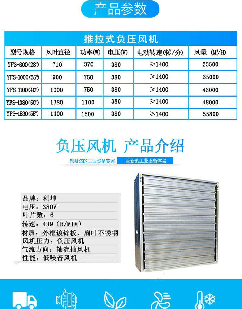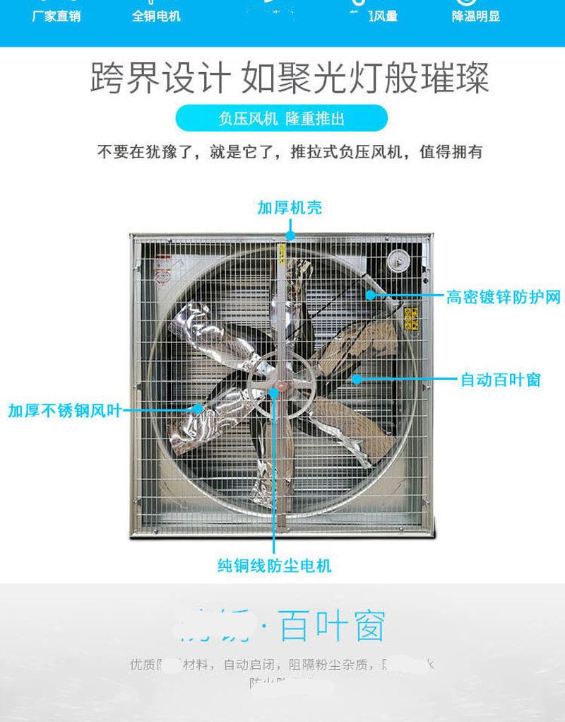 Ventilador de ventilación de gran volumen de aire, ventilador de presión negativa push-pull para invernaderos de cría de animales.