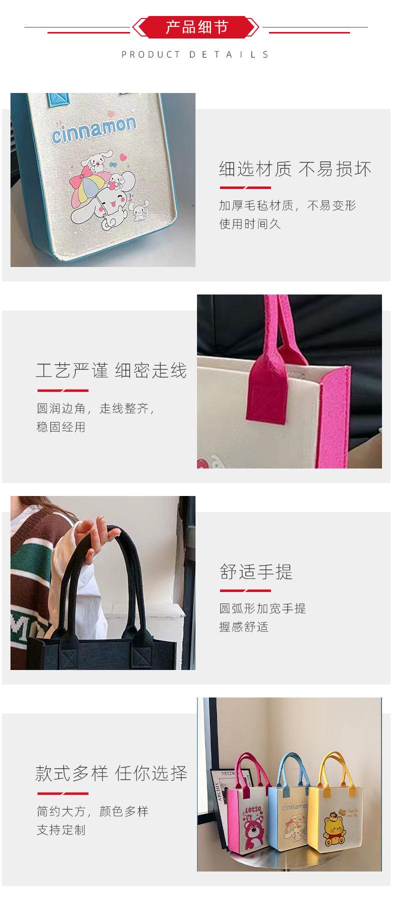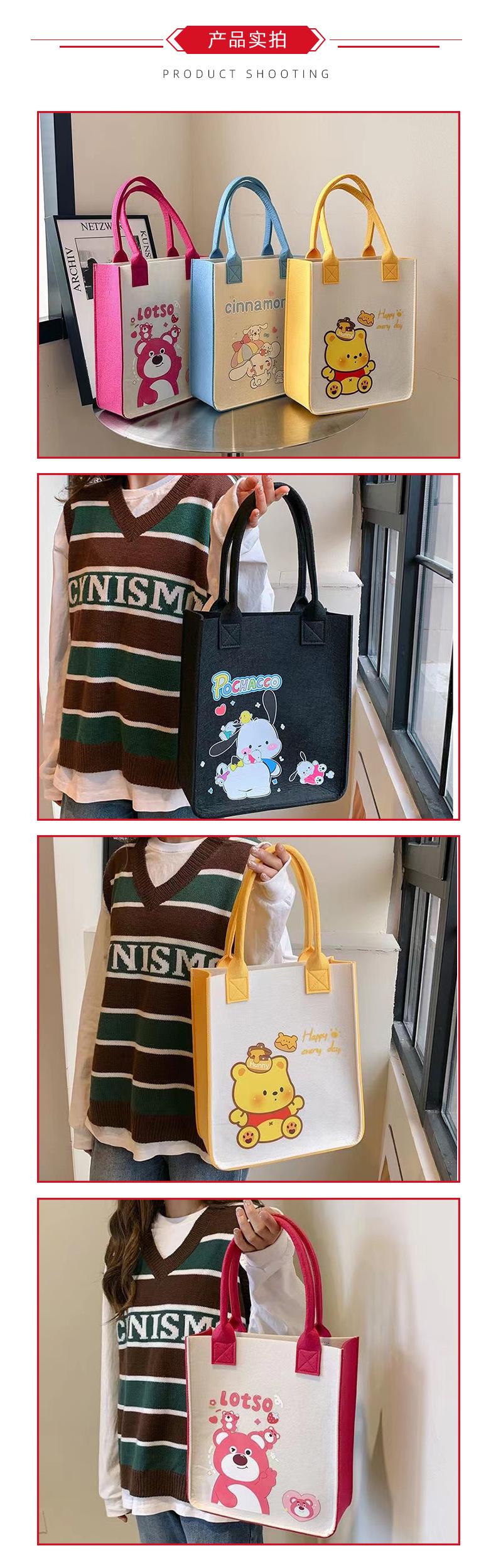 Strawberry bear felt bag; 30*25*13cm, Yugui dog felt bag; 30*25*13cm, Winnie the Poole felt bag; 30*25*13cm, Sanrio; 30*25*13cm
