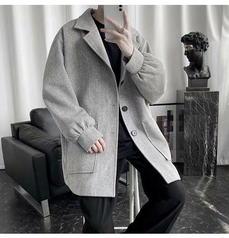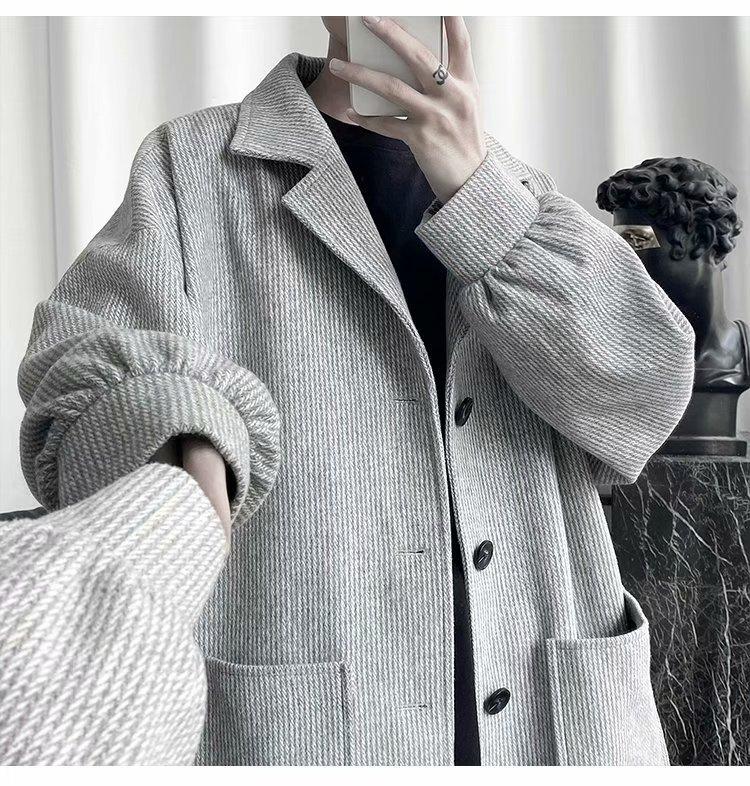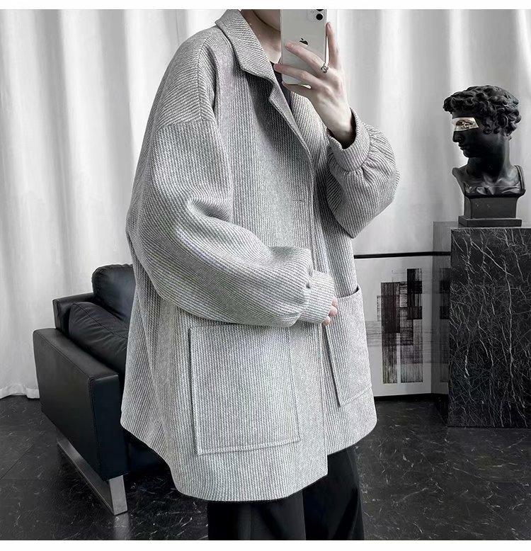 Abrigo de lana para hombre, otoño e invierno, marca de moda, abrigo corto de lana, chaqueta informal holgada
