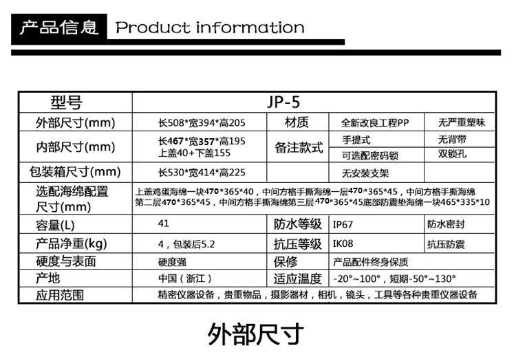 Caja de seguridad a prueba de humedad Wandebao JP-5 con esponja caja de instrumentos impermeable caja de instrumentos caja de equipo a prueba de humedad