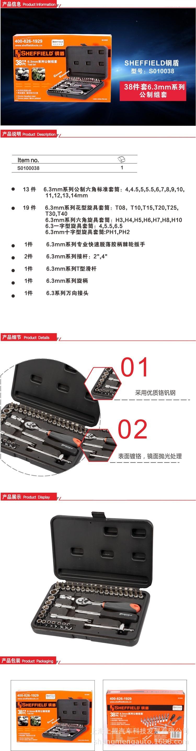 Juego de herramientas industriales con protector de acero de 38 piezas, serie 6,3 mm, juego métrico