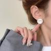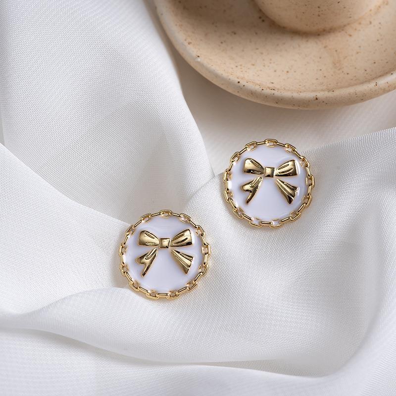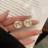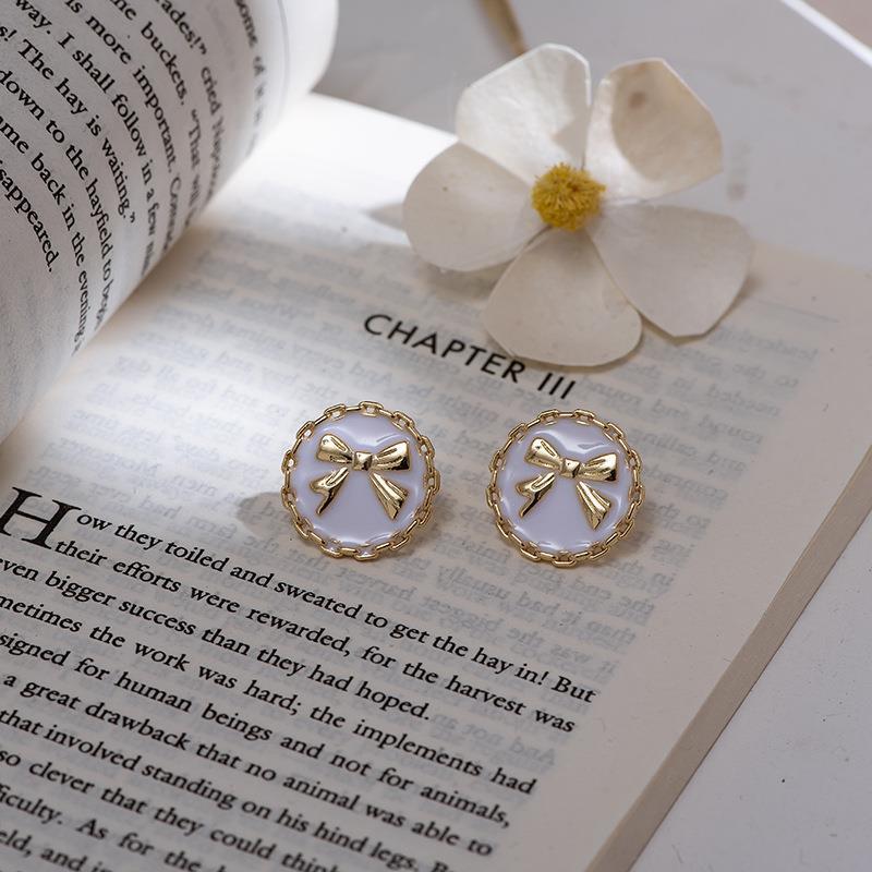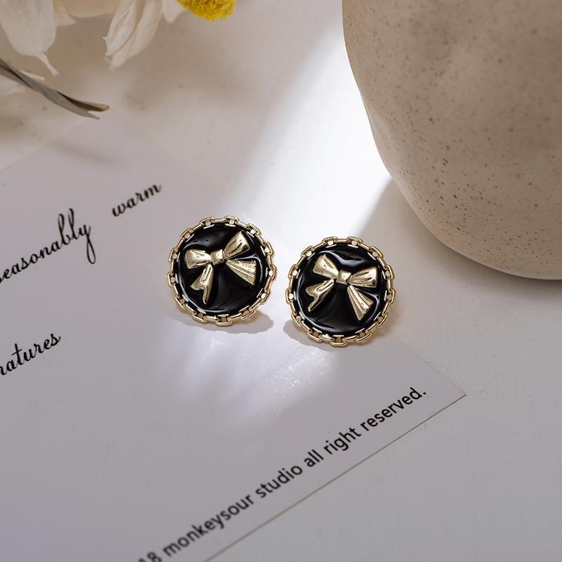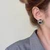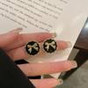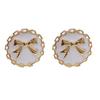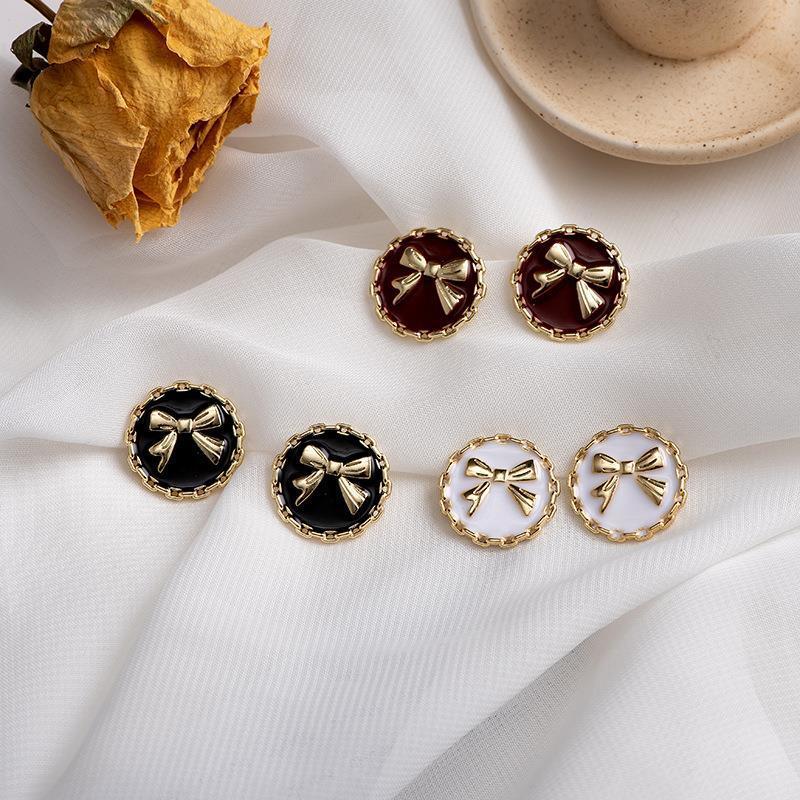 Según los buenos ~ Pendientes de botón redondo con lazo lindo coreano Mori Pendientes de chica retro en blanco y negro
