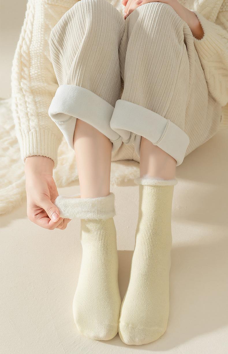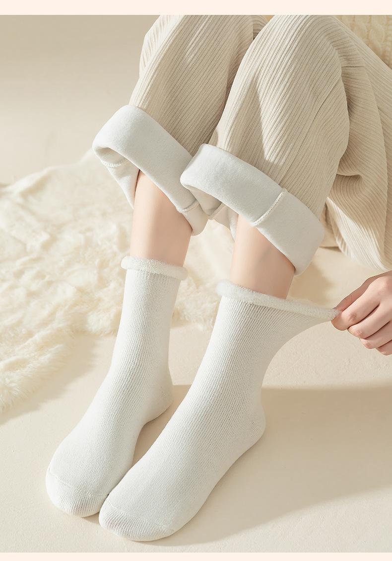 Calcetines gruesos para mujer calcetines gruesos hasta media pantorrilla con forro polar invierno cálido color sólido rizado boca suelta calcetines de confinamiento medias de dormir cepilladas