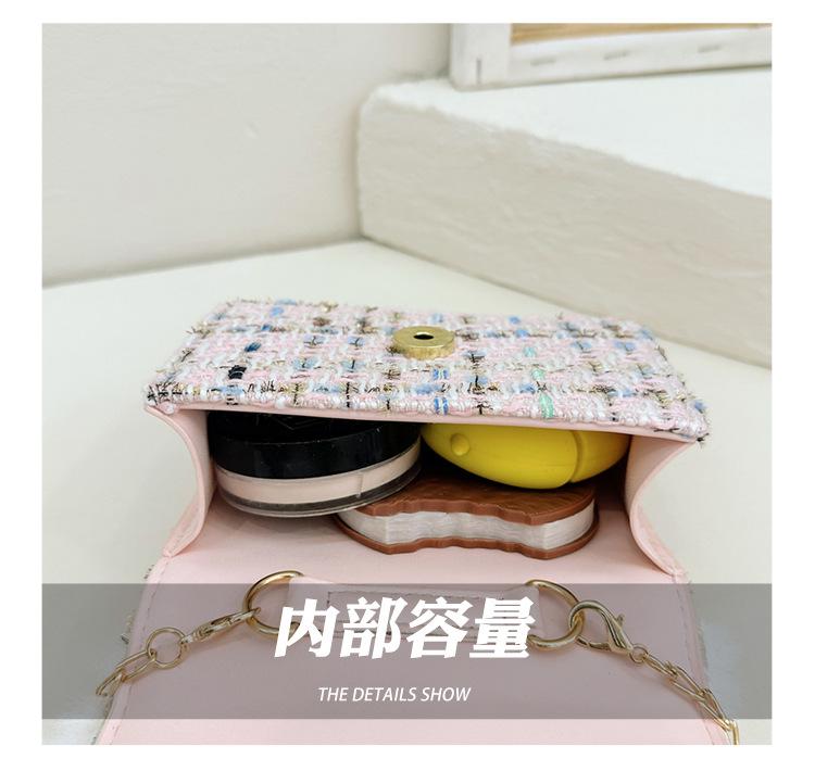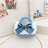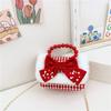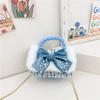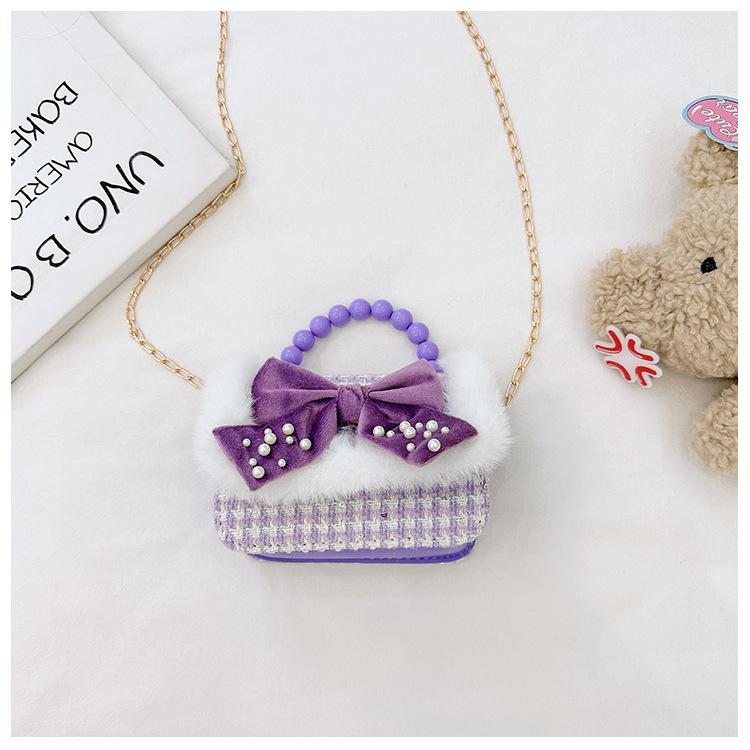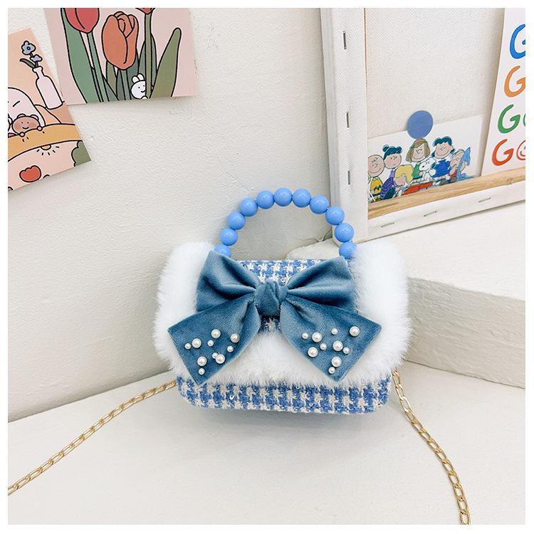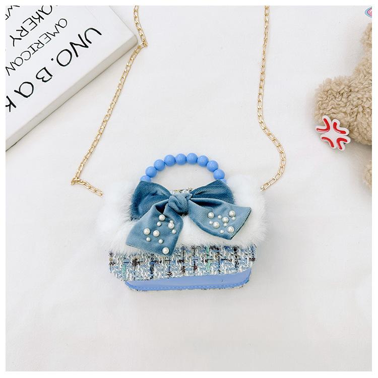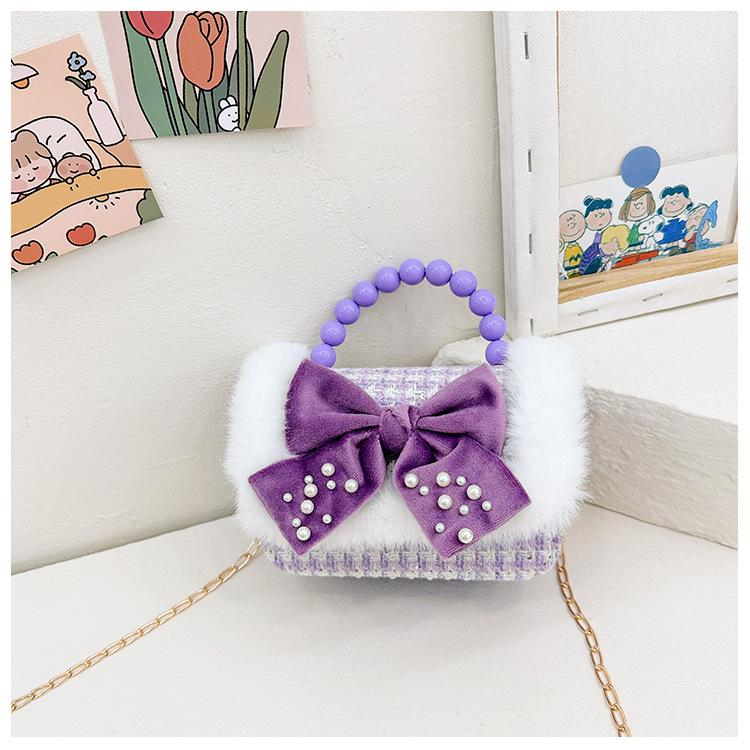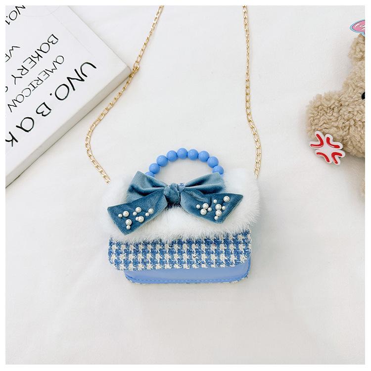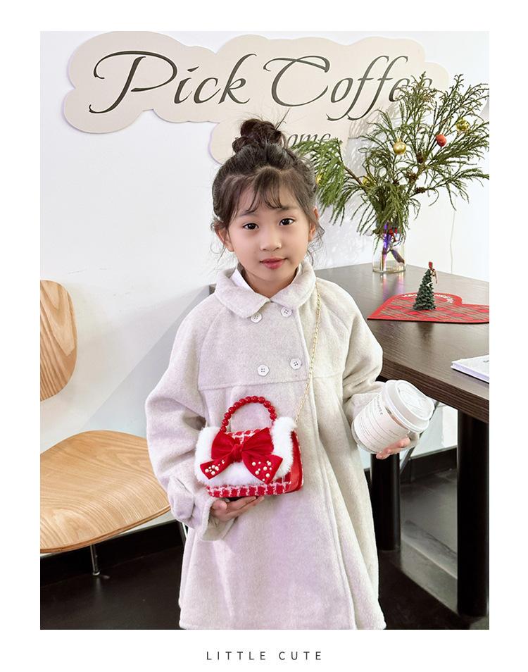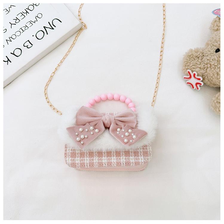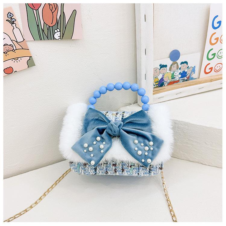 Bolso cuadrado pequeño para niños, bolso de perlas de moda para otoño e invierno, bolso de hombro de tela con lazo para niñas con festival de Año Nuevo para niños