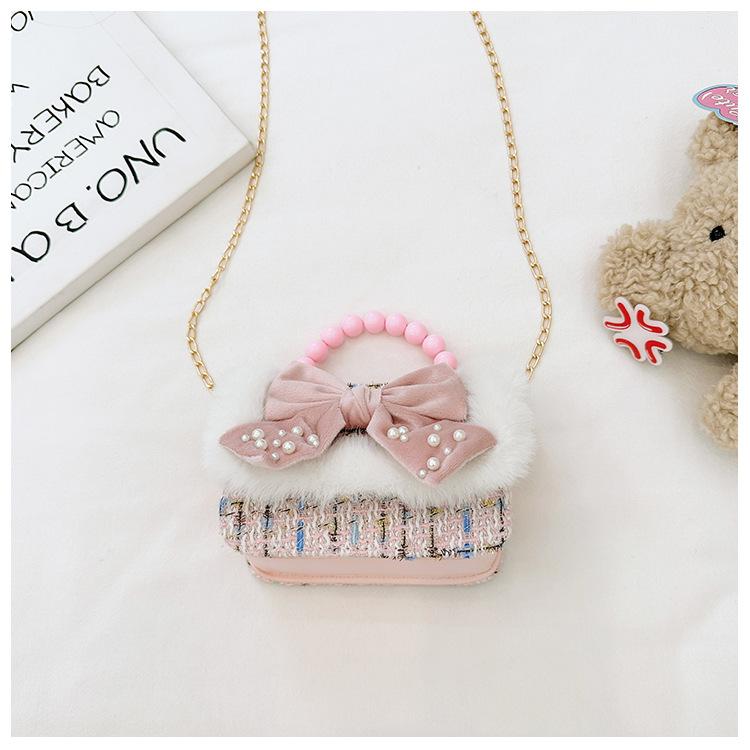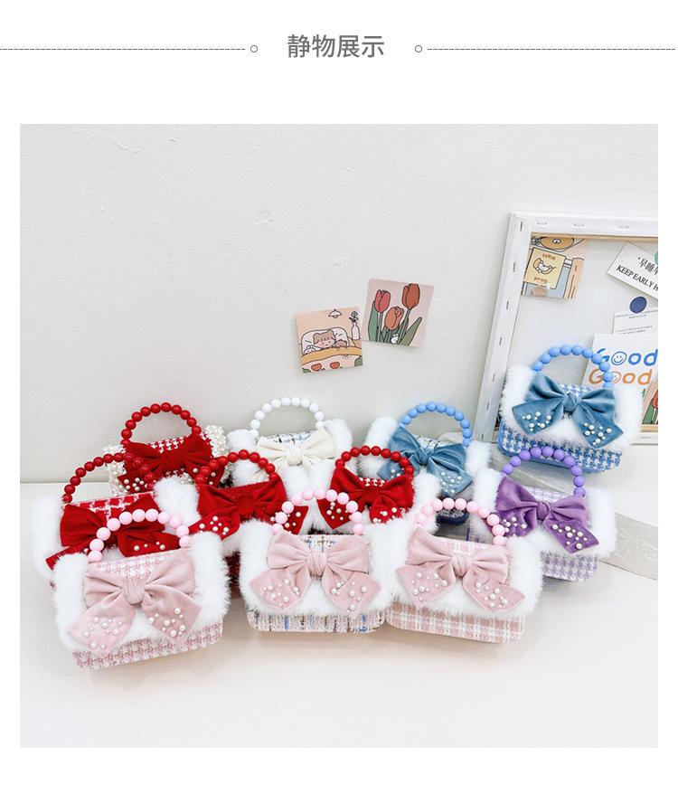 Compra Bolso cuadrado pequeño para niños, bolso de perlas de moda para otoño e invierno, bolso de hombro de tela con lazo para niñas con festival de Año Nuevo para niños al por mayor en Joom.pro