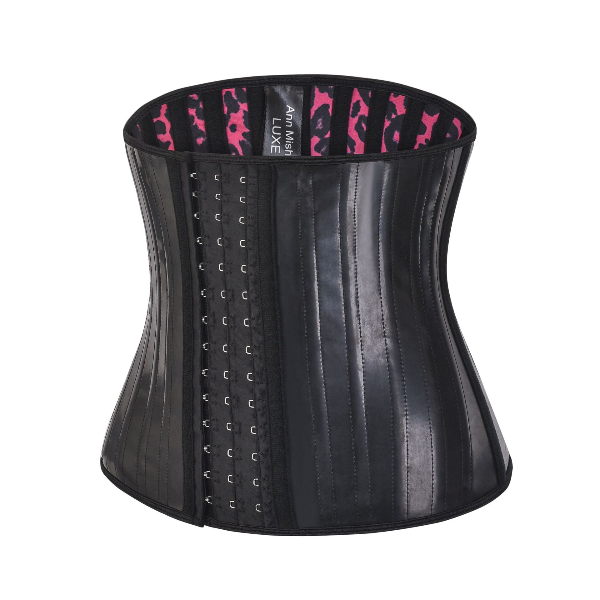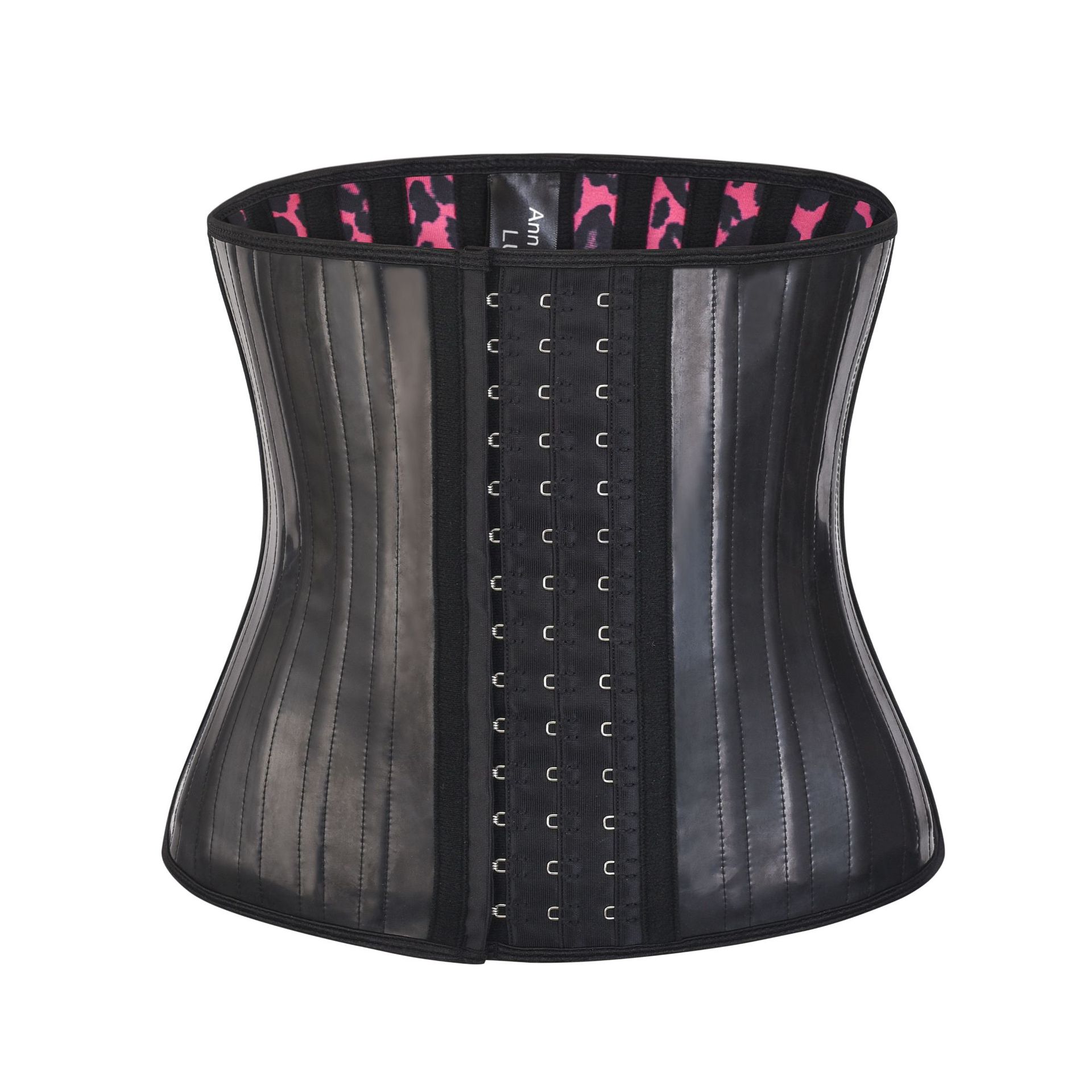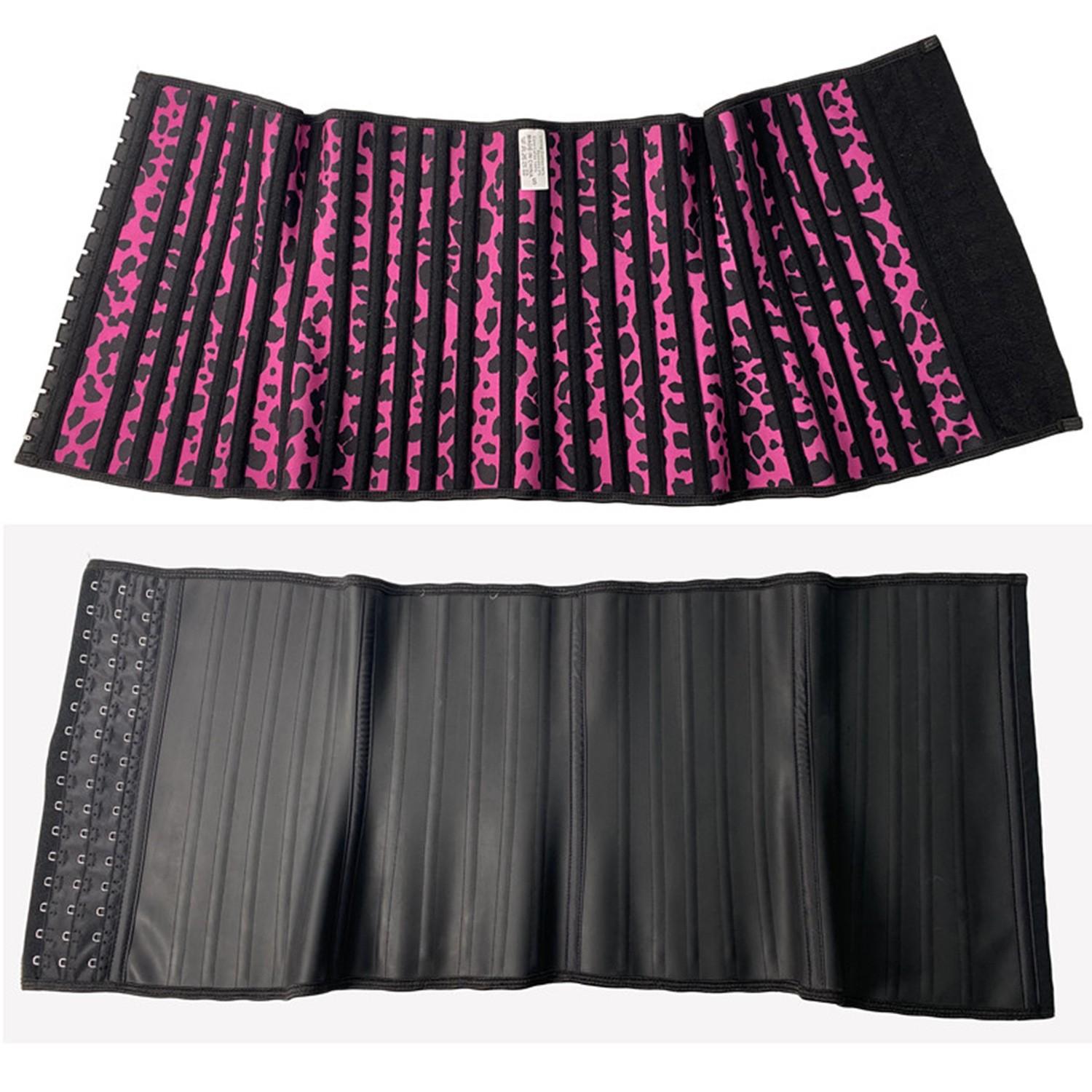 Exclusivamente transfronteriza para 25 fajas moldeadoras de cintura deportivas de látex brillante con base de tela con estampado de leopardo rosa y huesos de acero para mujer. Clip para la cintura que contrae el abdomen.