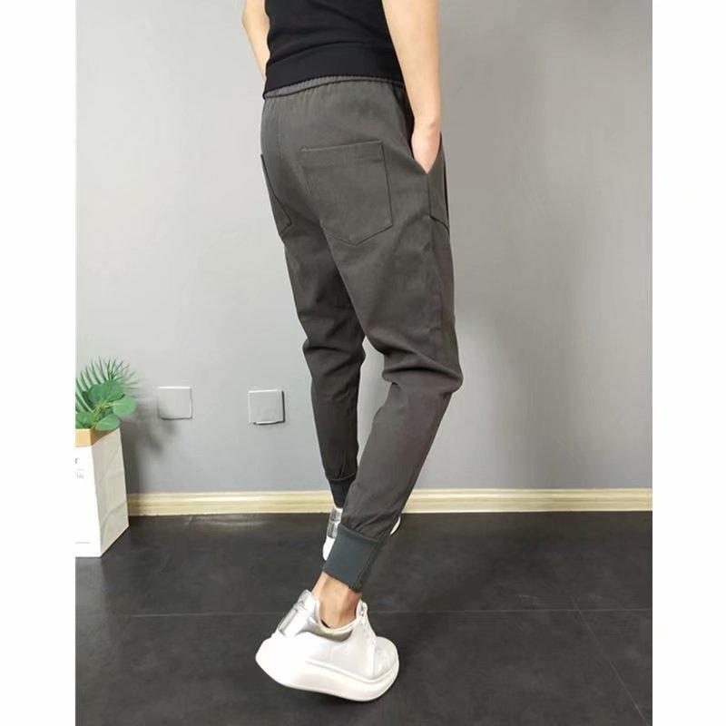 Pantalones casuales de verano de pierna fina hasta los tobillos para hombre, ajustados, estilo coreano, modernos, con lazo en el tobillo.