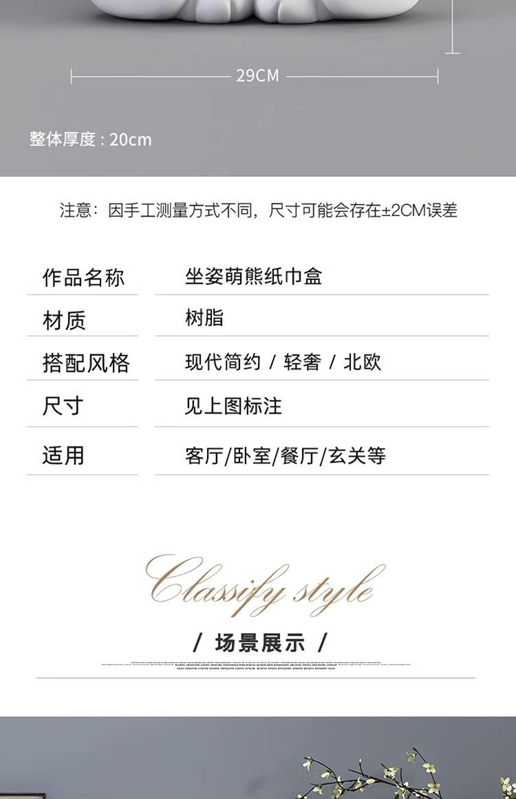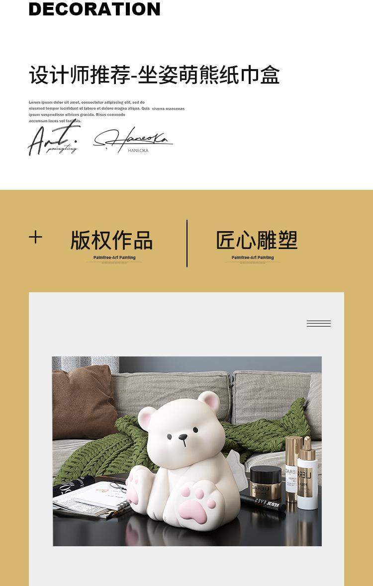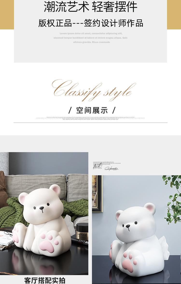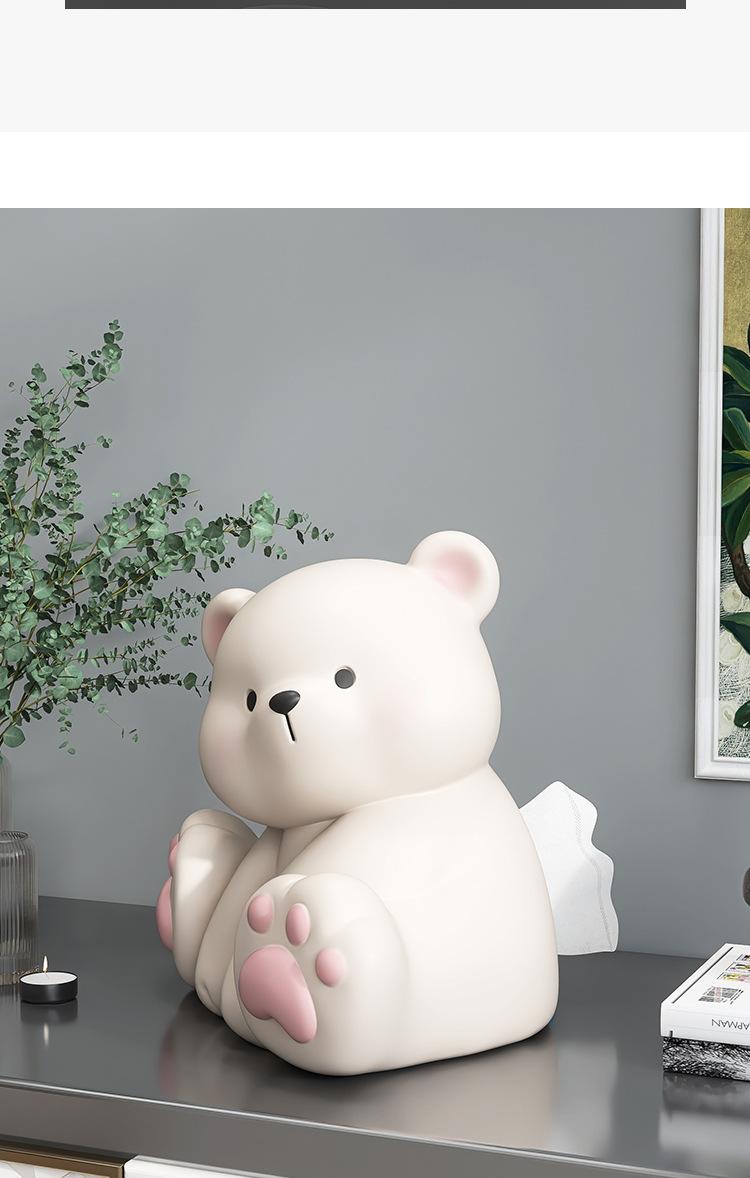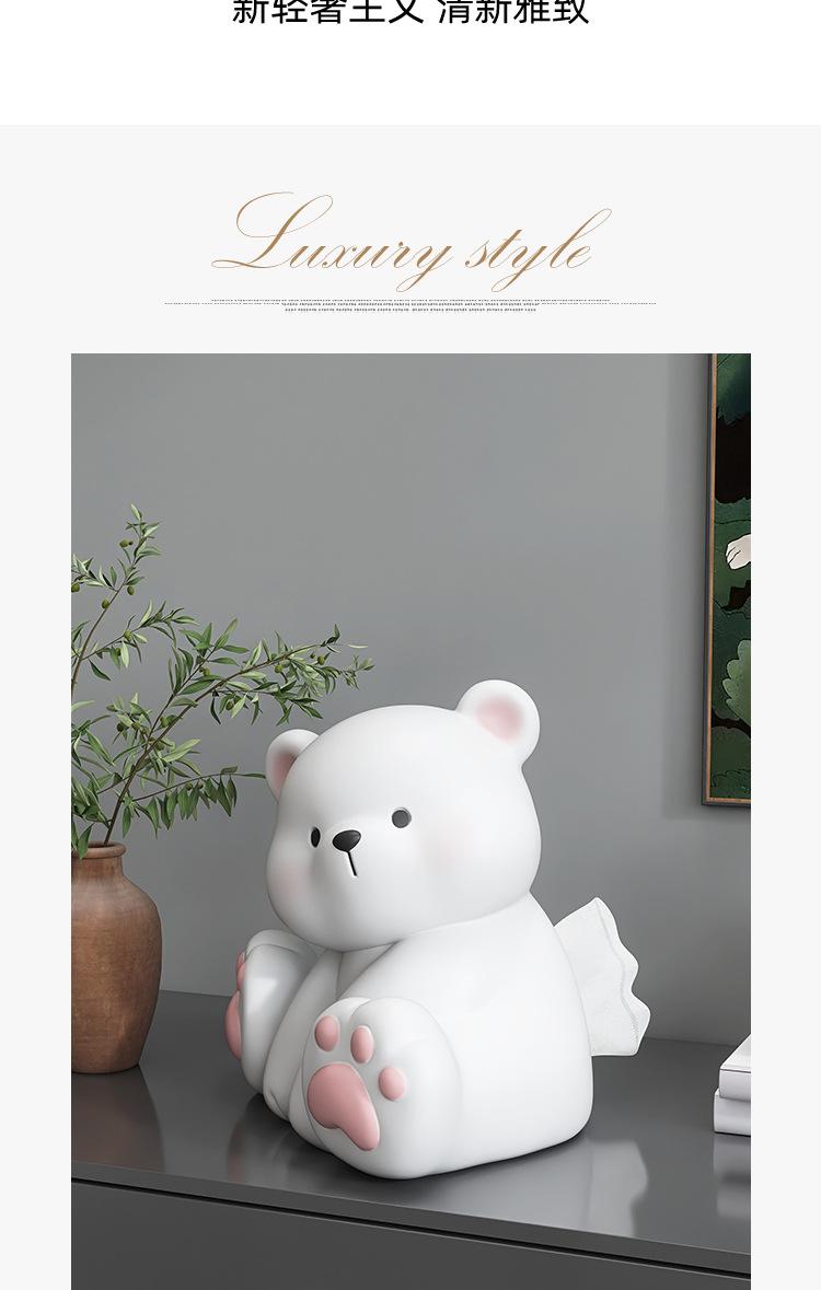 Estilo crema oso creativo práctico caja de almacenamiento de servilletas caja de pañuelos sala de estar de lujo ligero caja de pañuelos para el hogar mesa de té vinoteca