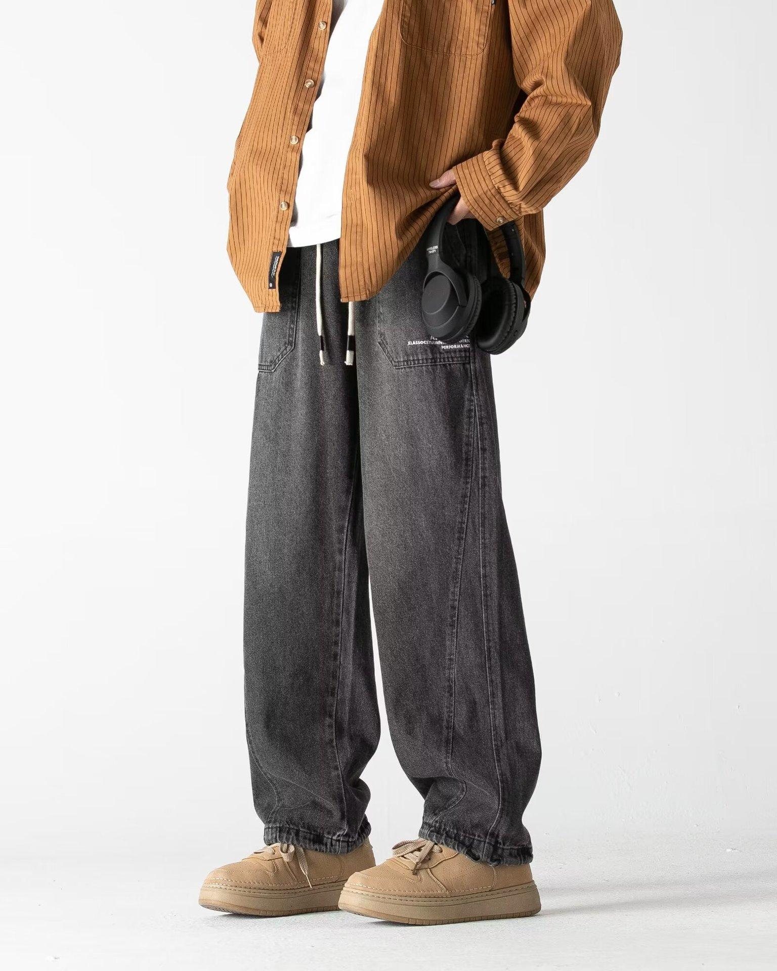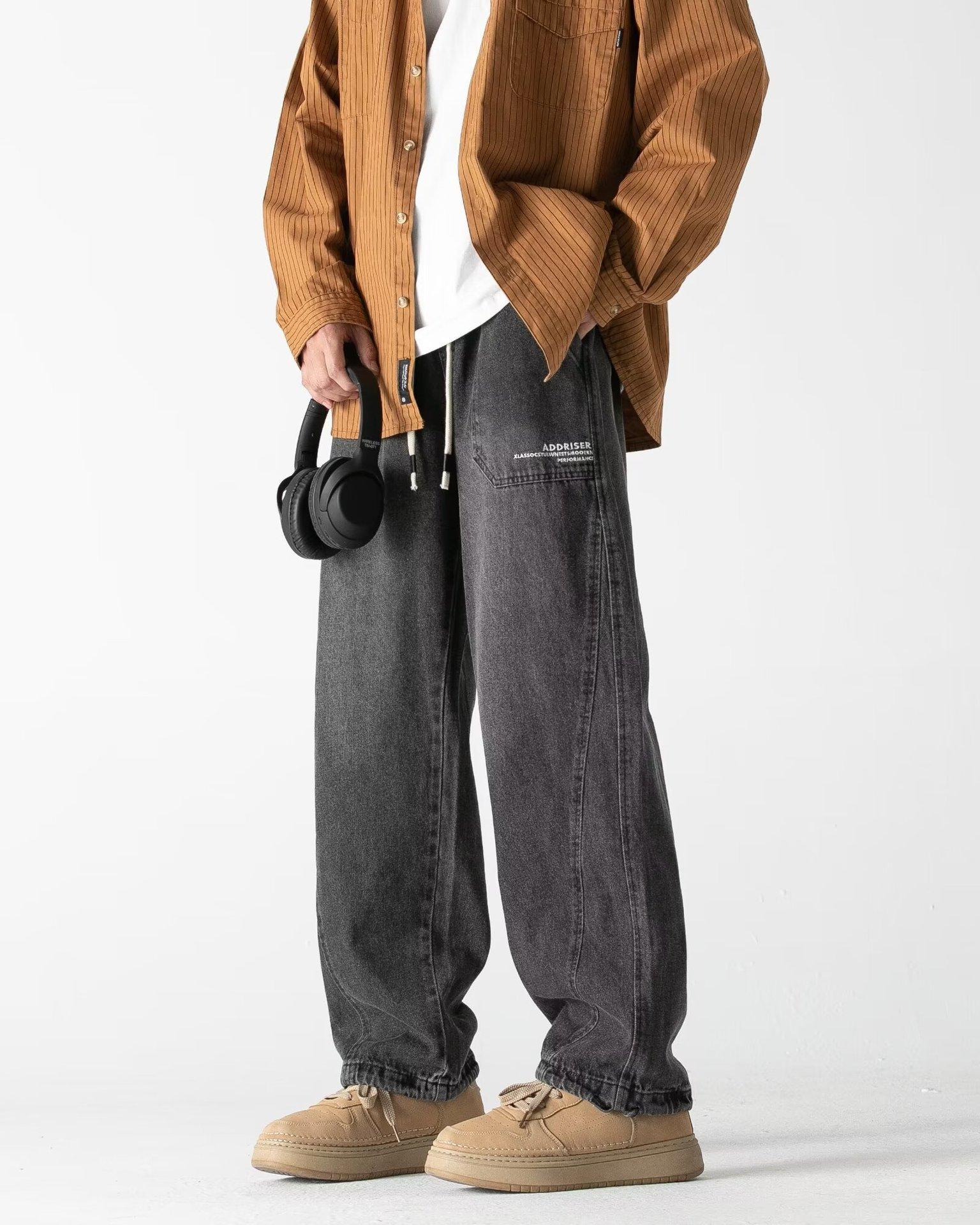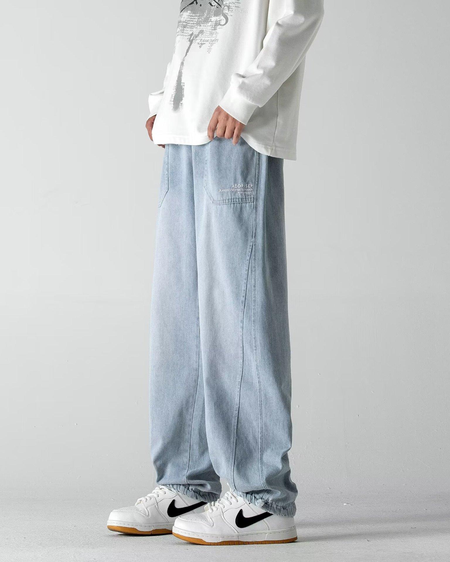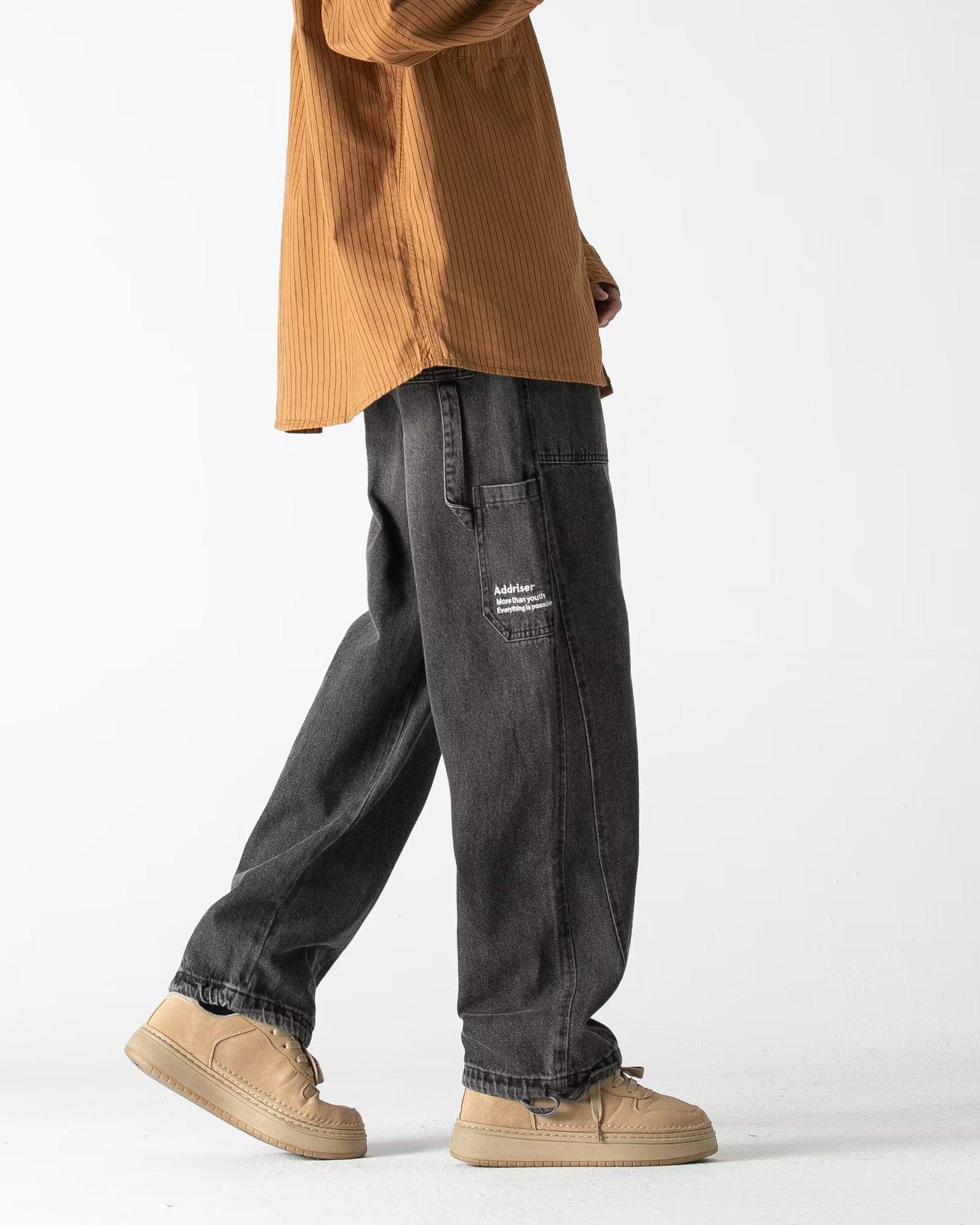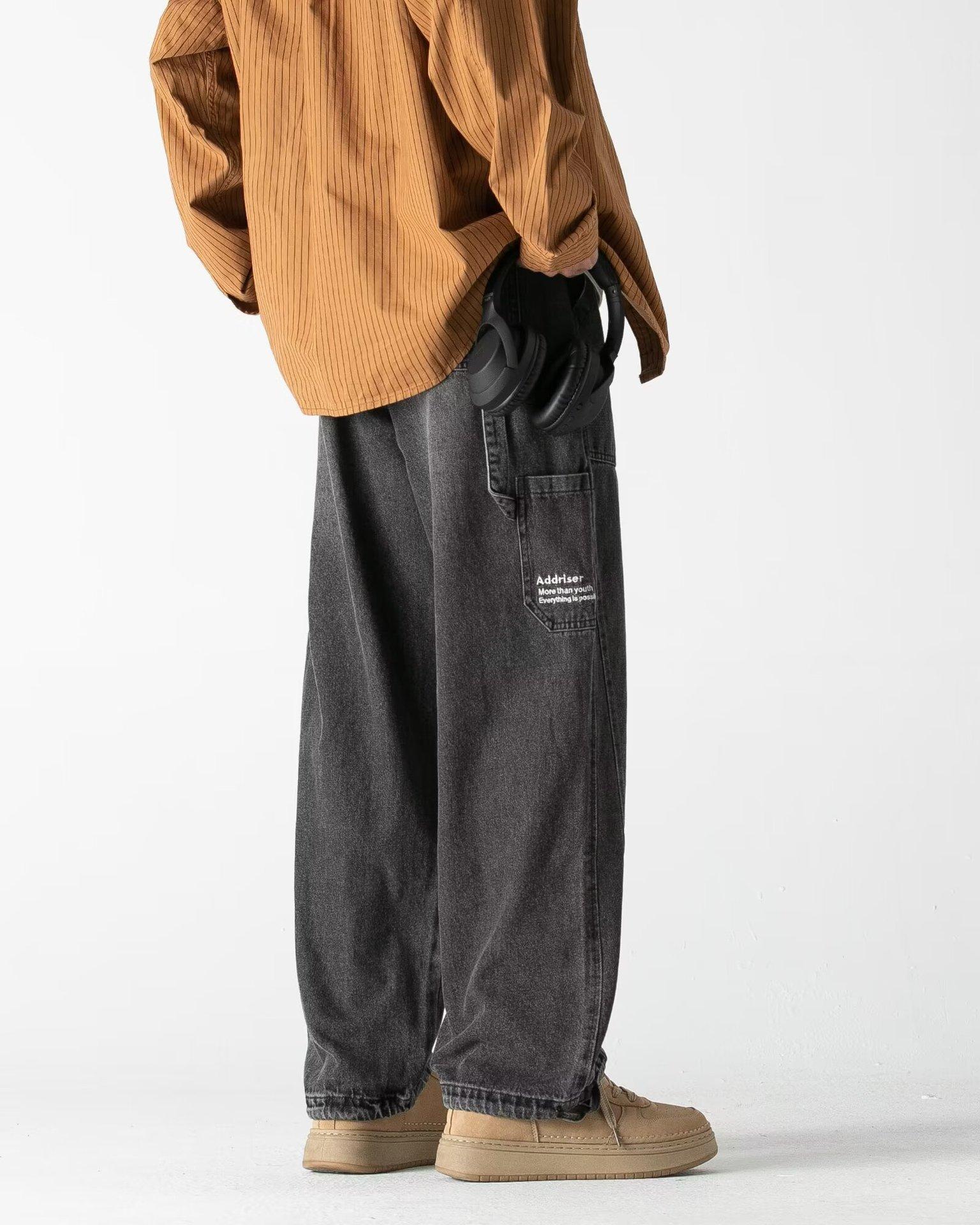 Overol de mezclilla para hombre Americano de alta calle volantes pantalones guapos marca de moda vintage lavado costuras pantalones tobilleros sueltos rectos