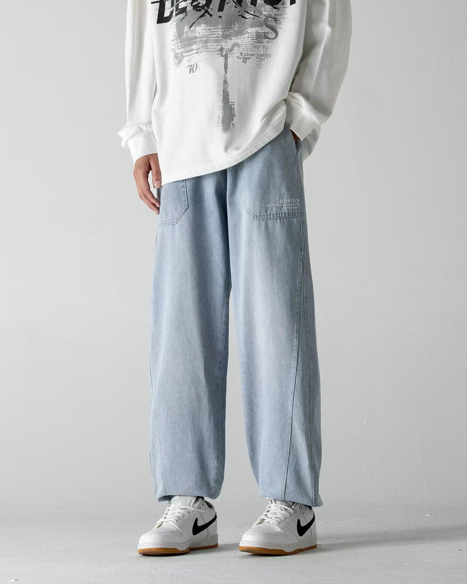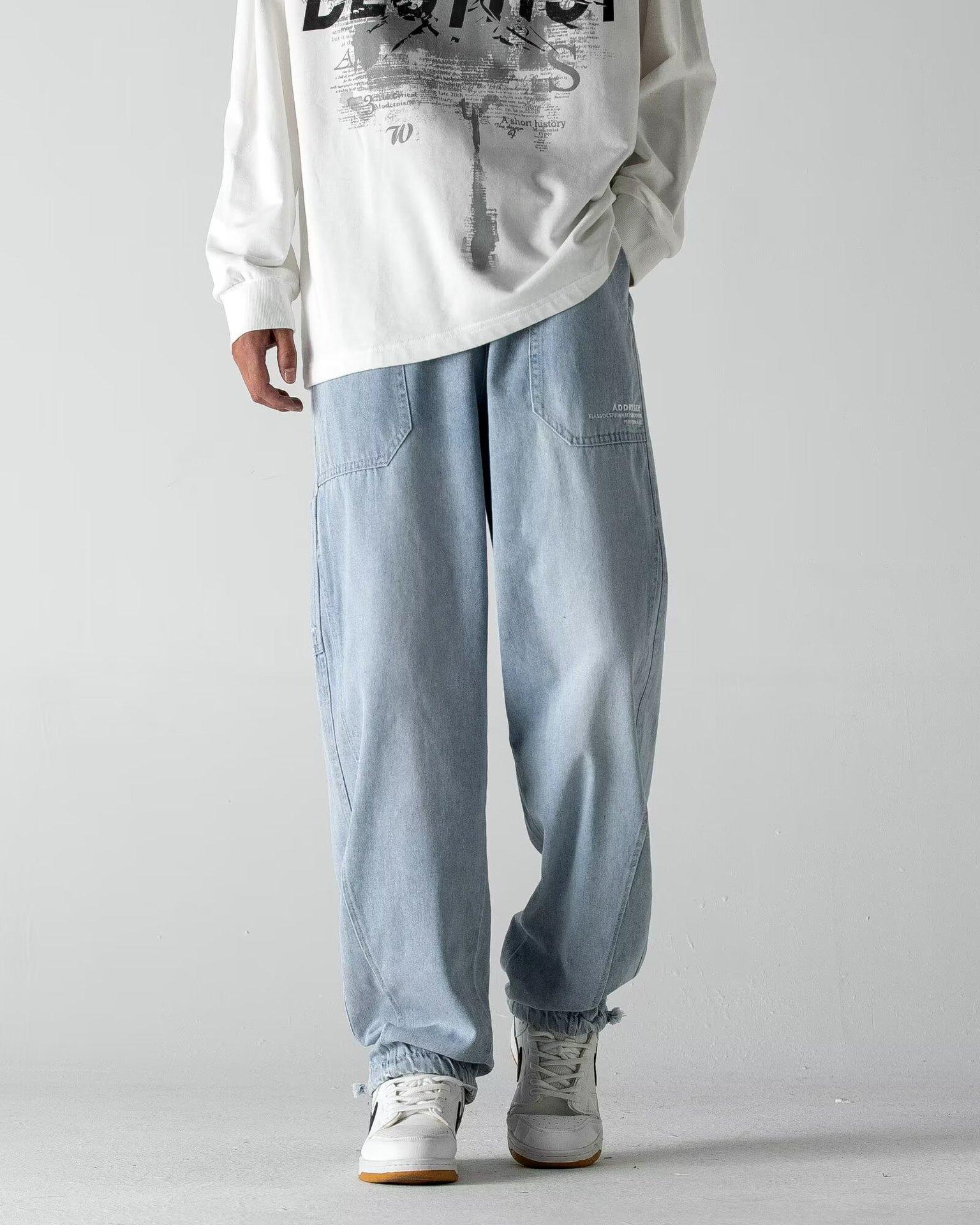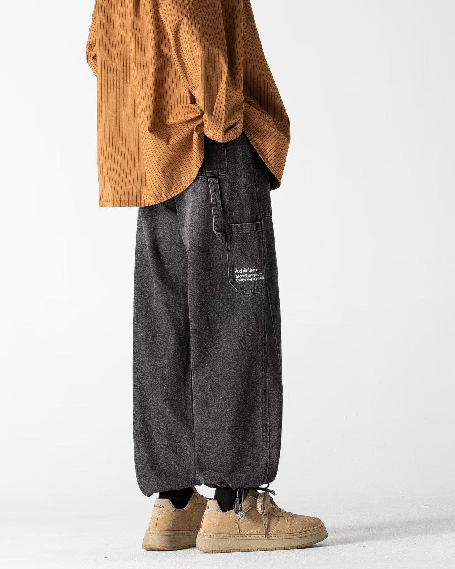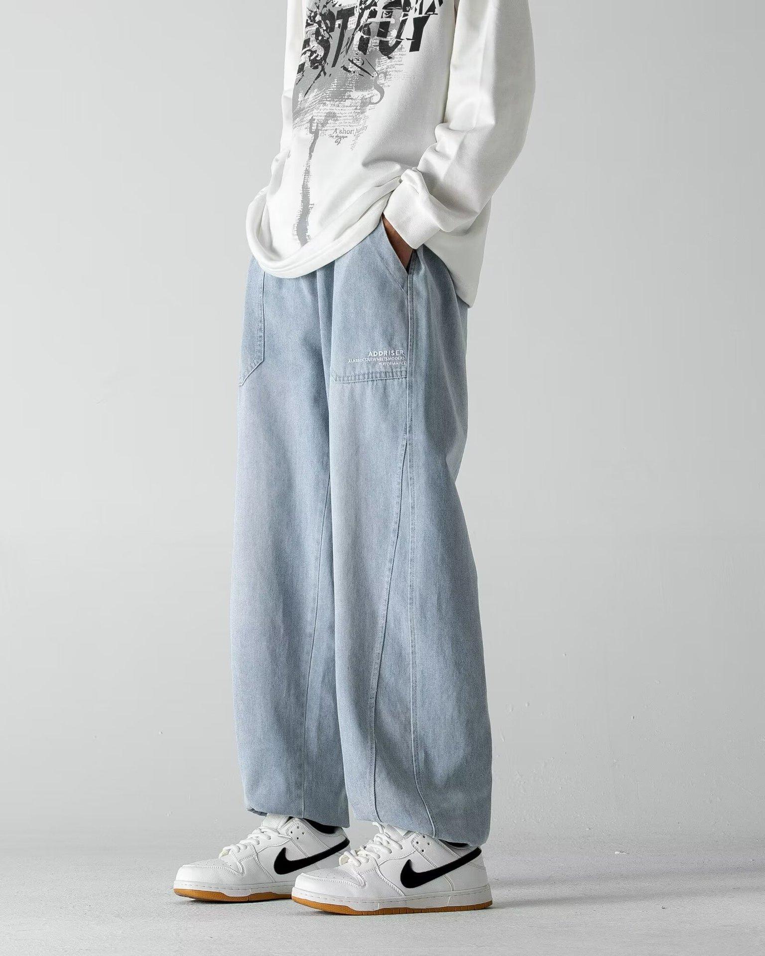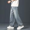 Overol de mezclilla para hombre Americano de alta calle volantes pantalones guapos marca de moda vintage lavado costuras pantalones tobilleros sueltos rectos