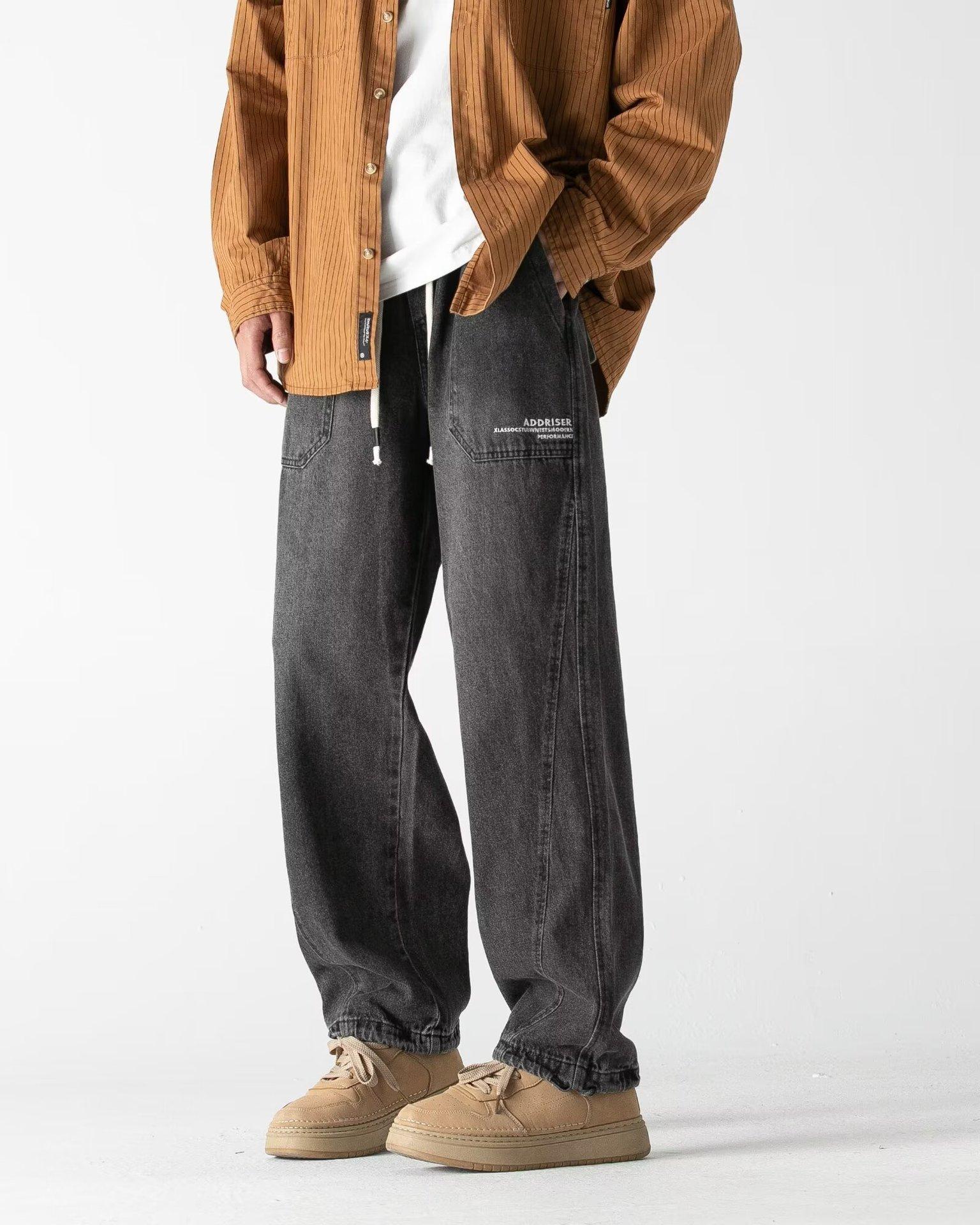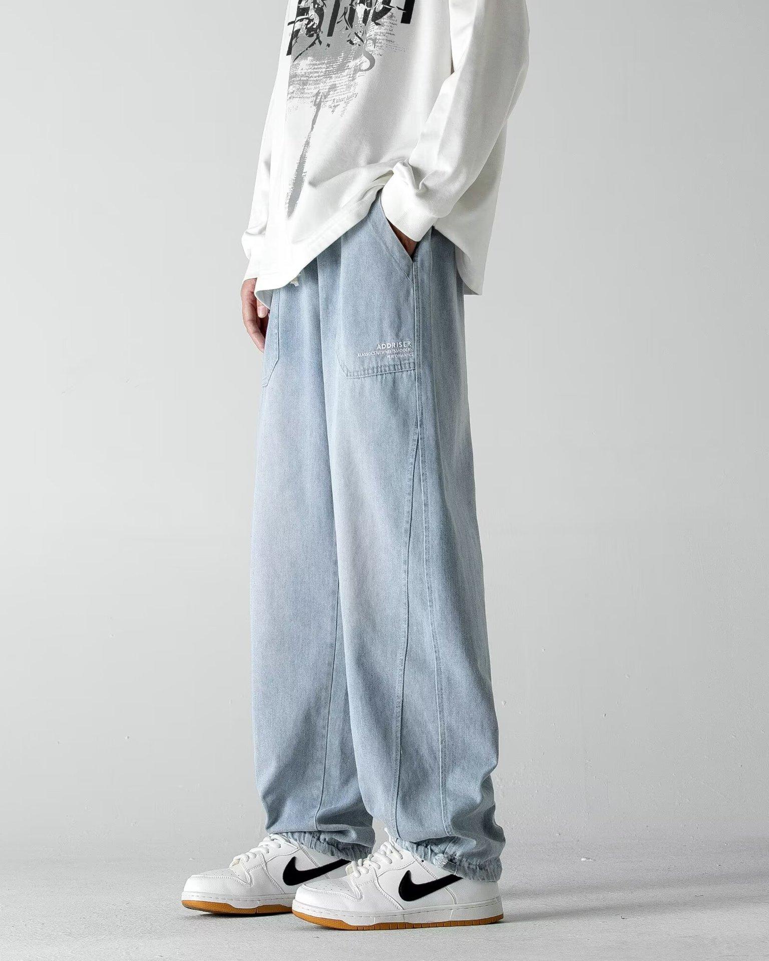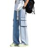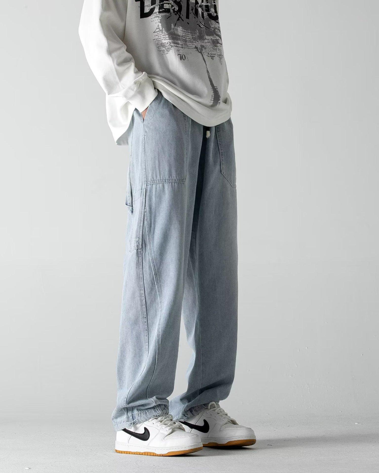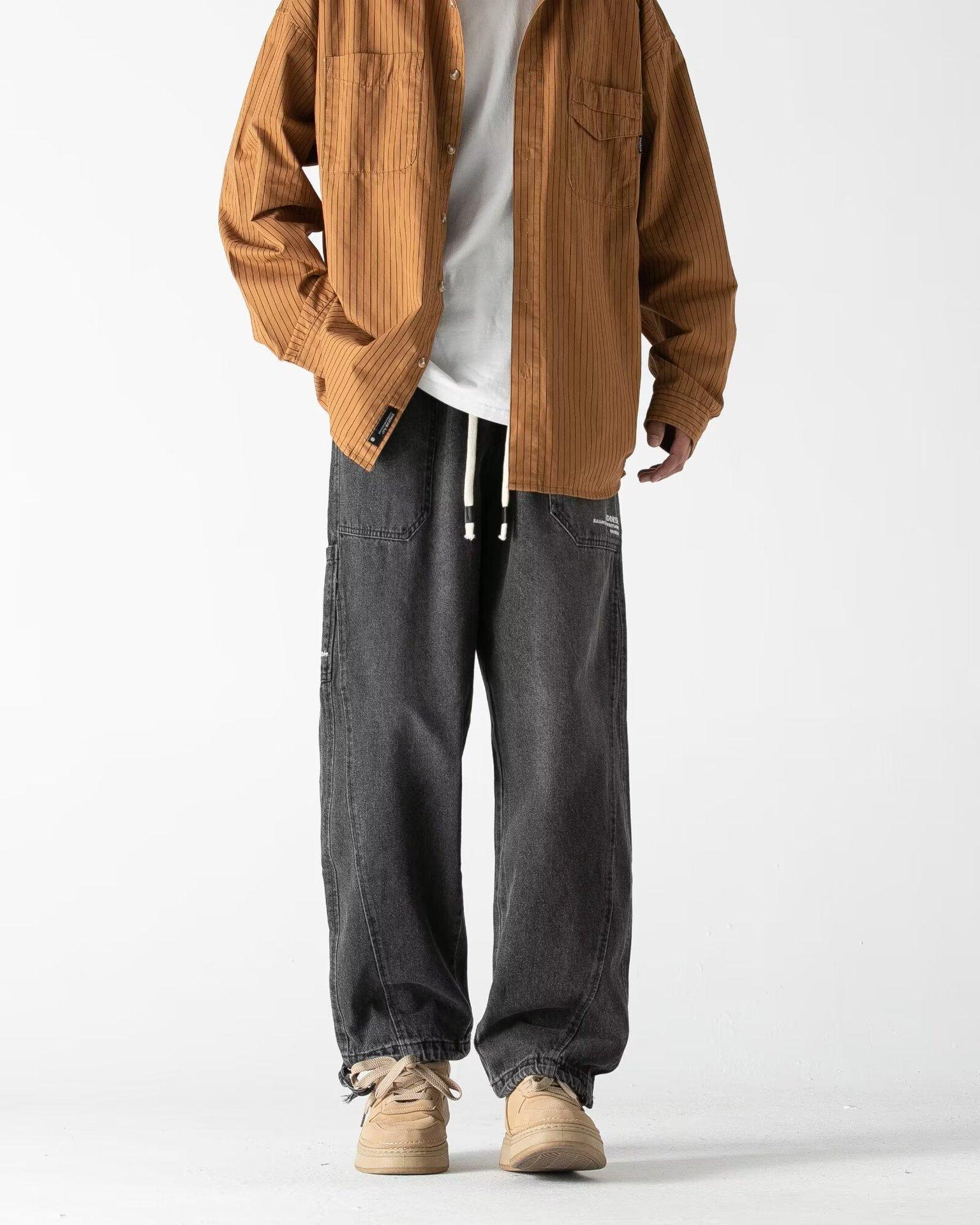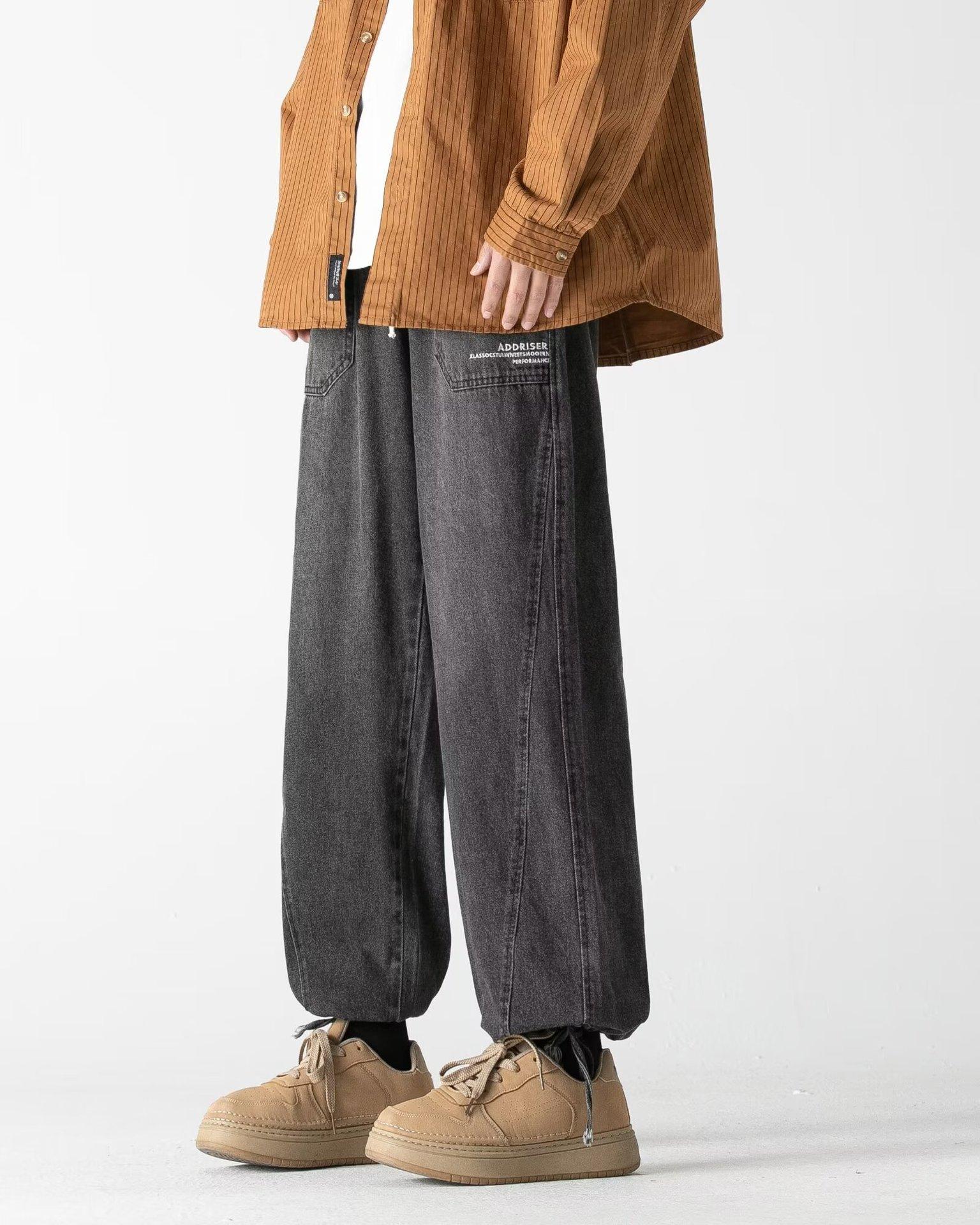 Overol de mezclilla para hombre Americano de alta calle volantes pantalones guapos marca de moda vintage lavado costuras pantalones tobilleros sueltos rectos