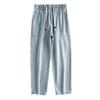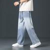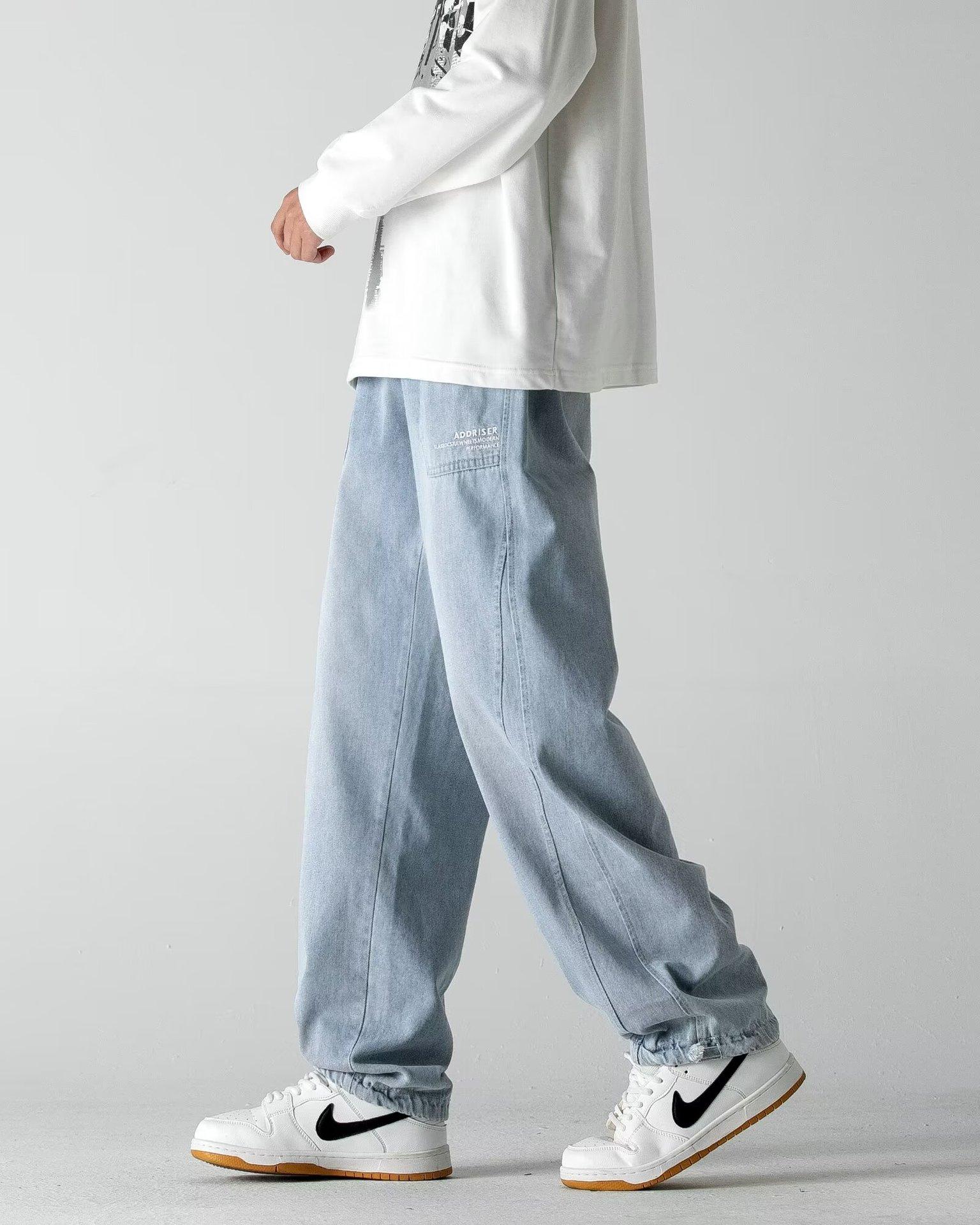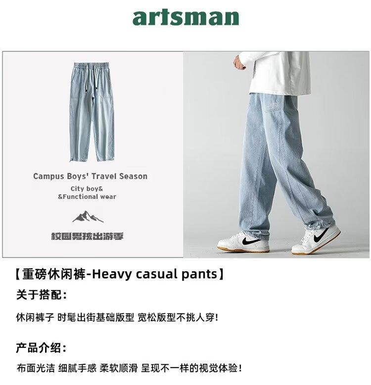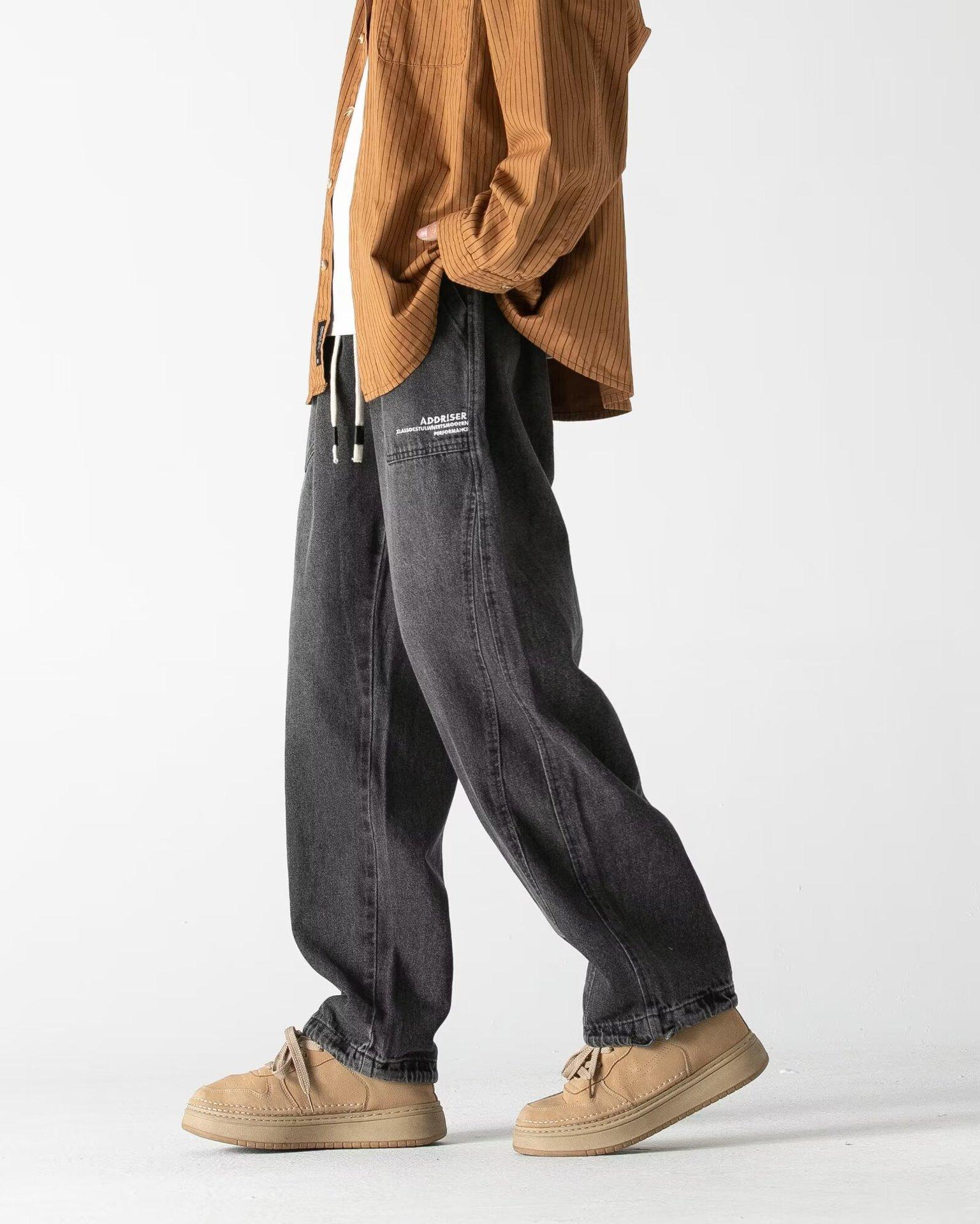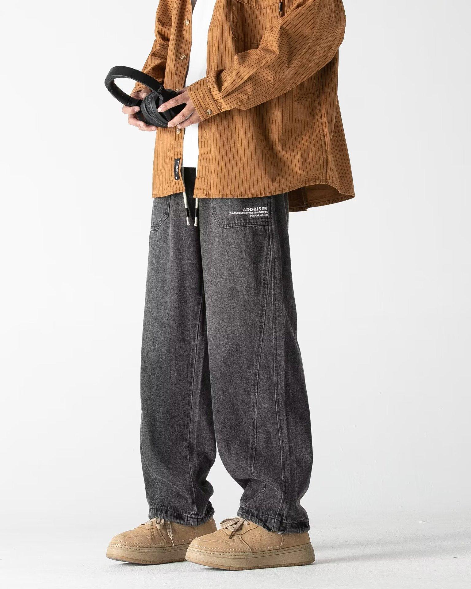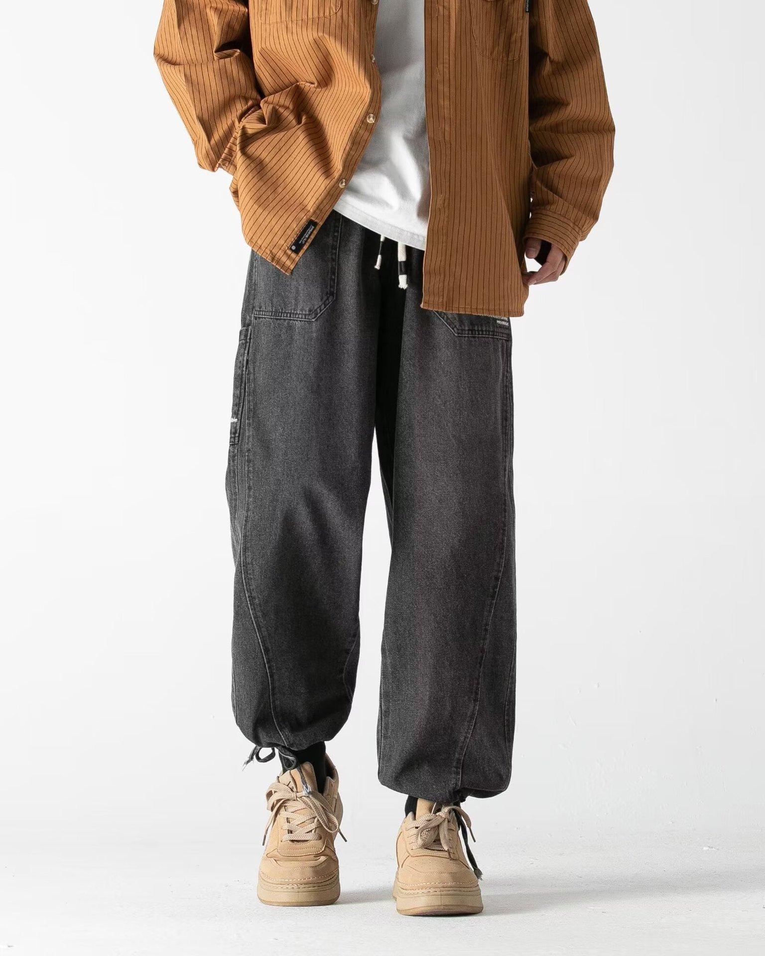 Overol de mezclilla para hombre Americano de alta calle volantes pantalones guapos marca de moda vintage lavado costuras pantalones tobilleros sueltos rectos