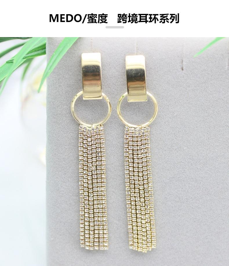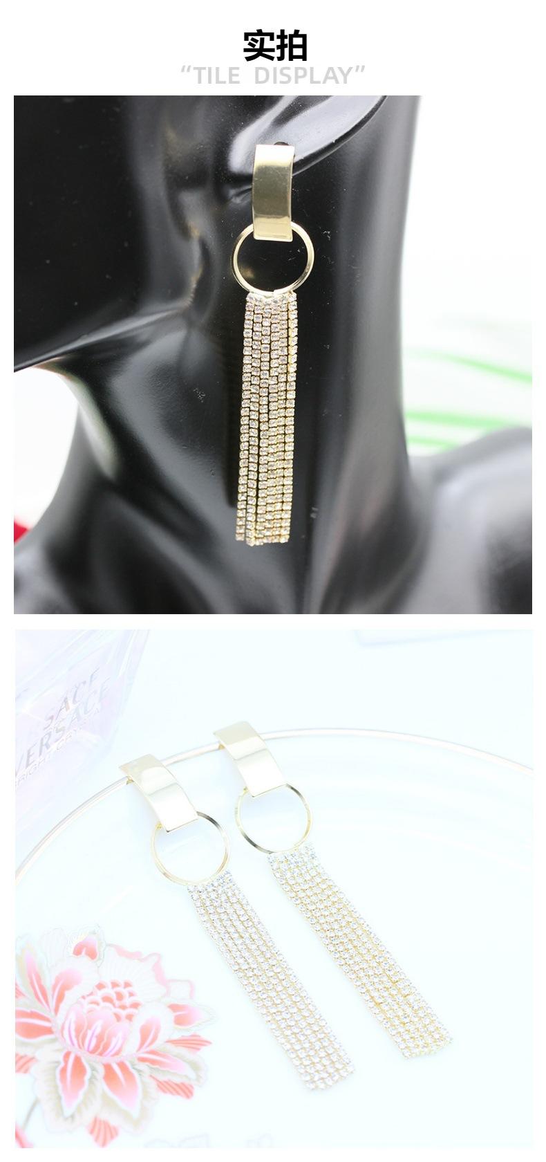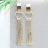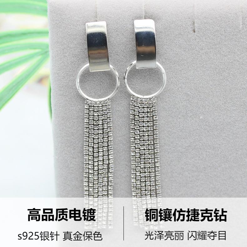 Pendientes de plata s925 con diseño exagerado europeo y americano, con forma de cara redonda, adelgazantes, largos, con diamantes y borlas geométricas circulares.