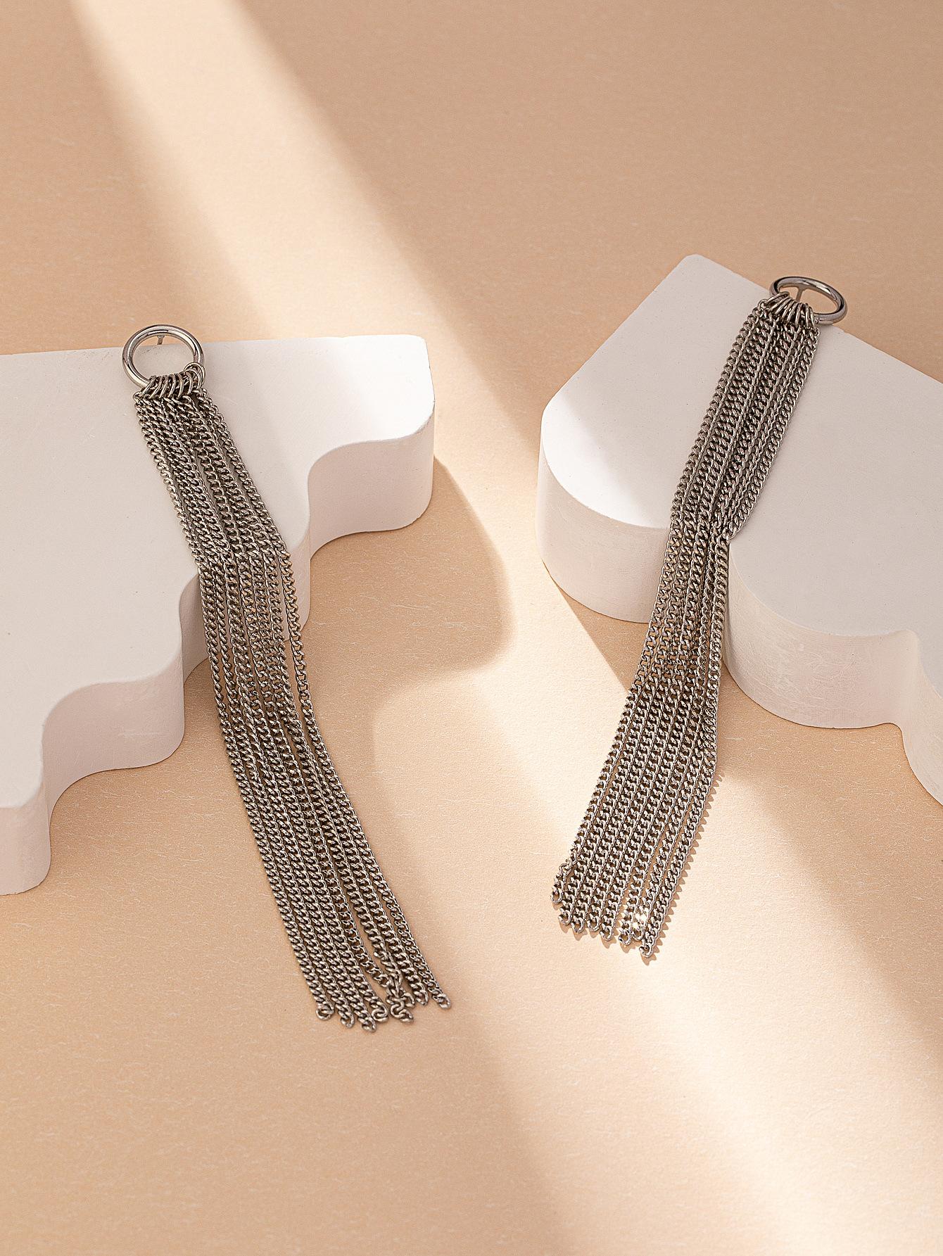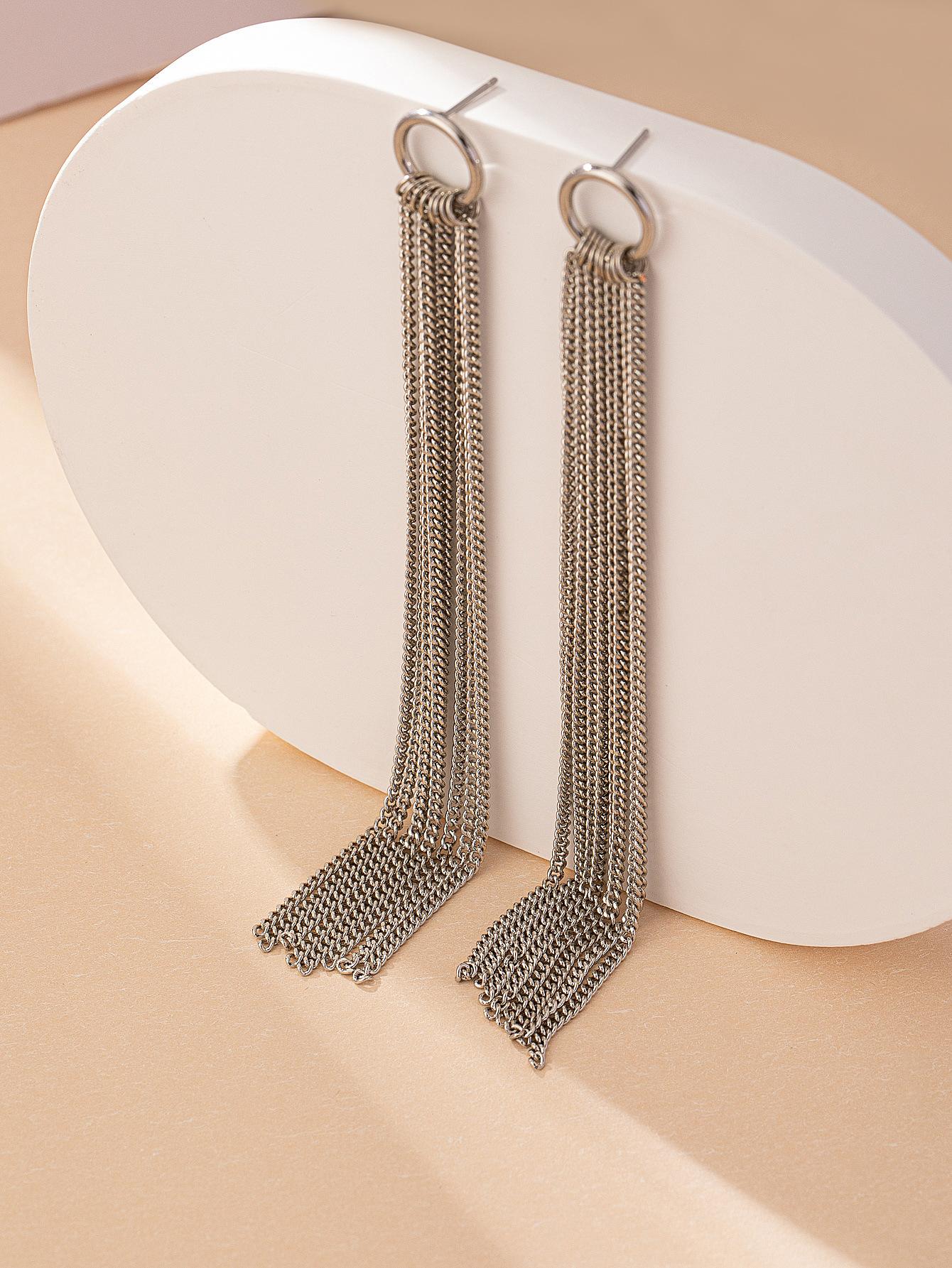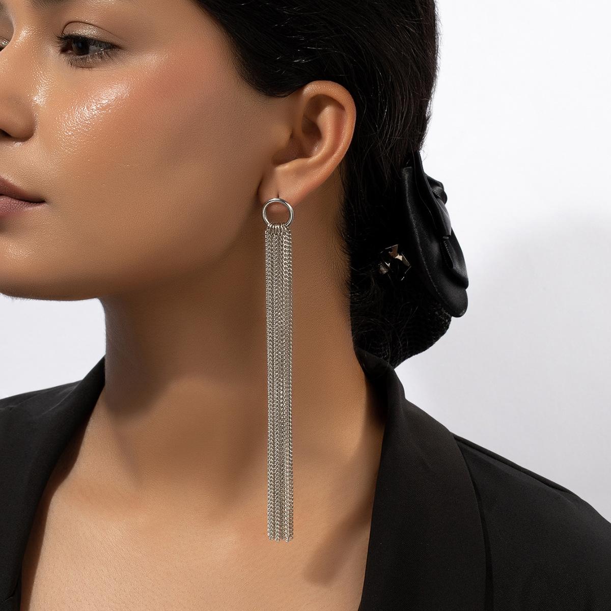 Pendientes de borla de cadena larga multicapa de metal con diseño transfronterizo europeo y americano, pendientes redondos con forma de botón