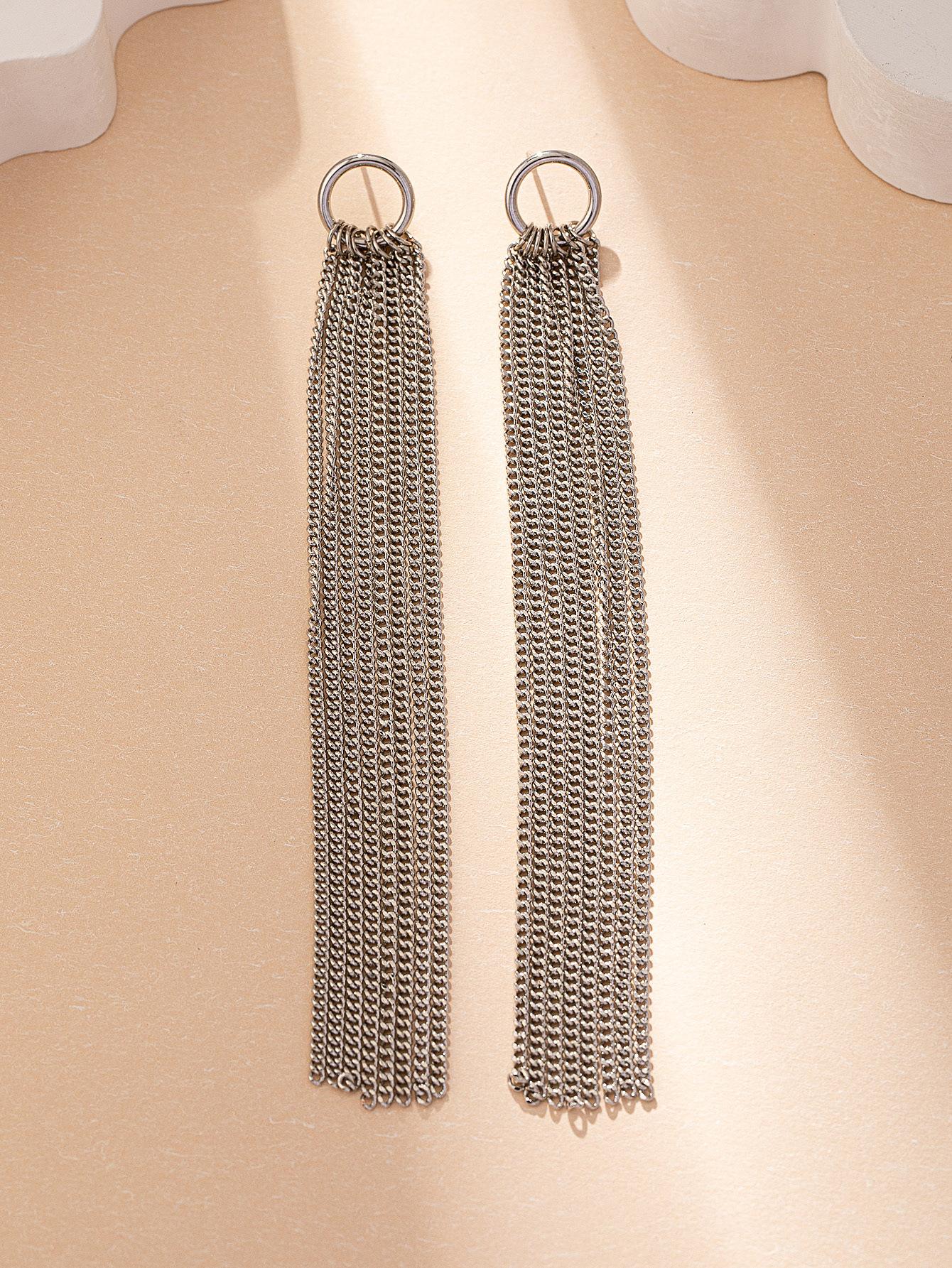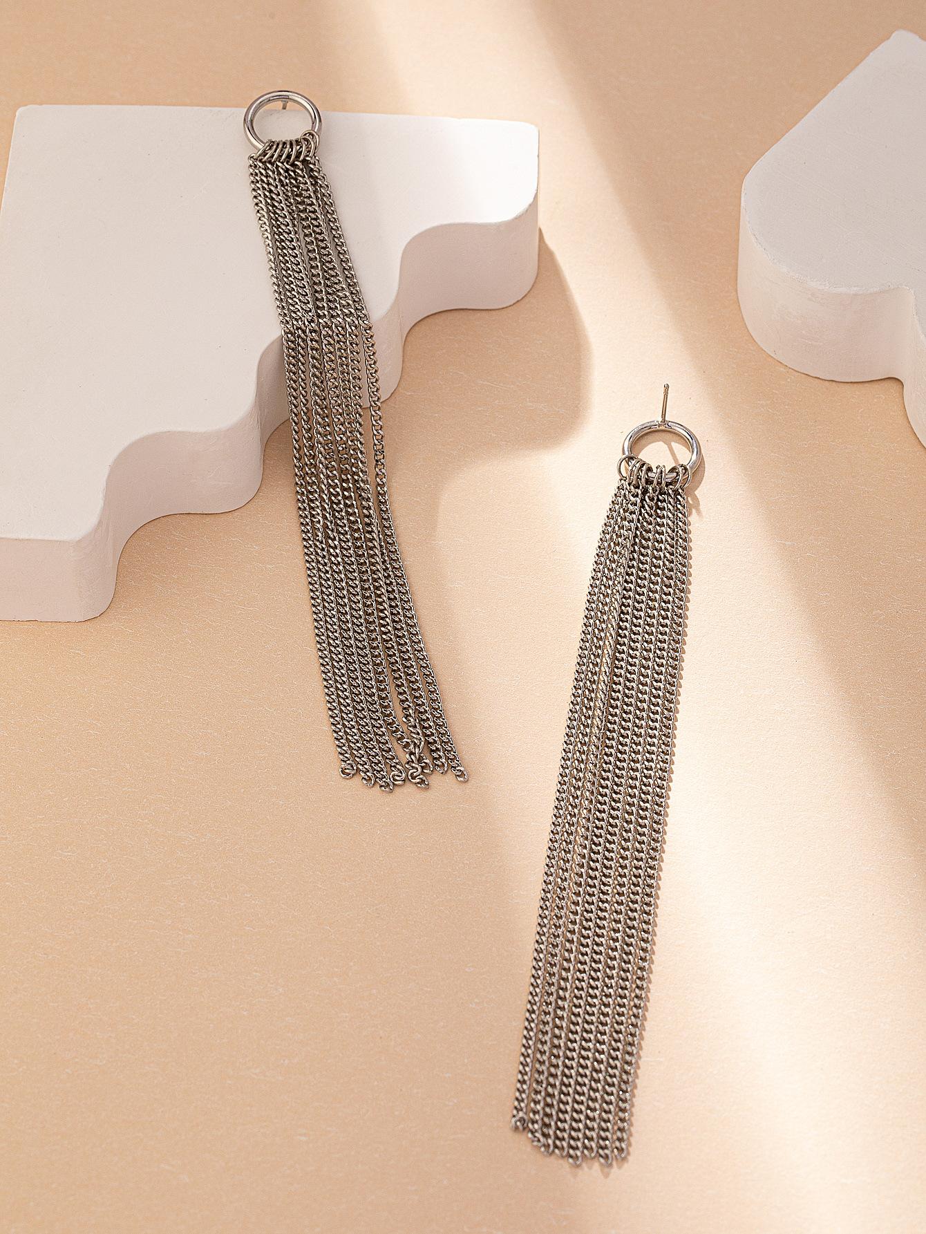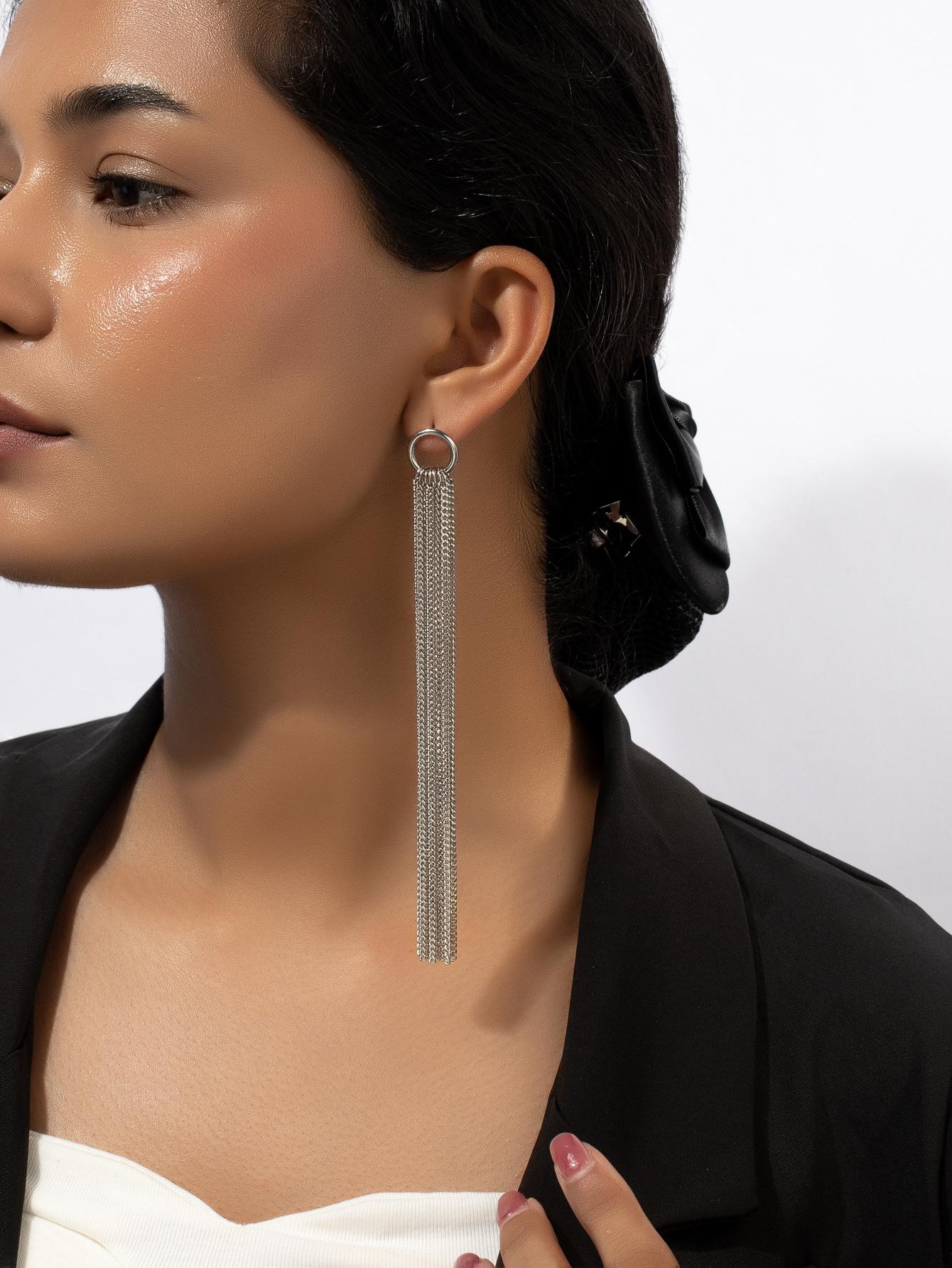 Pendientes de borla de cadena larga multicapa de metal con diseño transfronterizo europeo y americano, pendientes redondos con forma de botón