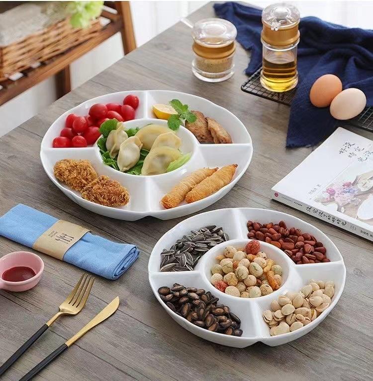 Vajilla de Mesa de Hotel de Cerámica Plato de Fruta de Cinco Compartimentos Plato de Cinco Compartimentos Plato Dividido para Aperitivos Doméstico Plato para Frutos Secos Regalo de Empresa