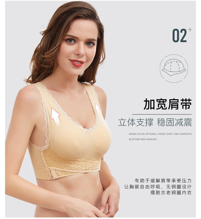 Sujetador Deportivo Transfronterizo Europeo y Americano Push-up de Encaje con Hebilla Lateral Cruzada Delantera para Yoga, Correr, a Prueba de Golpes, Ropa Interior Deportiva para Mujer