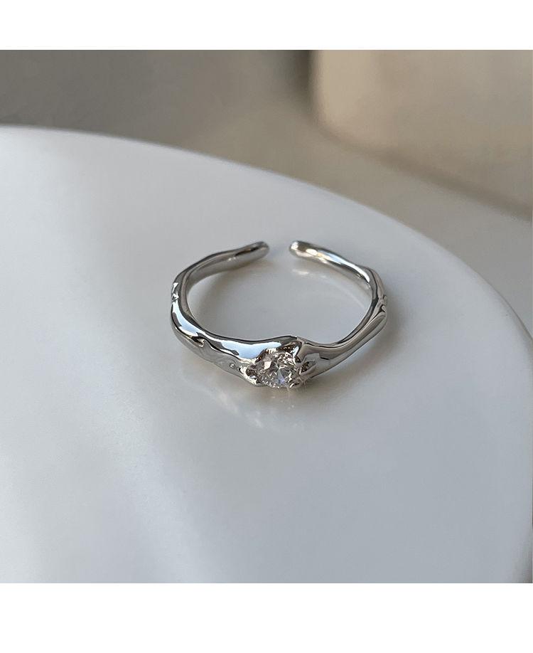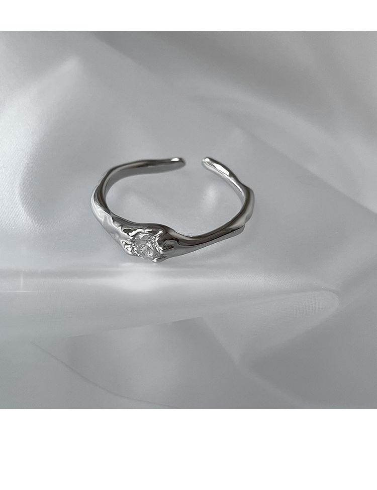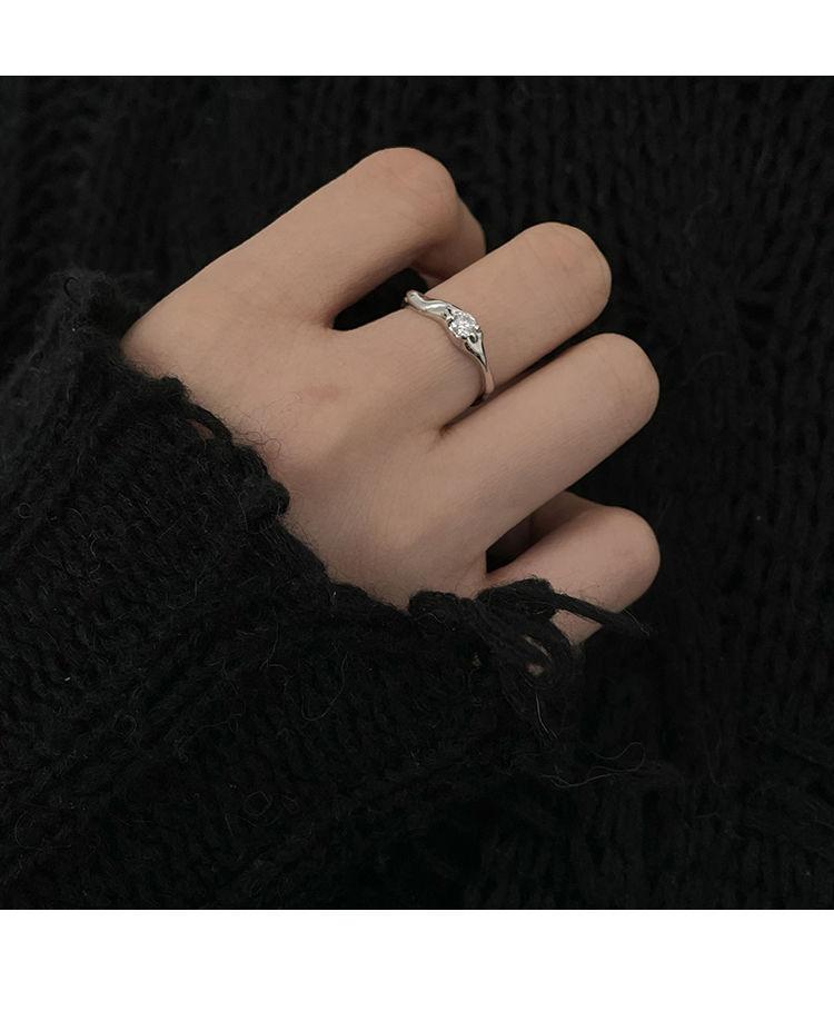 Anillo de Circonio Blanco con Abertura Irregular con Forma de Nicho ins Anillo de Diamantes de Abertura Ajustable Suave para Mujer Estilo Simple que Combina con Todo