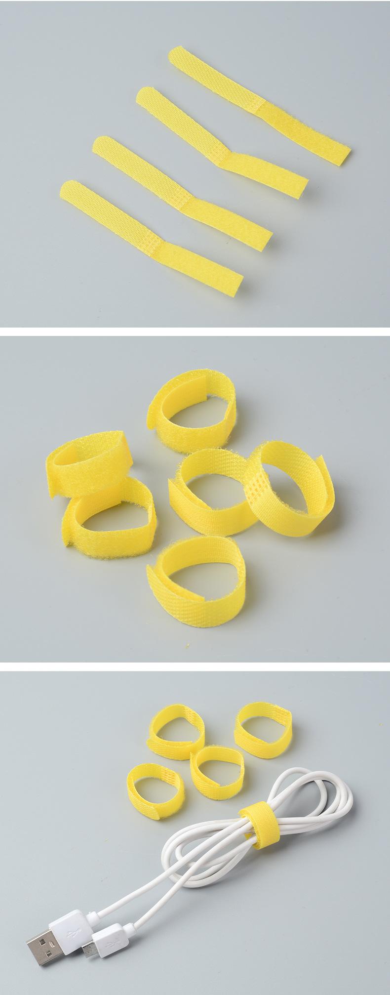 Brida de velcro amarilla en stock Brida de color para cables de datos sencilla con velcro